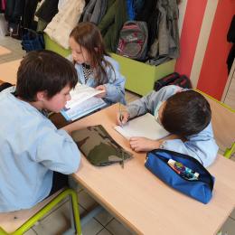 Lorsque chaque groupe a lu son résumé nous avons fait un résumé collectif que les élèves ont copié sur leur cahier d'écrivain.