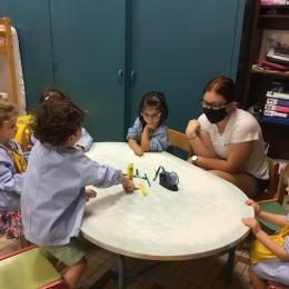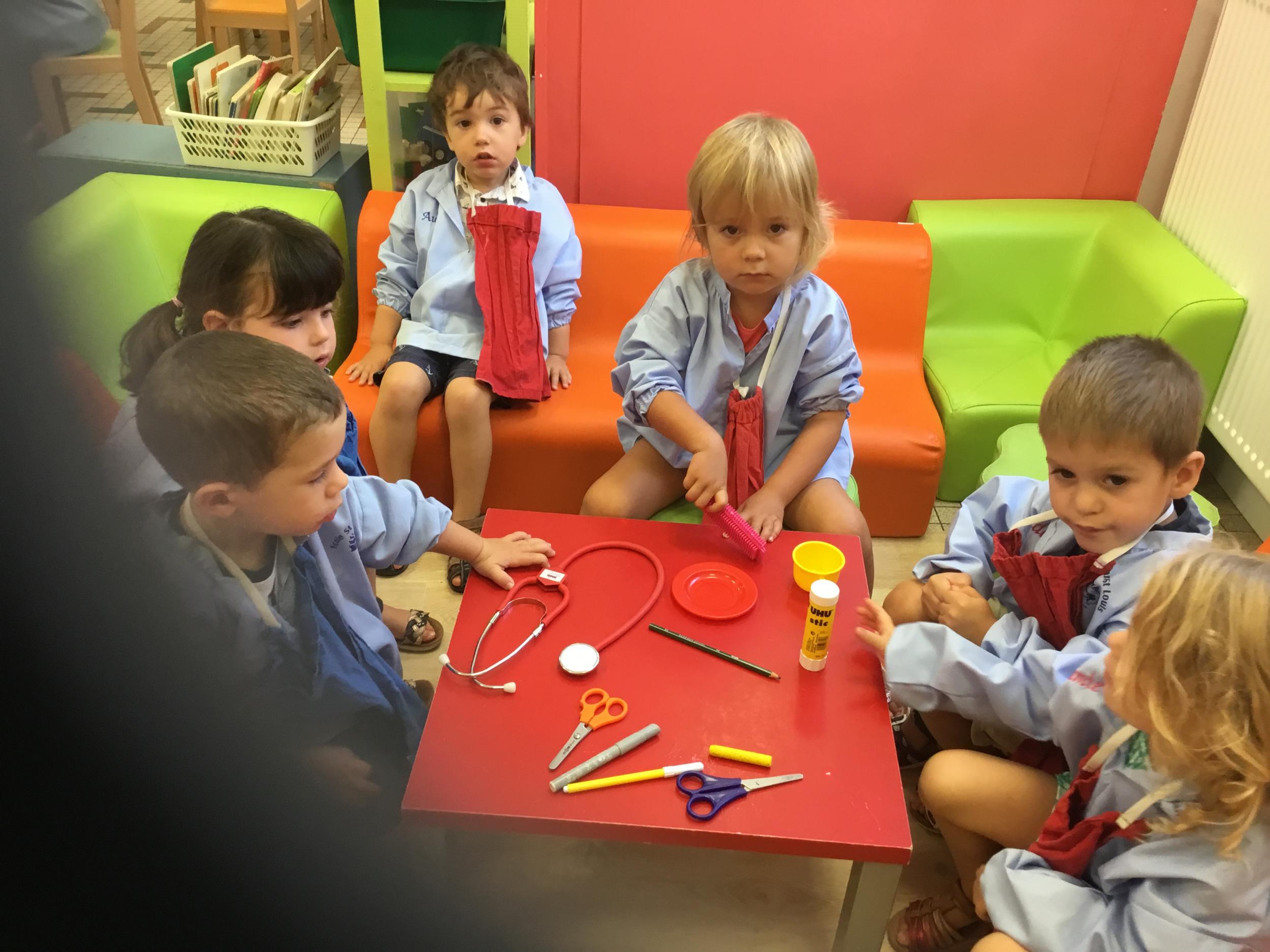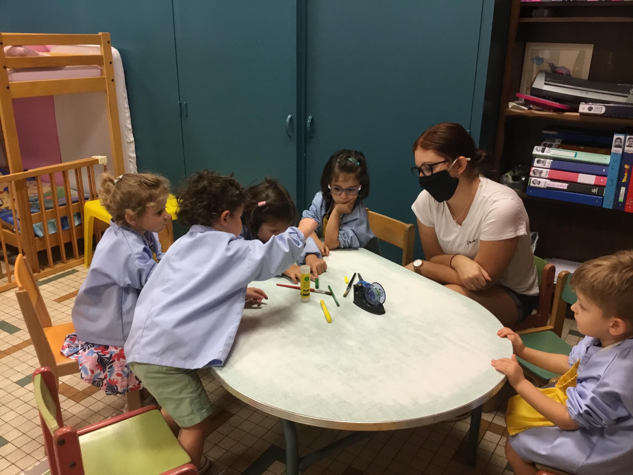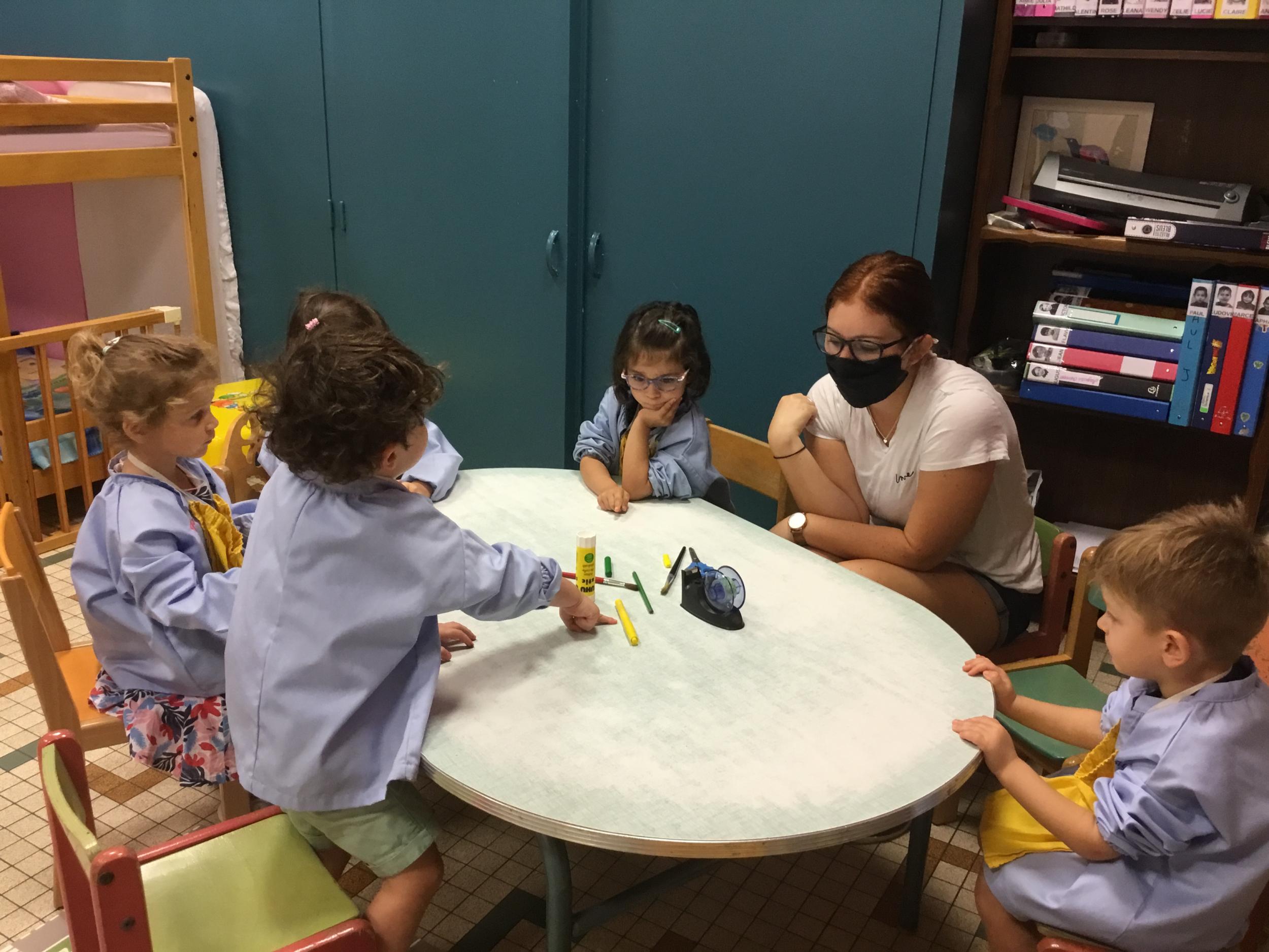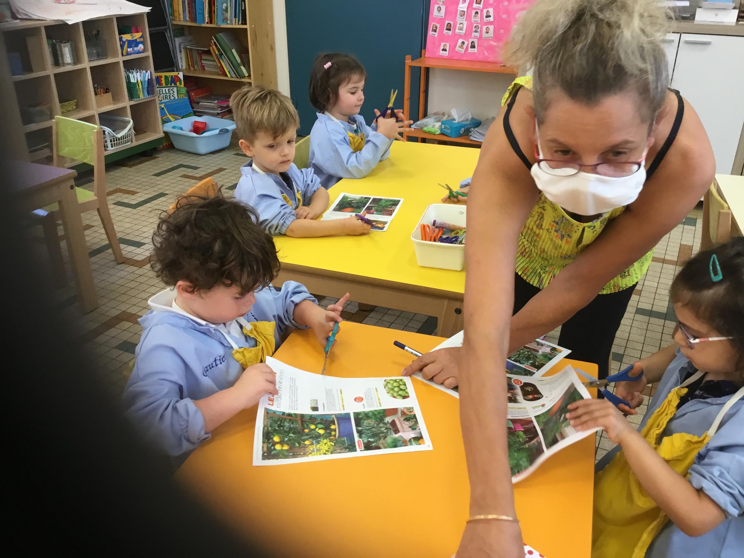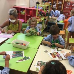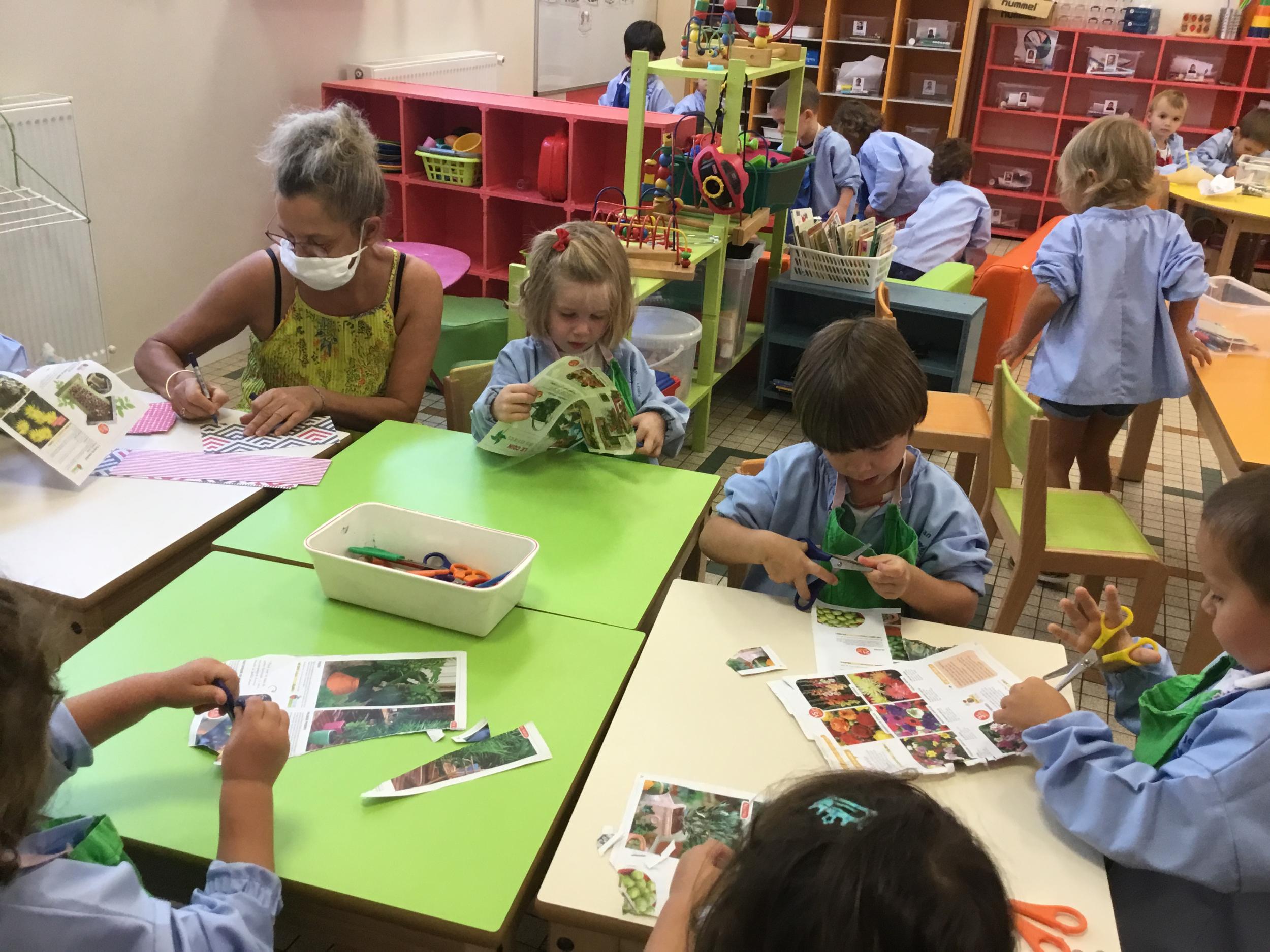 18/09/2020 Nous avons travaillé à nommer les outils de la classe en français et en anglais. Nous avons appris à coller et découper.