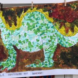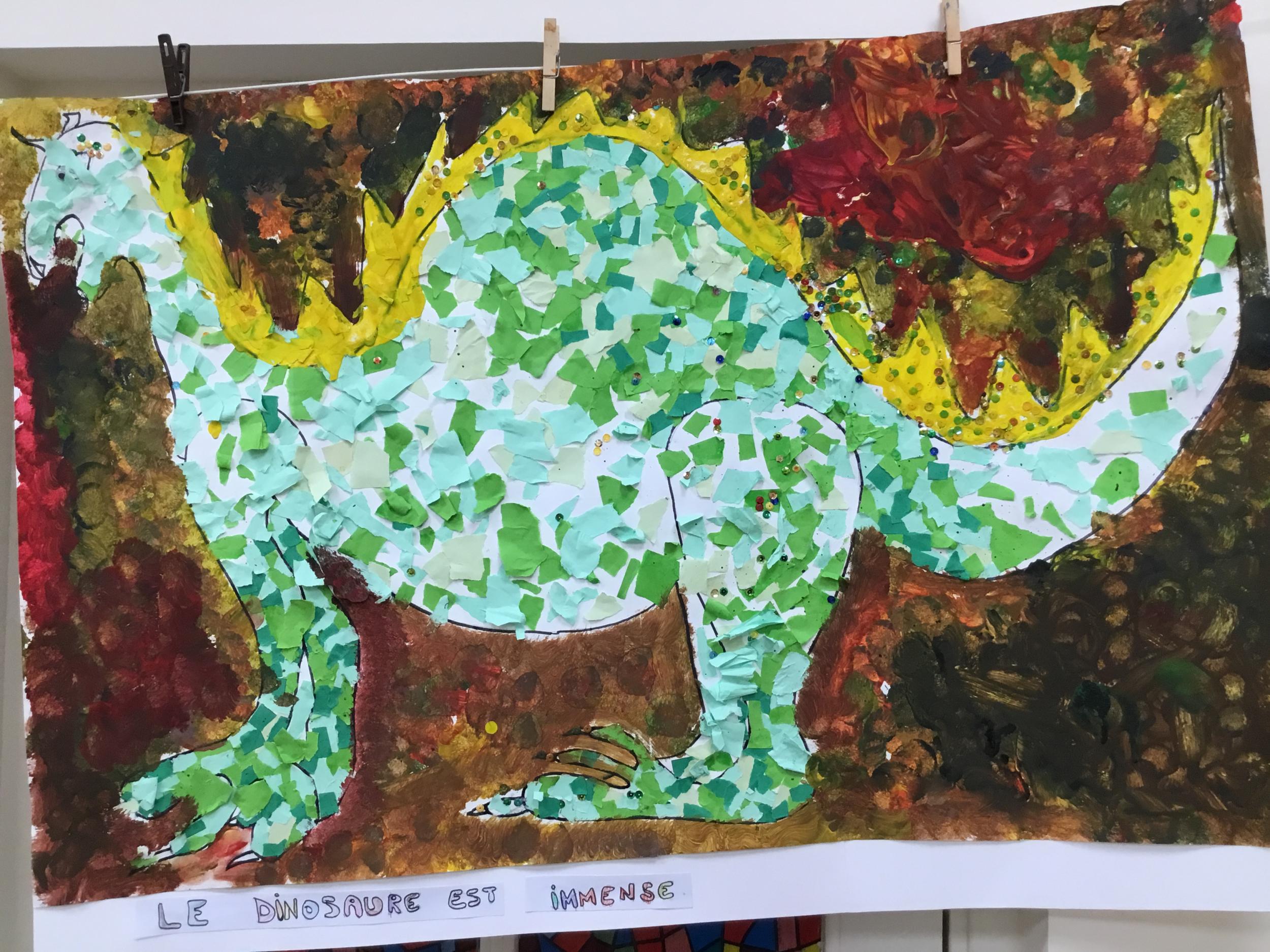 Les élèves de moyenne section ont imaginé une histoire collective à partir de morceaux de musique choisis par le maître. Ils ont ensuite illustré les pages du livre en utilisant différentes techniques artistiques : collage, pointillisme, peinture, encres, utilisation des rouleaux, pochons, , drawin gum... Ce livre est un moyen pour s’approprier la littérature de jeunesse et le fait de se mettre dans la peau d’un auteur / illustrateur est un bon moyen pour appréhender l’écrit. Ils ont appris aussi du vocabulaire , ils ont découvert que ce qui est dit s’écrit sous forme de mots ->phrases ->texte. Ils ont découvert ce qu’est un titre , une couverture d’album et savent repérer le nom d’un auteur sur une couverture de livre. Ils ont appris à structurer les pages du livre dans l’ordre chronologique ( repérage dans le temps).