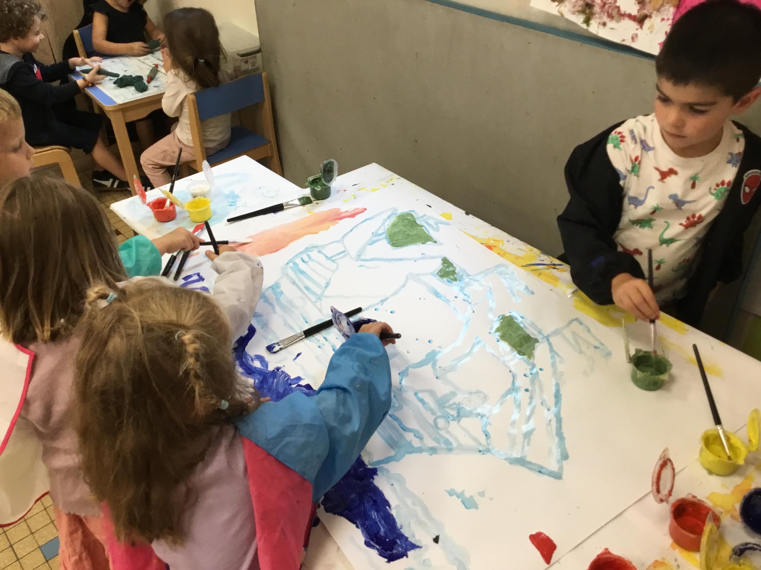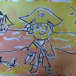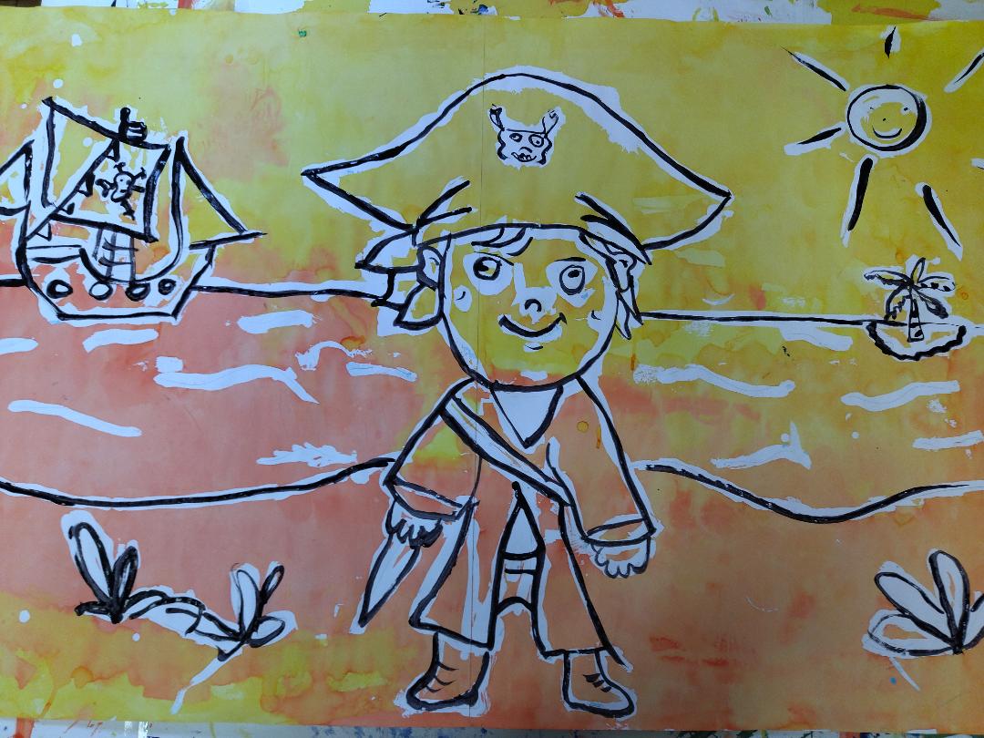 04/10/2024 Les élèves ont imaginé en écoutant des musiques de films , une histoire de pirate: les aventures de Cocomoha! Ils ont alors commencé les illustrations sur de très grands formats et ont utilisé la technique du Drawin gum