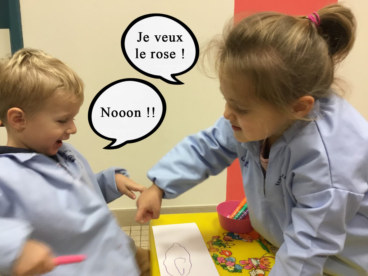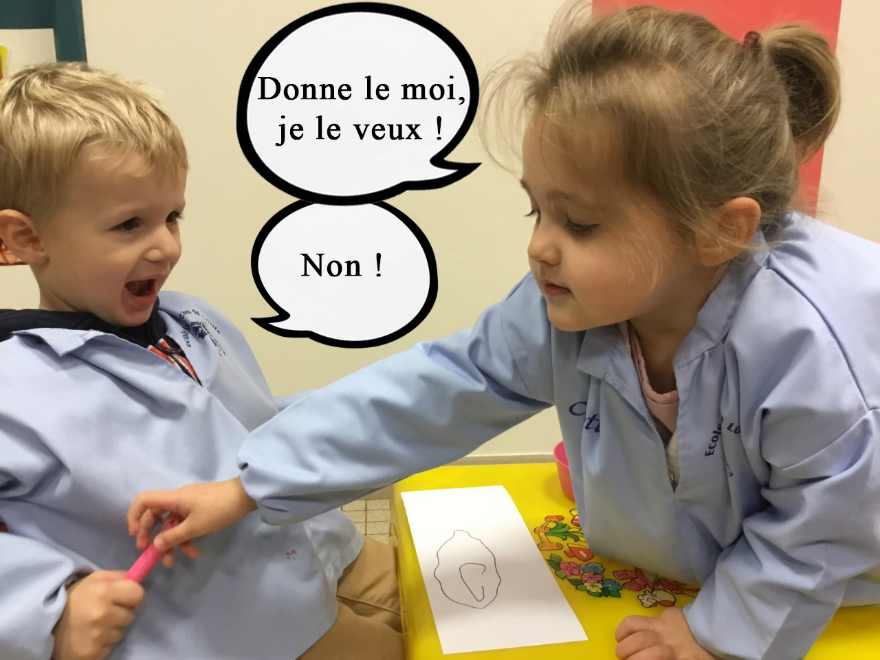 Petite et moyenne section 29/11/2021 Dans le cadre de l’éducation à la relation, les élèves ont imaginé une scènette pour mieux gérer un conflit. Nous en avons fait un petit roman photo.