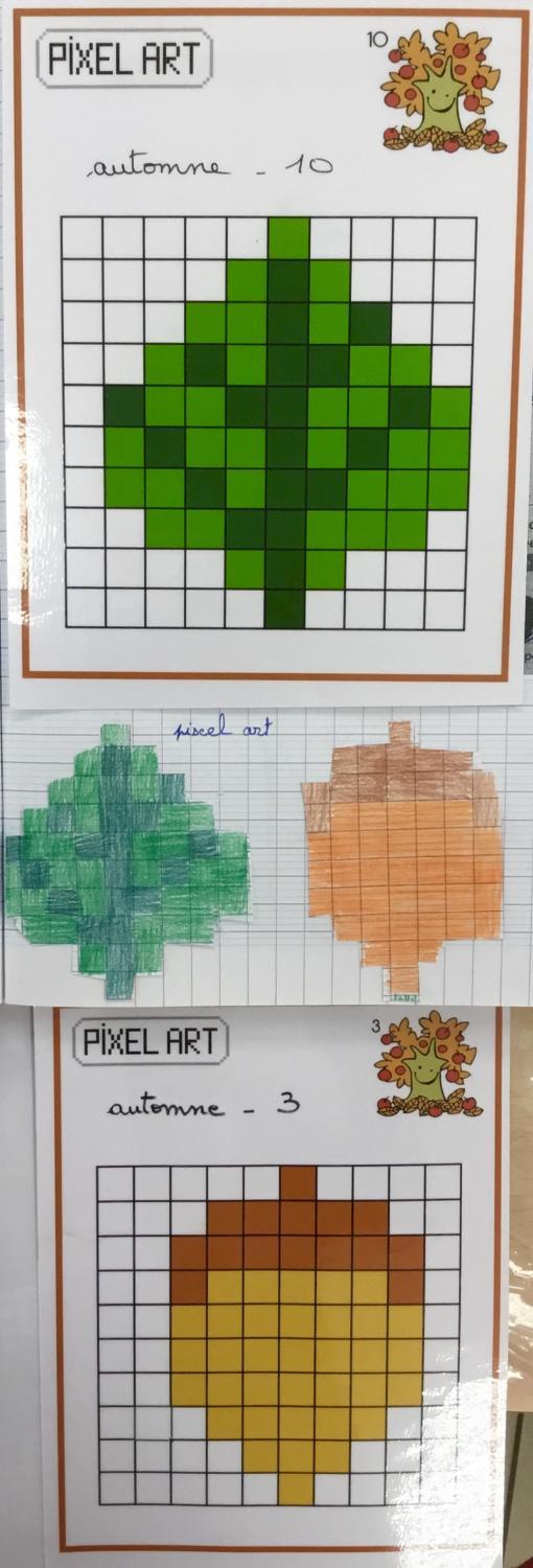 Les pixels arts sur l’automne étaient plus faciles que ceux sur l’école. Les carreaux des pixels arts sur les contes sont plus petits et plus nombreux donc nous allons les trouver plus difficiles.