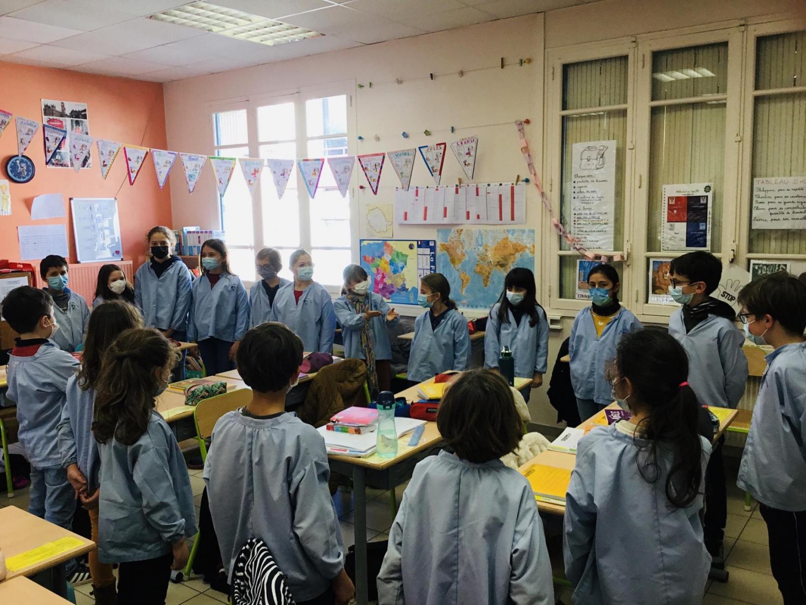 On le fait le soir quand on a le temps, avant que les parents viennent nous chercher. Les CE1 le font souvent le matin, pendant les rituels.