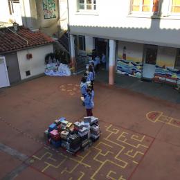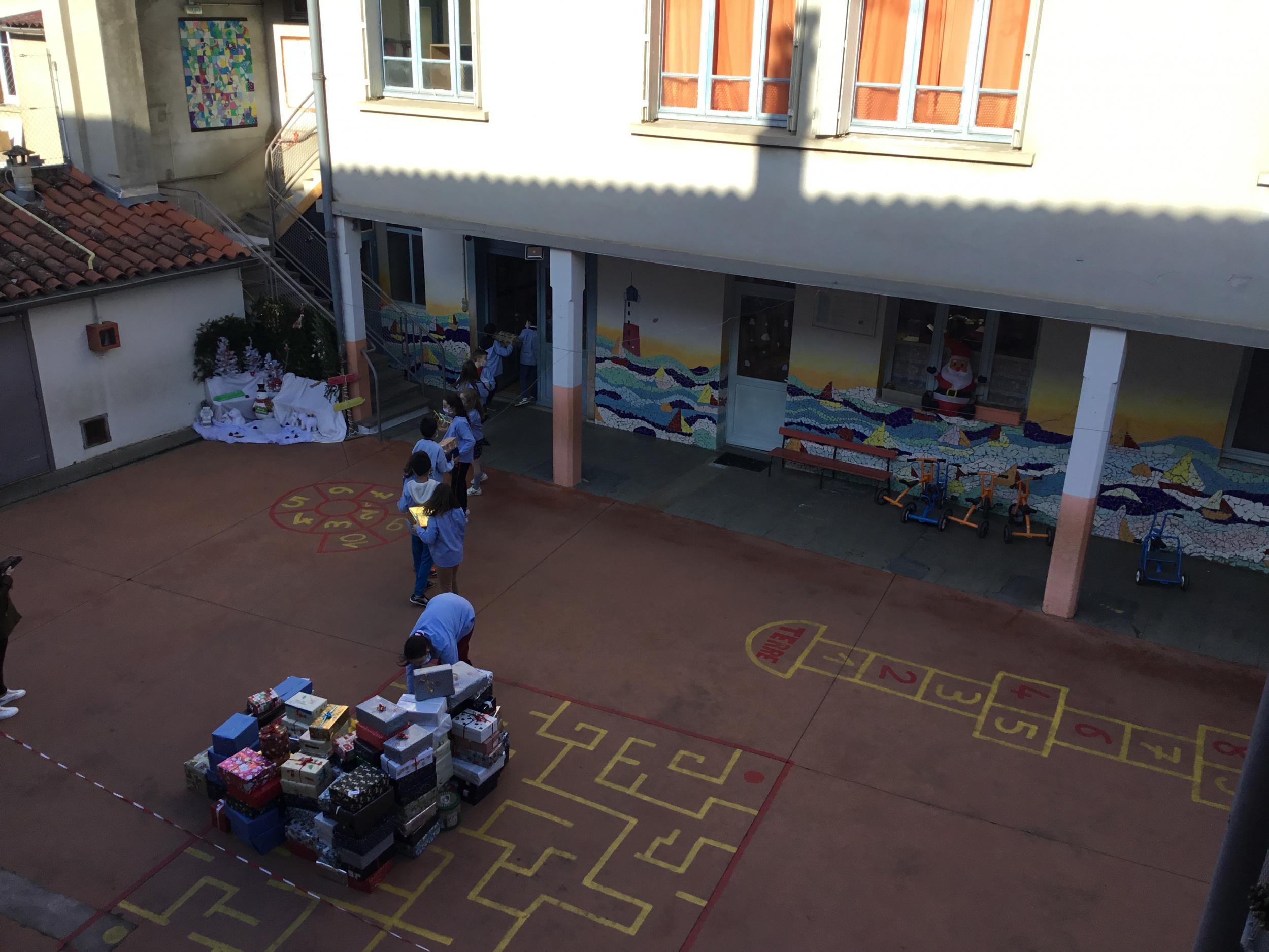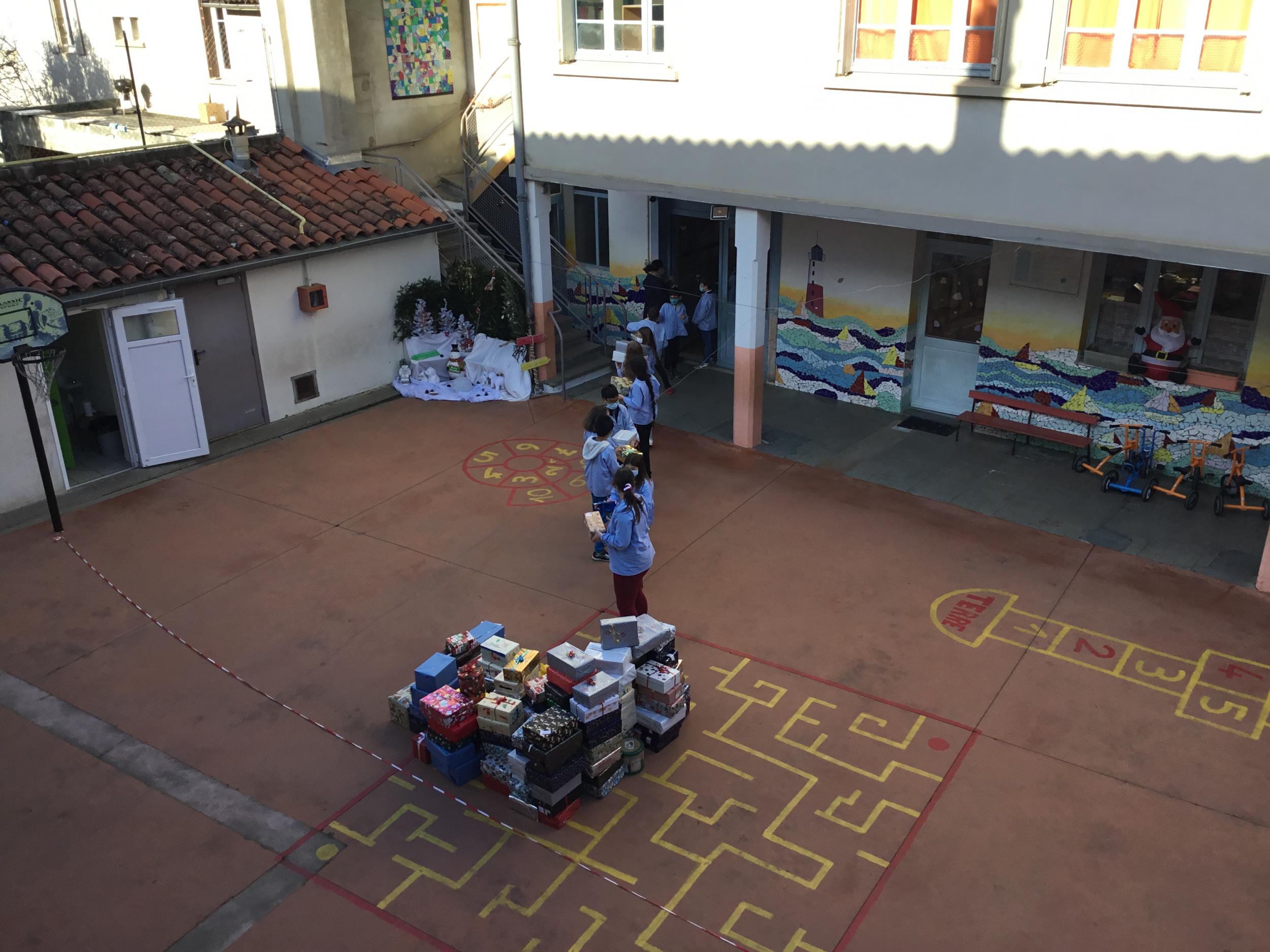 En partenariat avec les scouts, les élèves de toute l’école ont participé à l’opération une boîte pour Noël . Dans chaque boîte nous avons mis:
