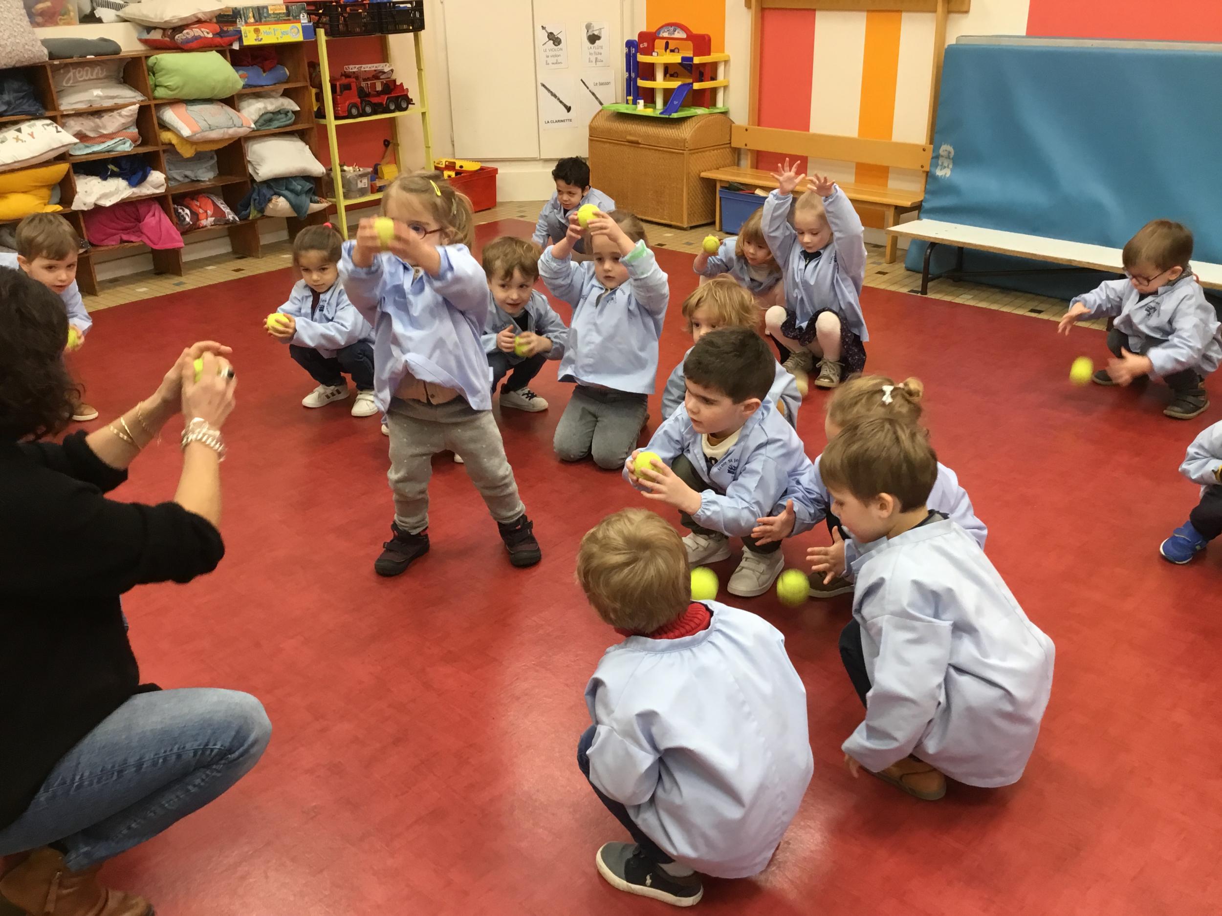 Après avoir utilisé les ballons durant les premières séances, nous avons découvert le lancer de balle , plus difficile à attraper 🤪