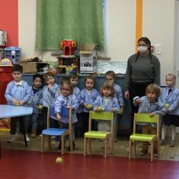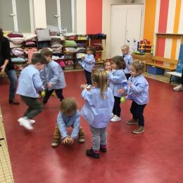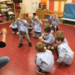 Les élèves se sont entraînés à jouer avec de façon individuelle ( rebond et lancer au niveau des yeux) puis nous avons appris à lancer le plus loin possible et à lancer en visant une cible .
