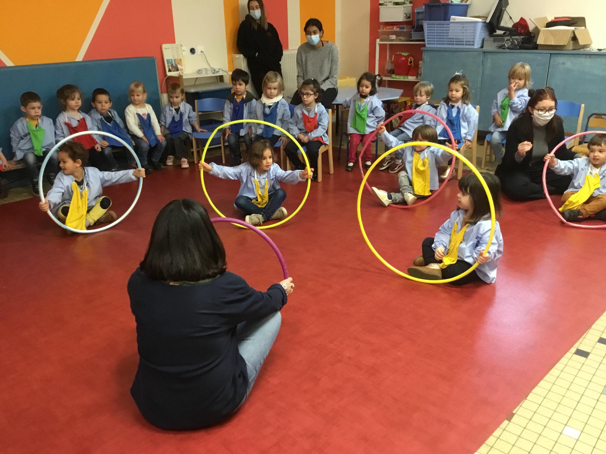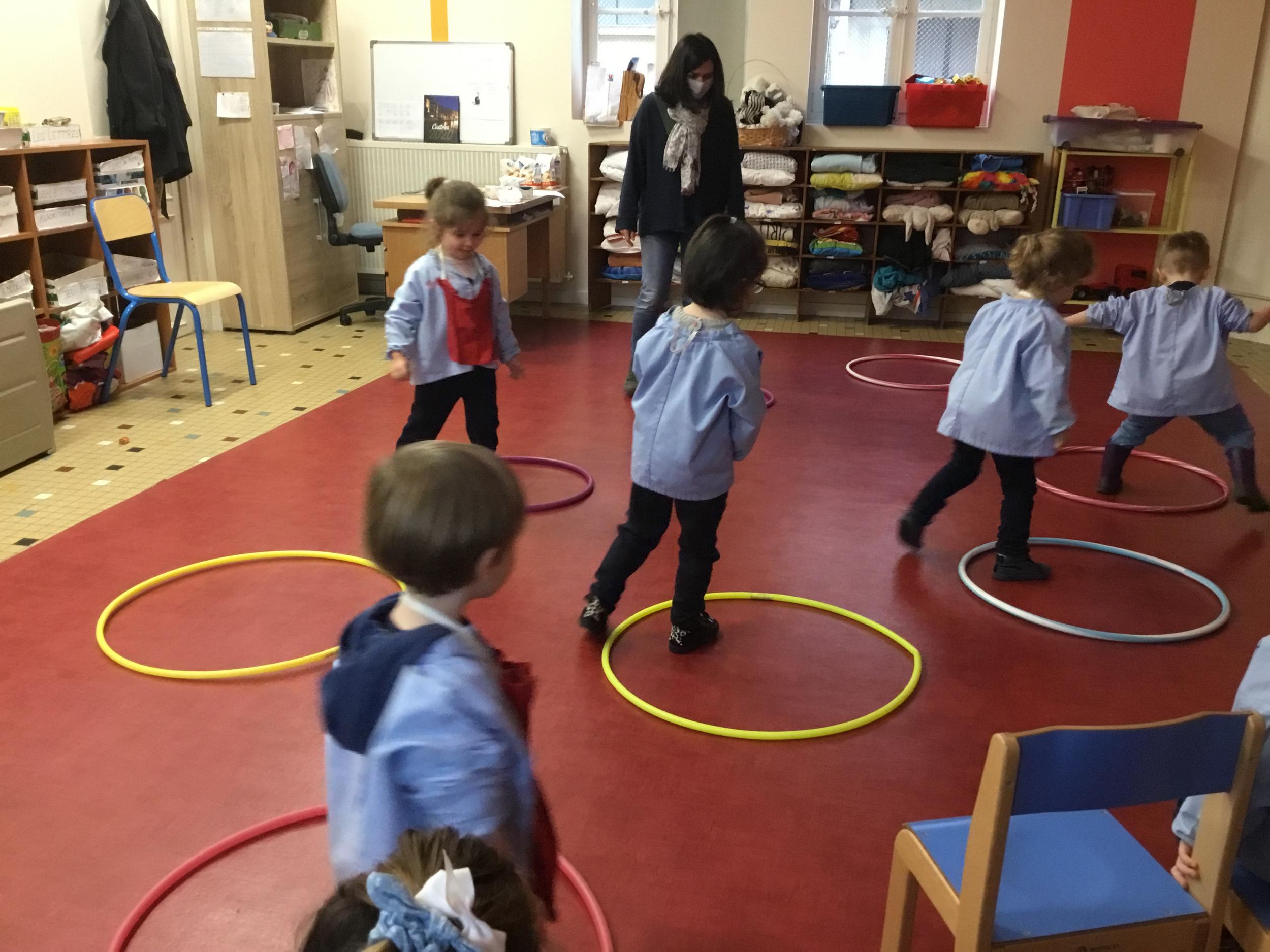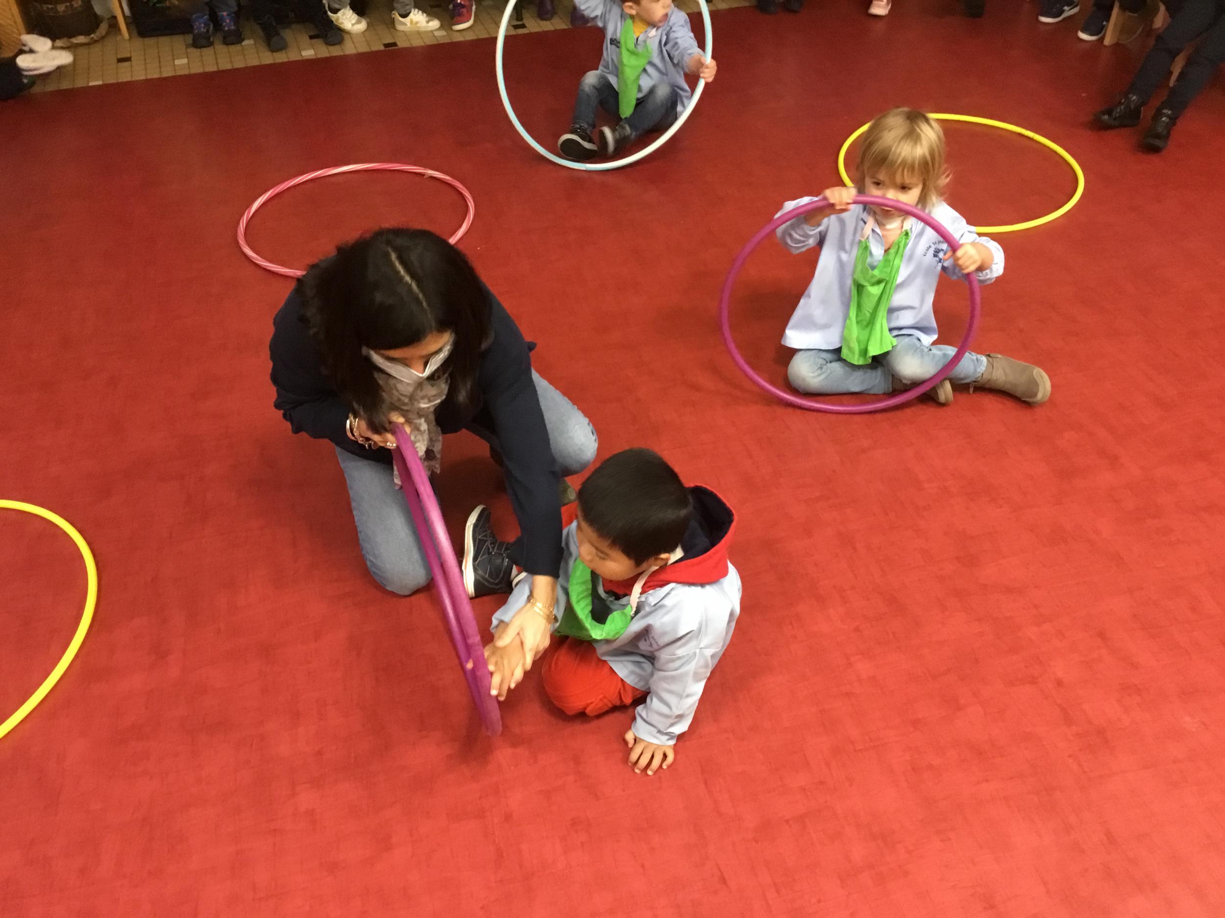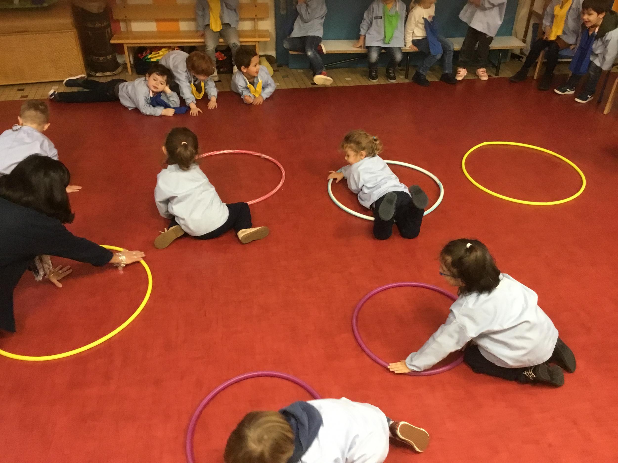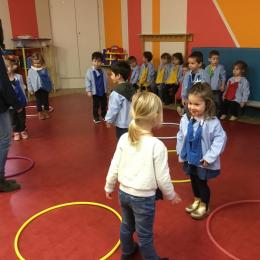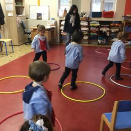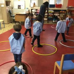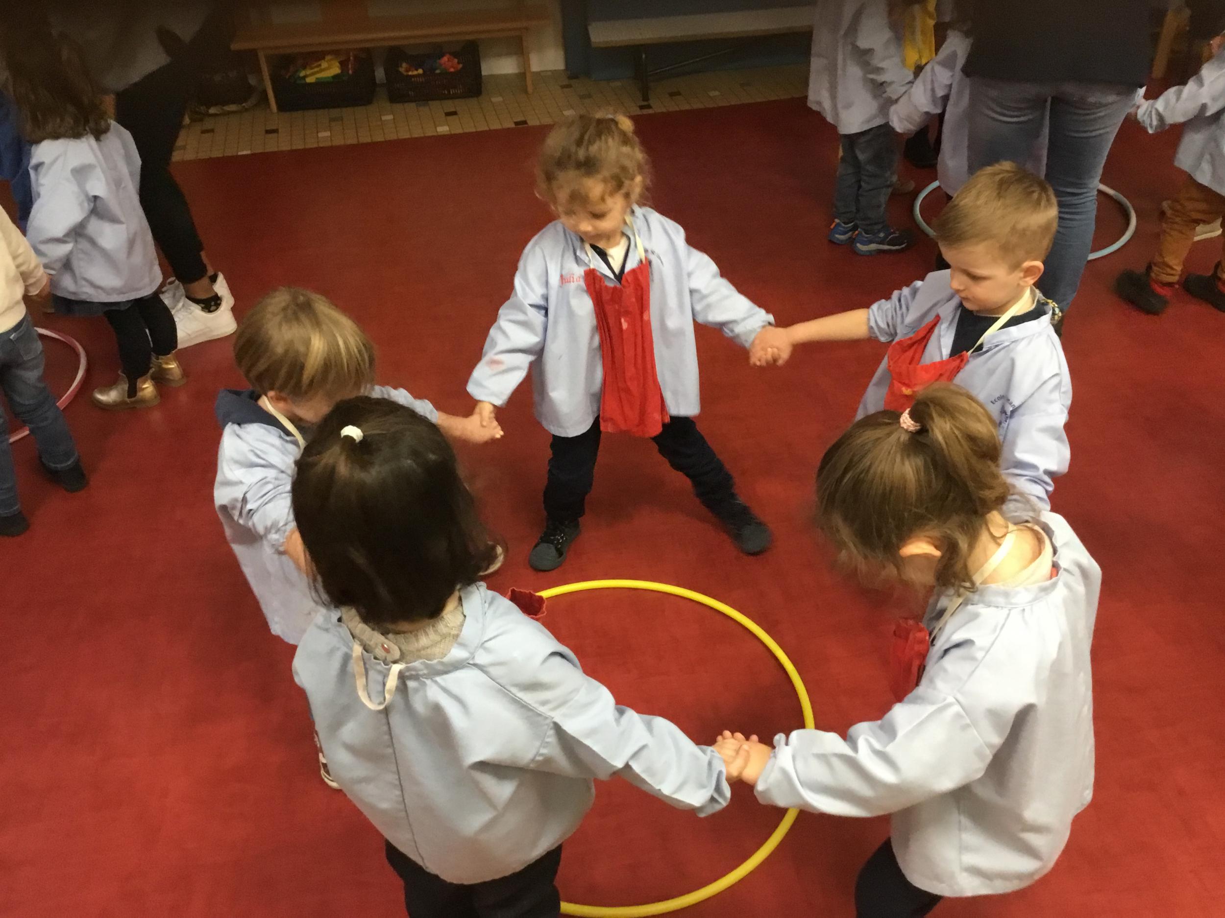 Ensuite la maîtresse nous a proposé de faire des rondes autour des cerceaux ... difficile de tourner ensemble !!! Les enfants ont beaucoup rigolé 😂😂😂