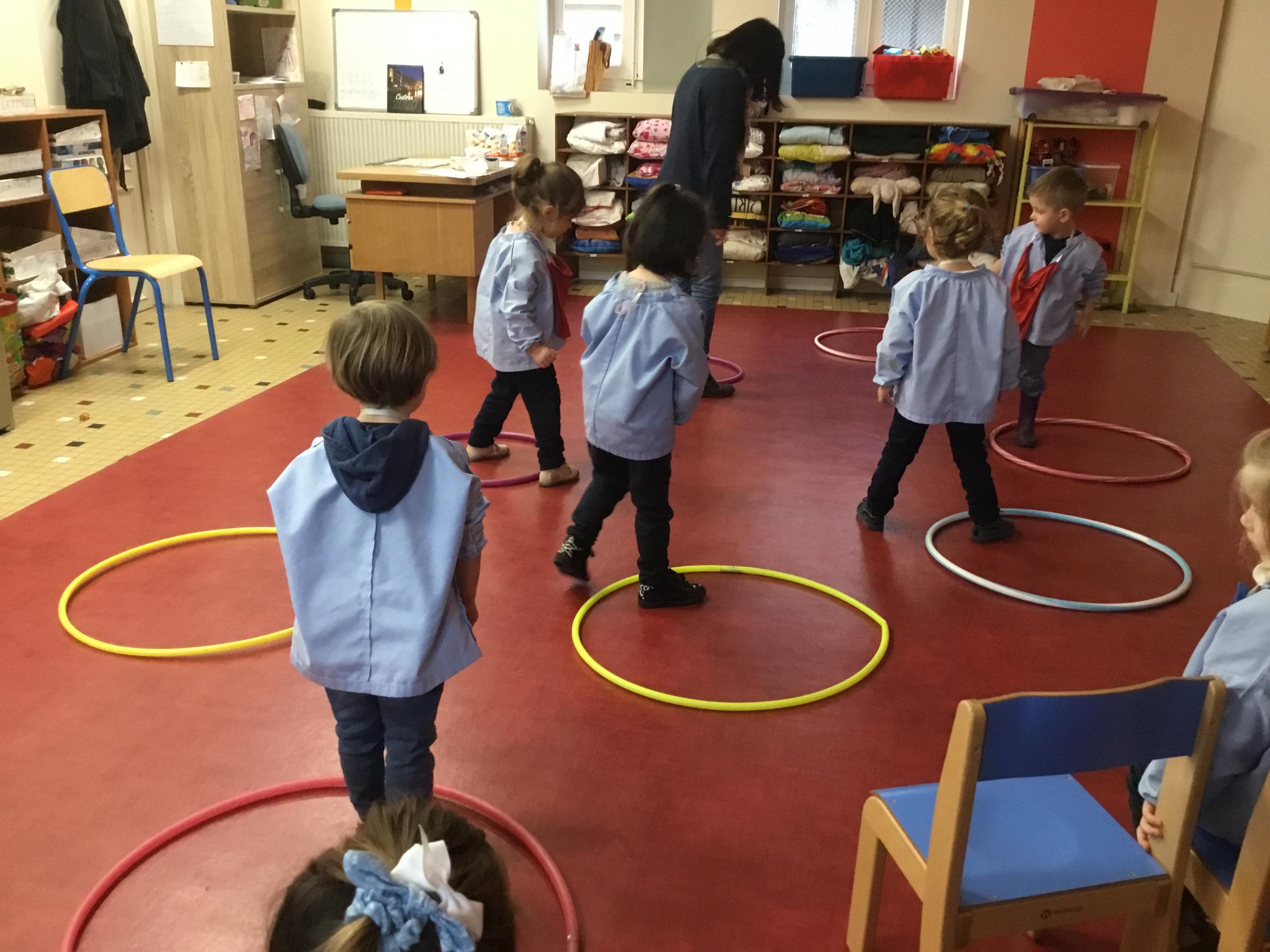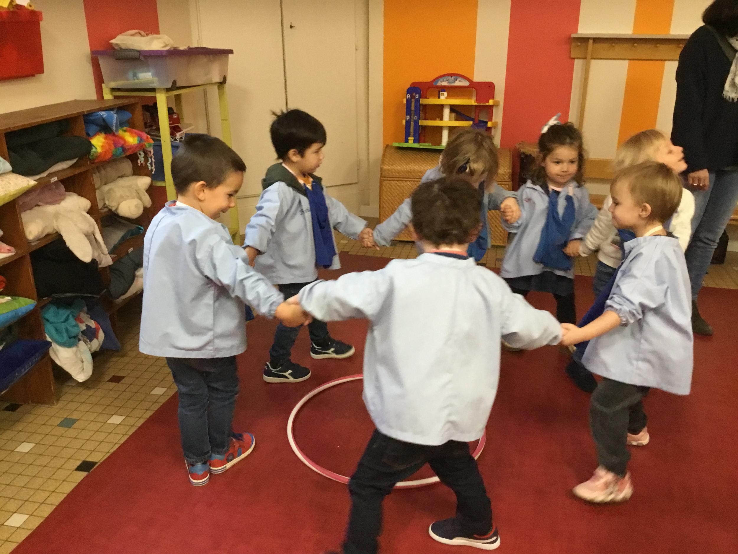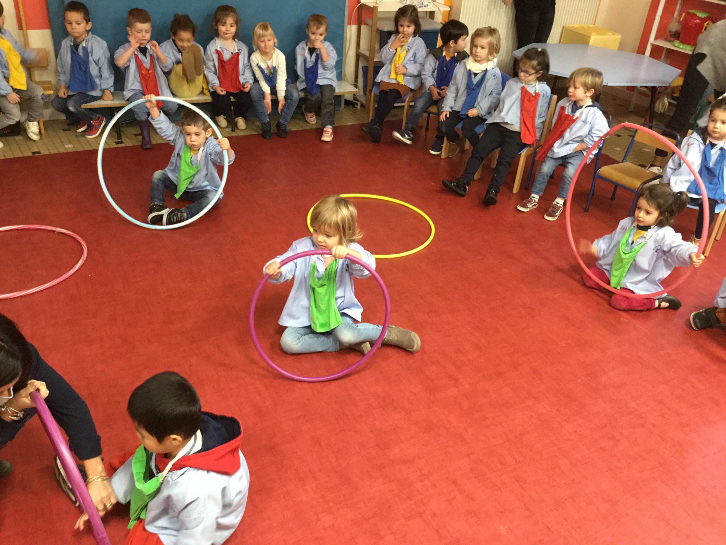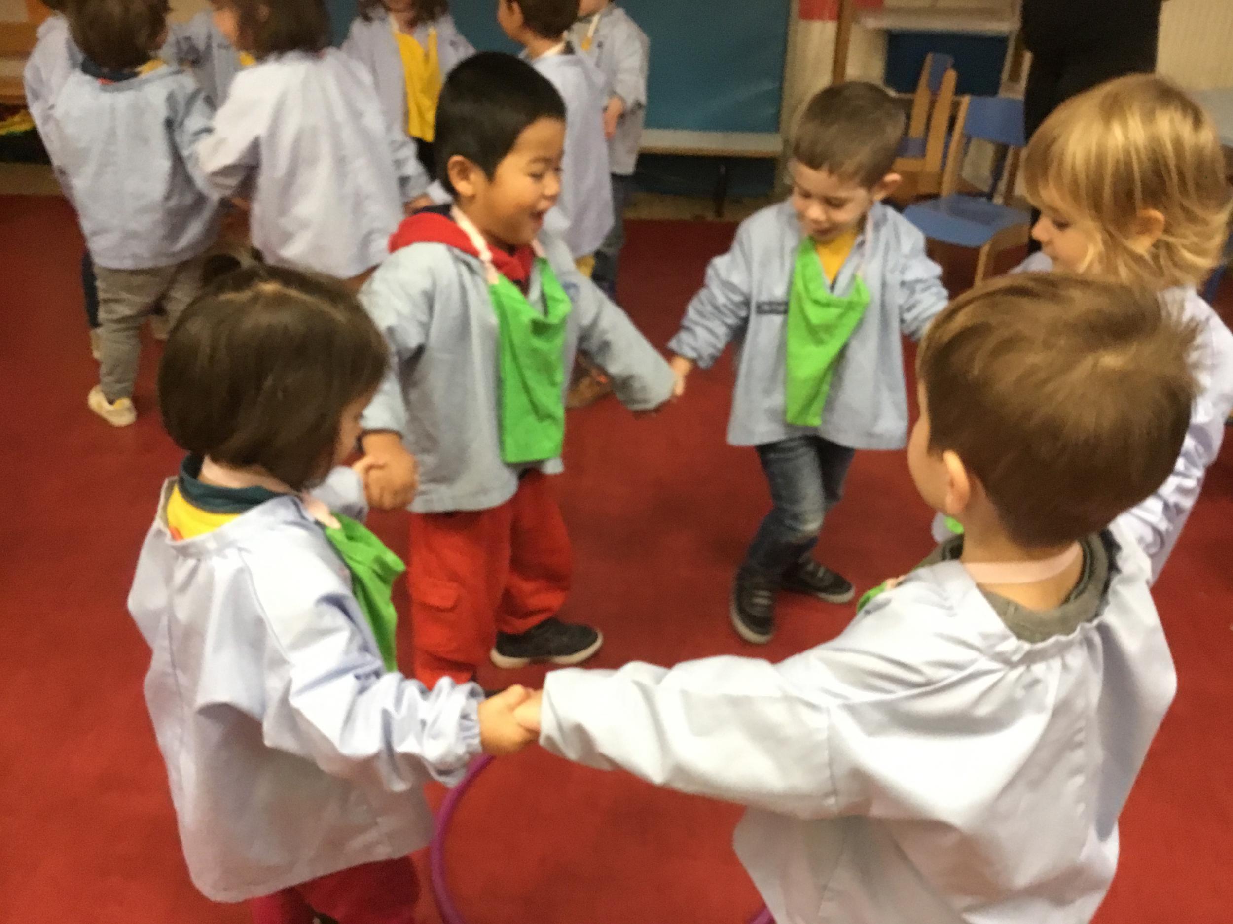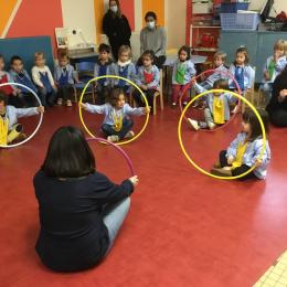 Ensuite la maîtresse nous a proposé de faire des rondes autour des cerceaux ... difficile de tourner ensemble !!! Les enfants ont beaucoup rigolé 😂😂😂