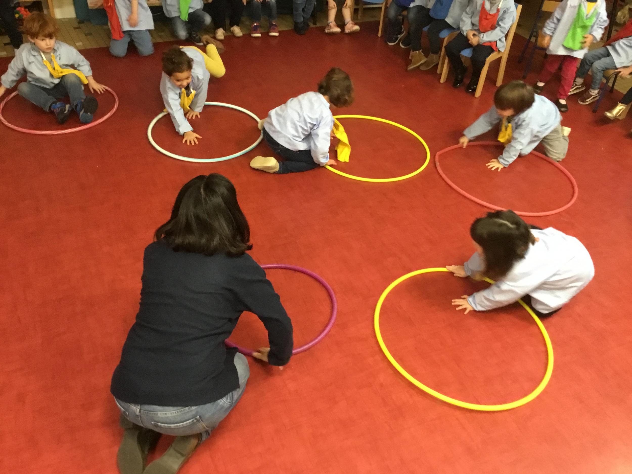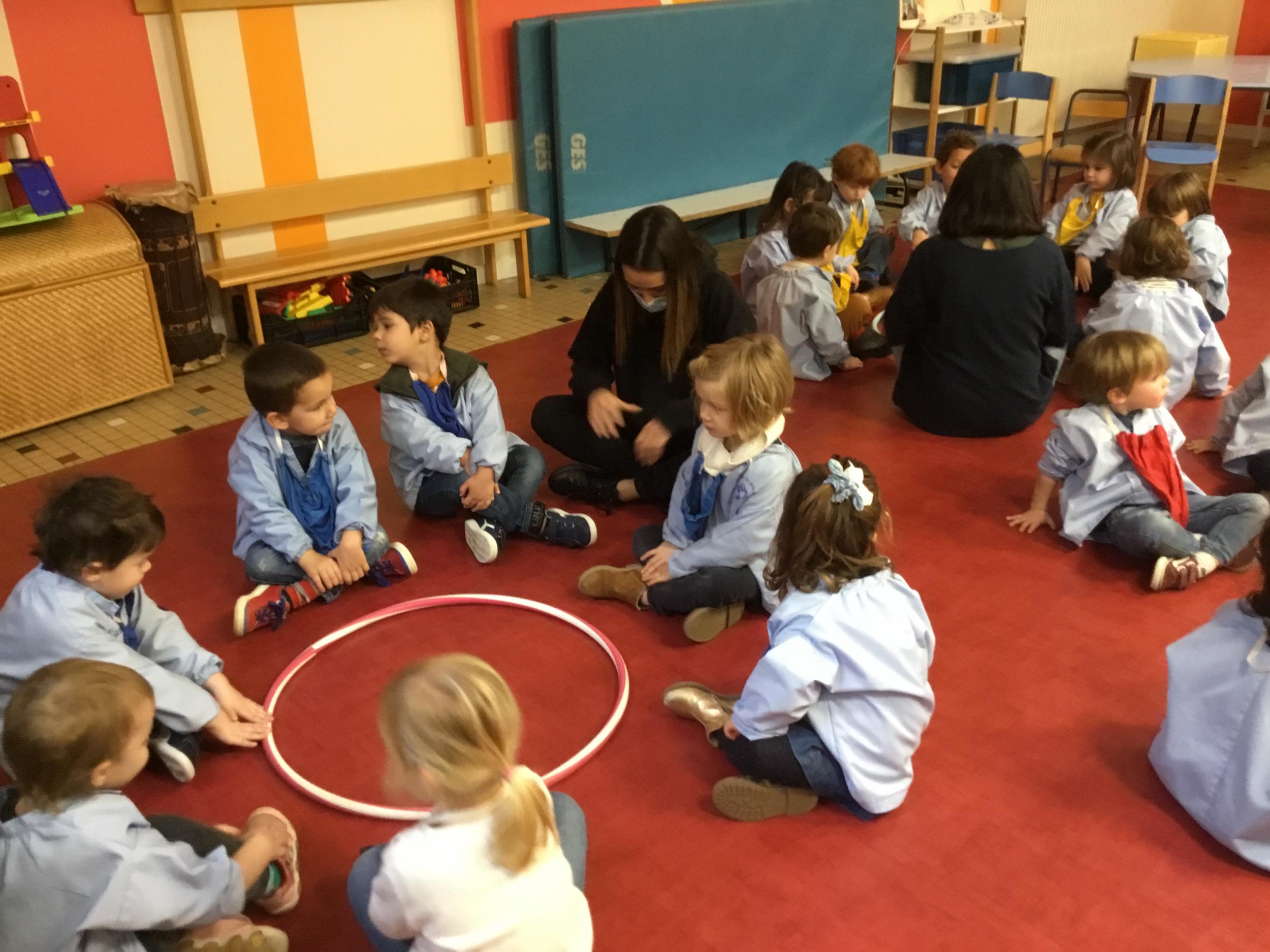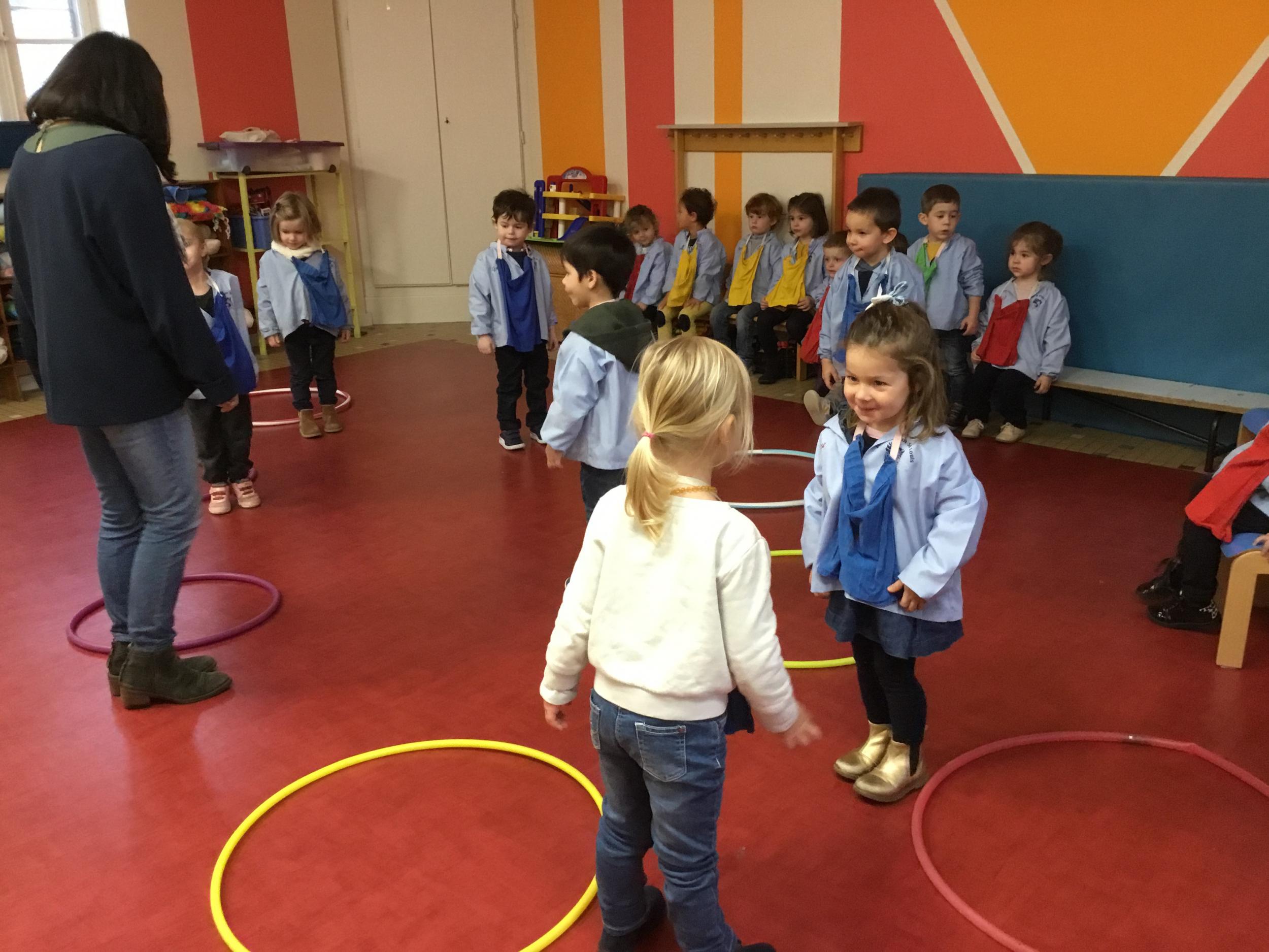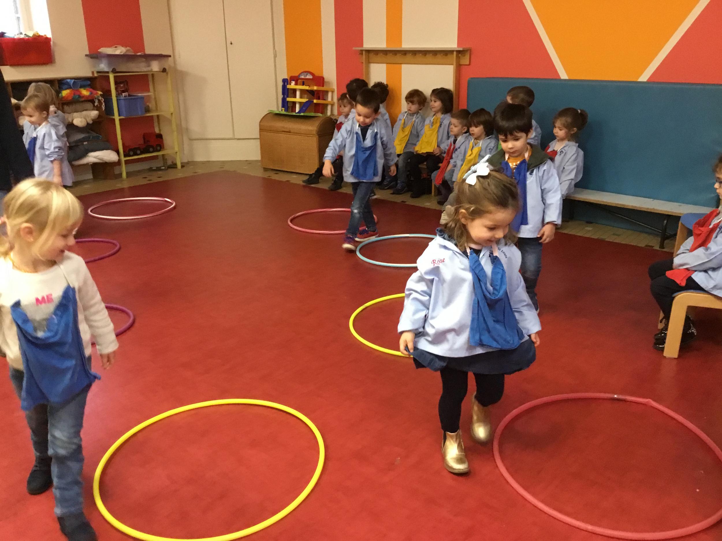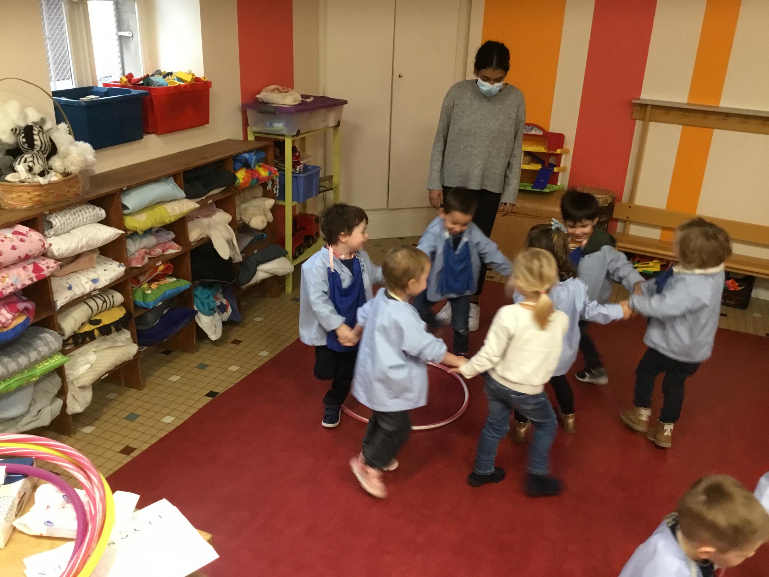 Ensuite la maîtresse nous a proposé de faire des rondes autour des cerceaux ... difficile de tourner ensemble !!! Les enfants ont beaucoup rigolé 😂😂😂