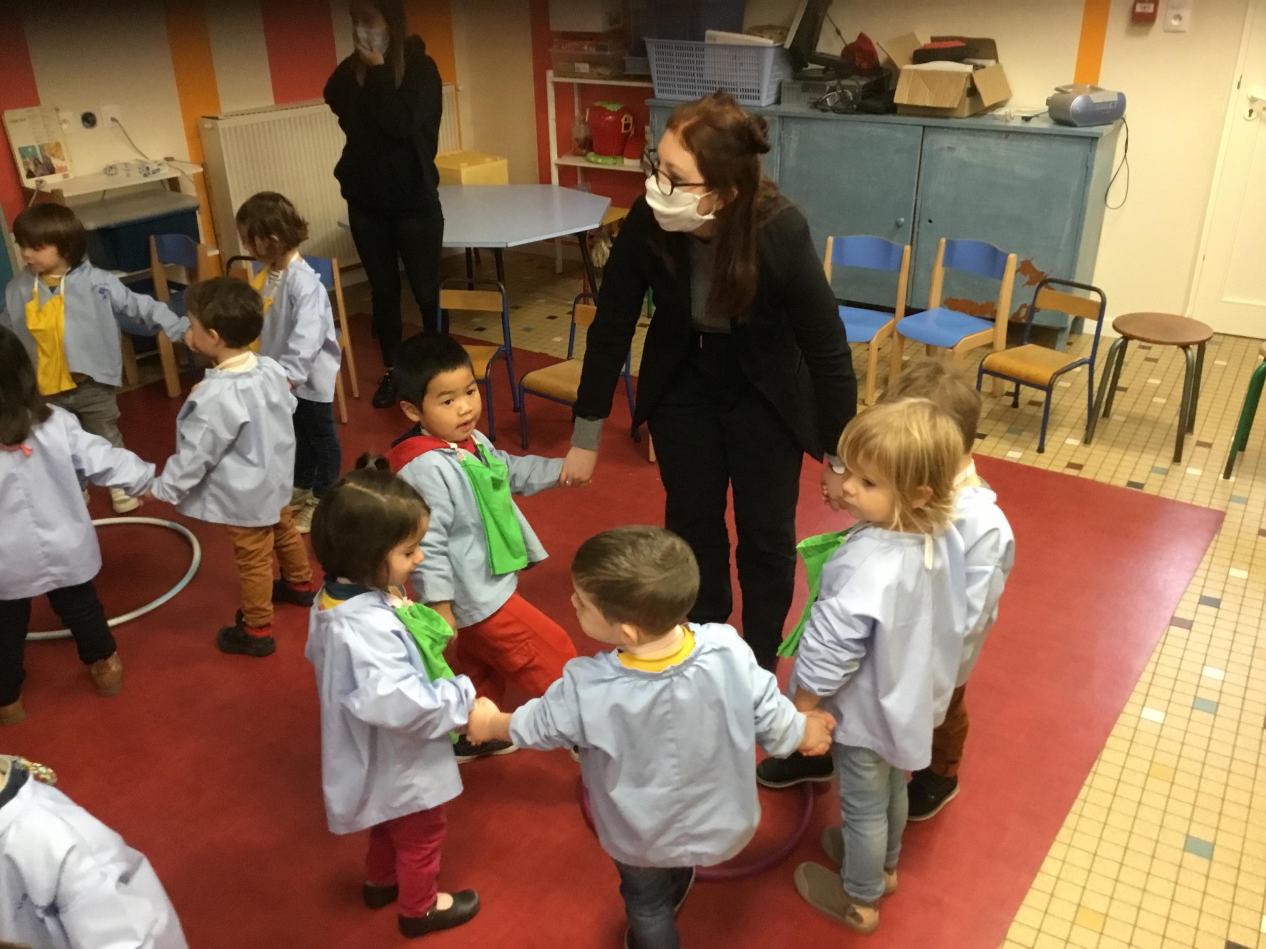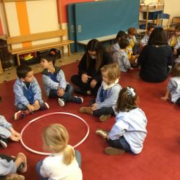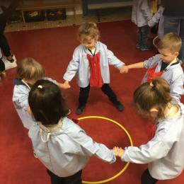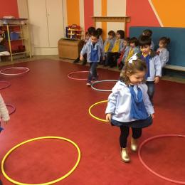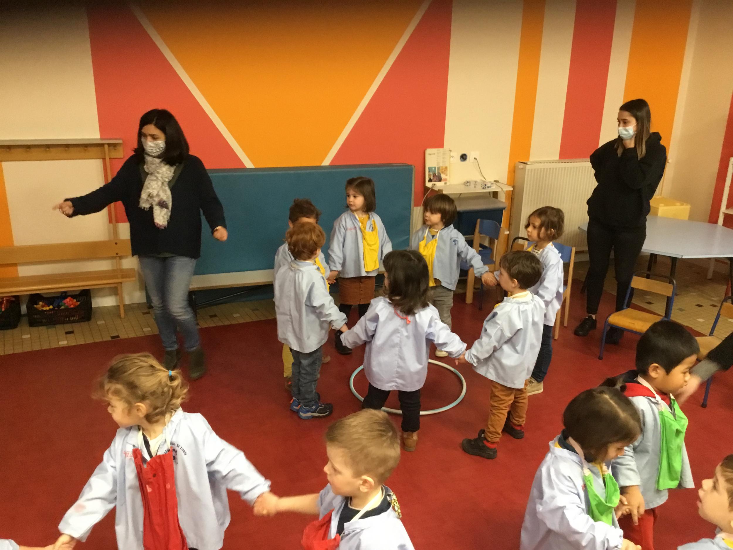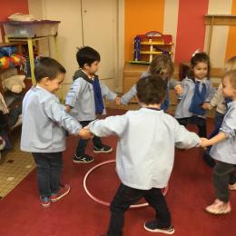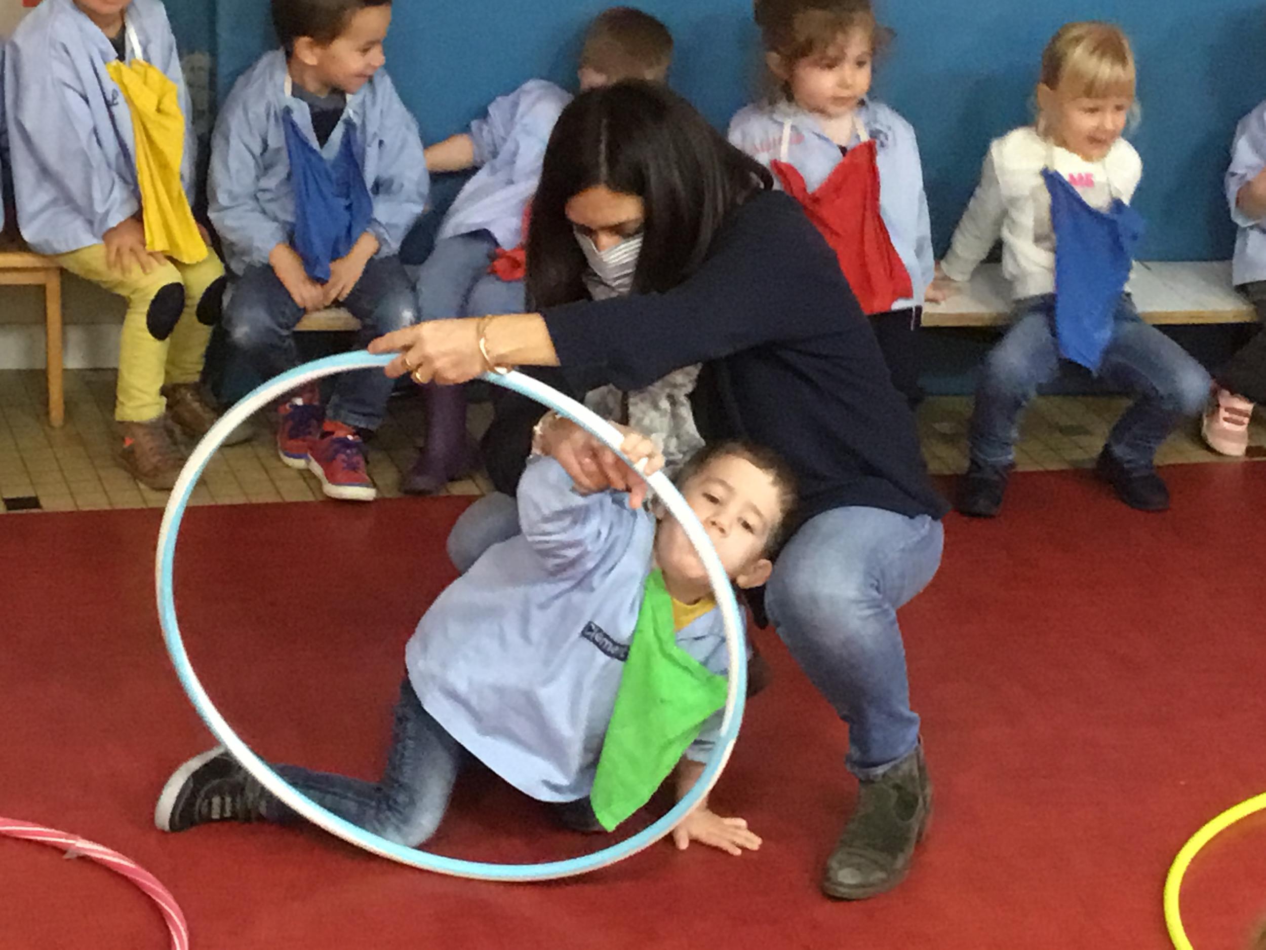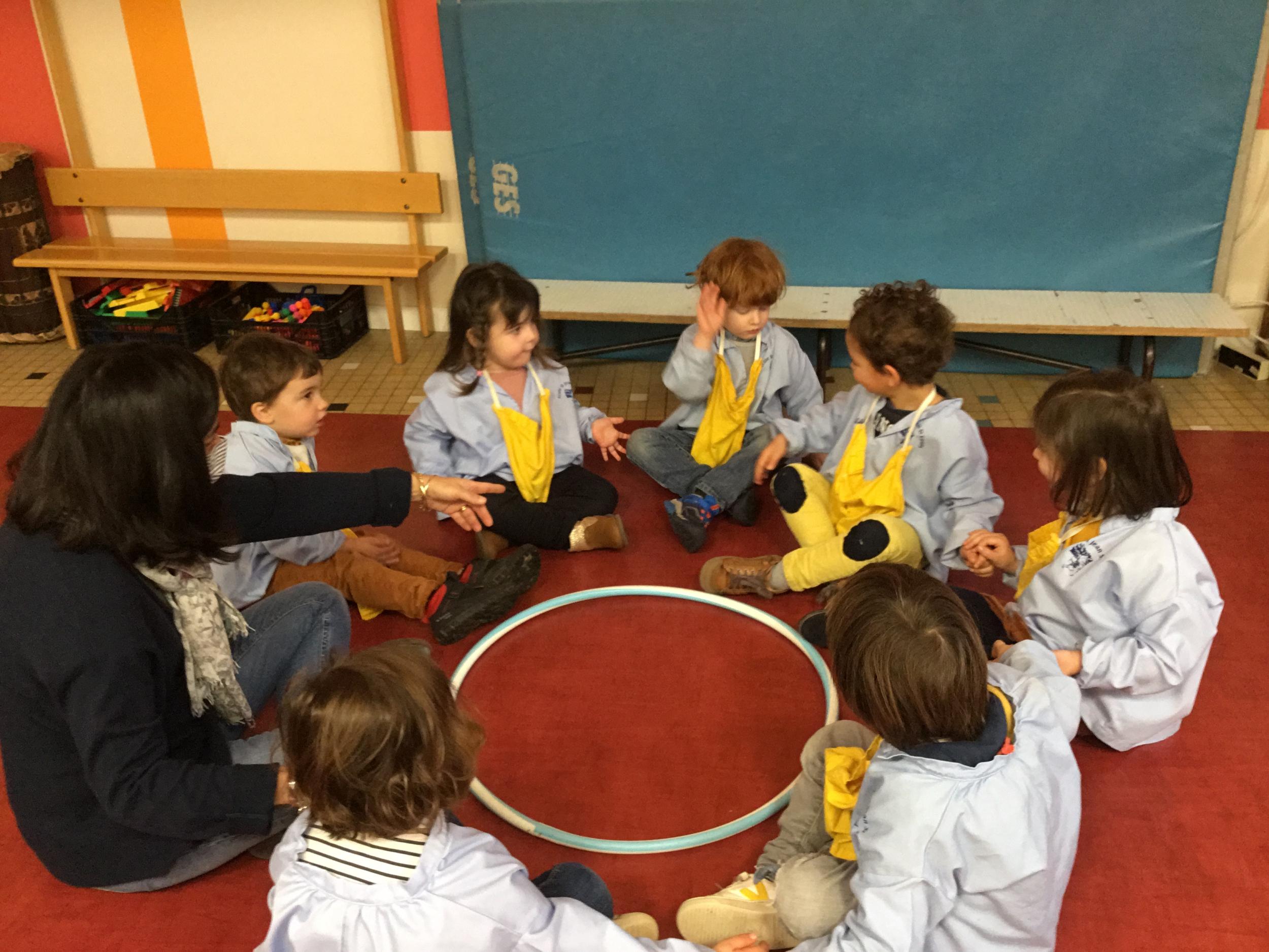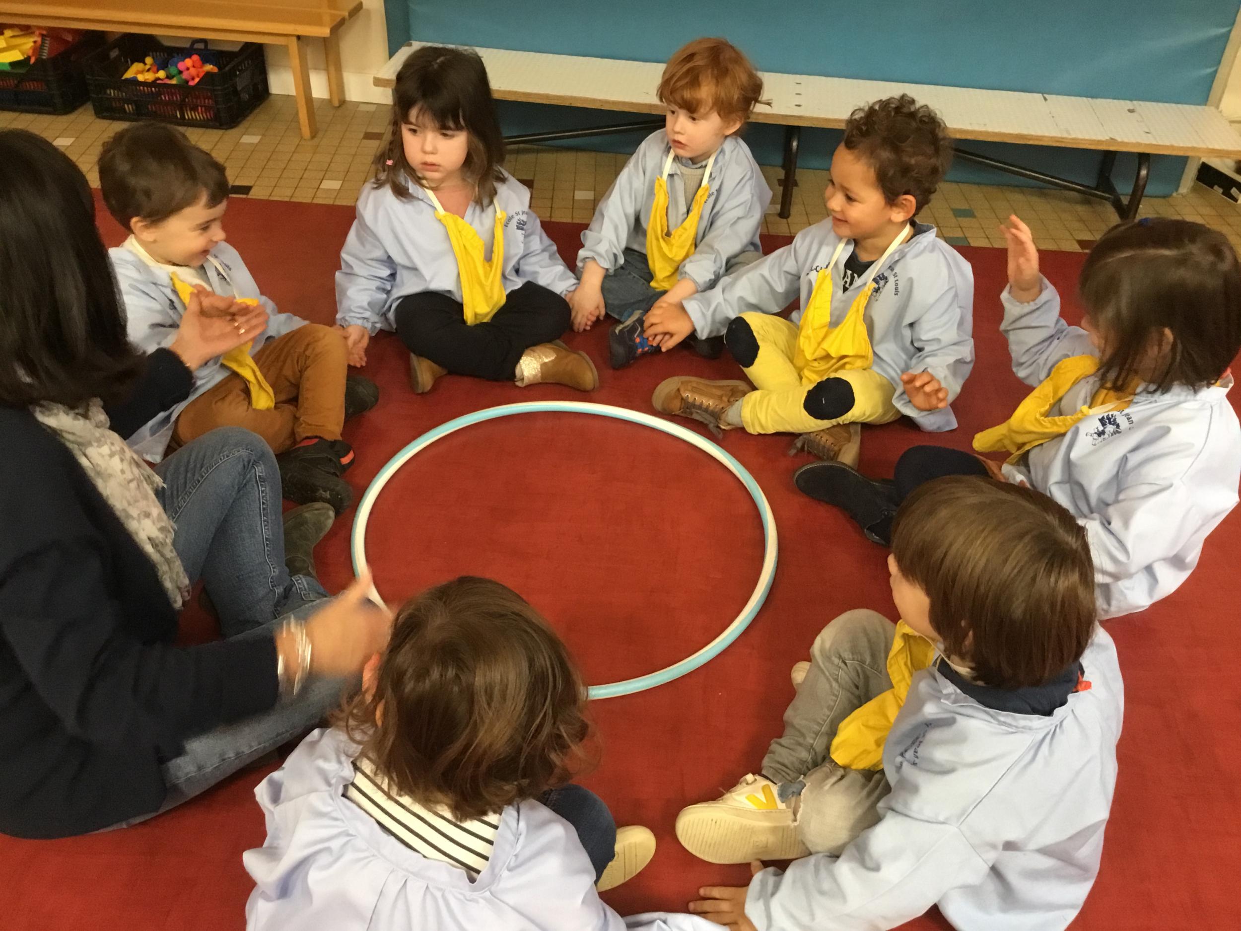 Ensuite la maîtresse nous a proposé de faire des rondes autour des cerceaux ... difficile de tourner ensemble !!! Les enfants ont beaucoup rigolé 😂😂😂