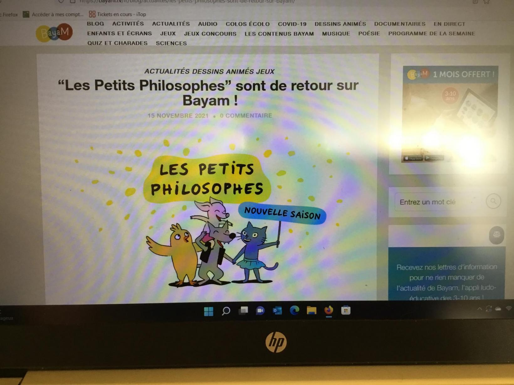 Aujourd’hui , la maîtresse nous a fait une surprise après le temps du goûter ( Du pain frais et du chocolat😋) … Nous nous sommes installés pour regarder un petit dessin animé.