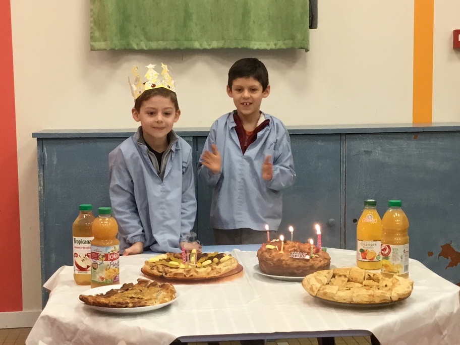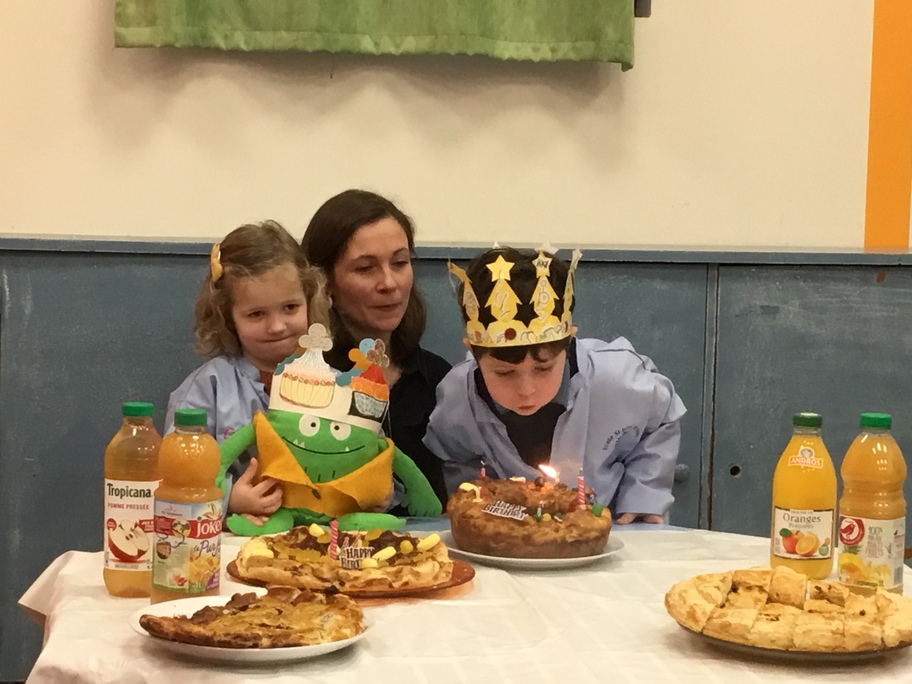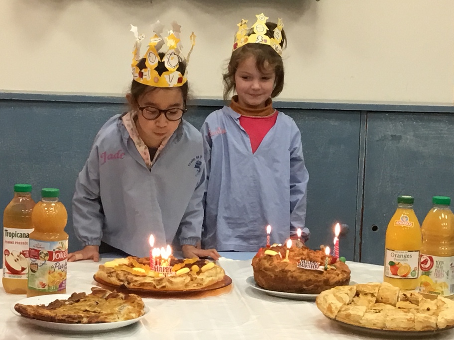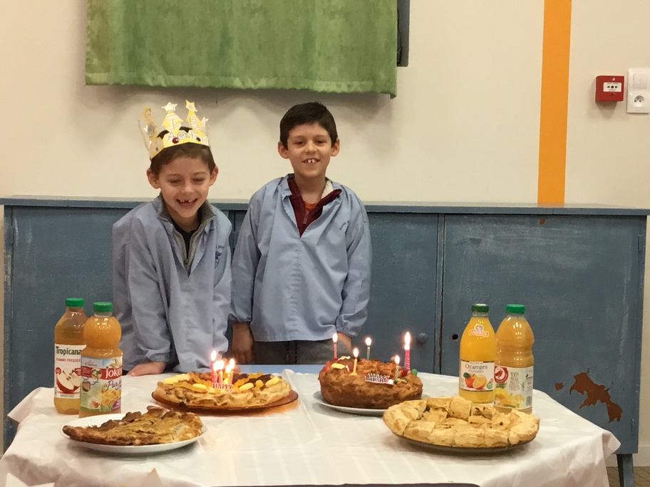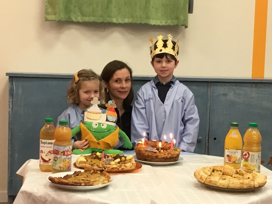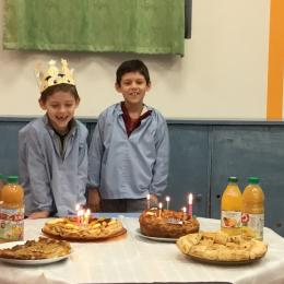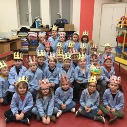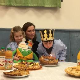 Après avoir fabriqué de belles couronnes des rois, nous avons fêté les anniversaires de janvier et février, tout le monde bien couronné!