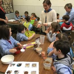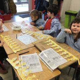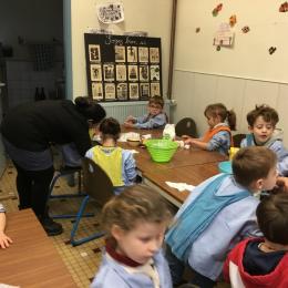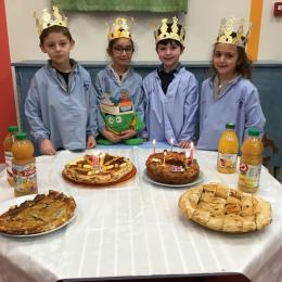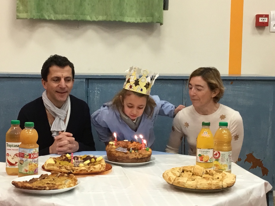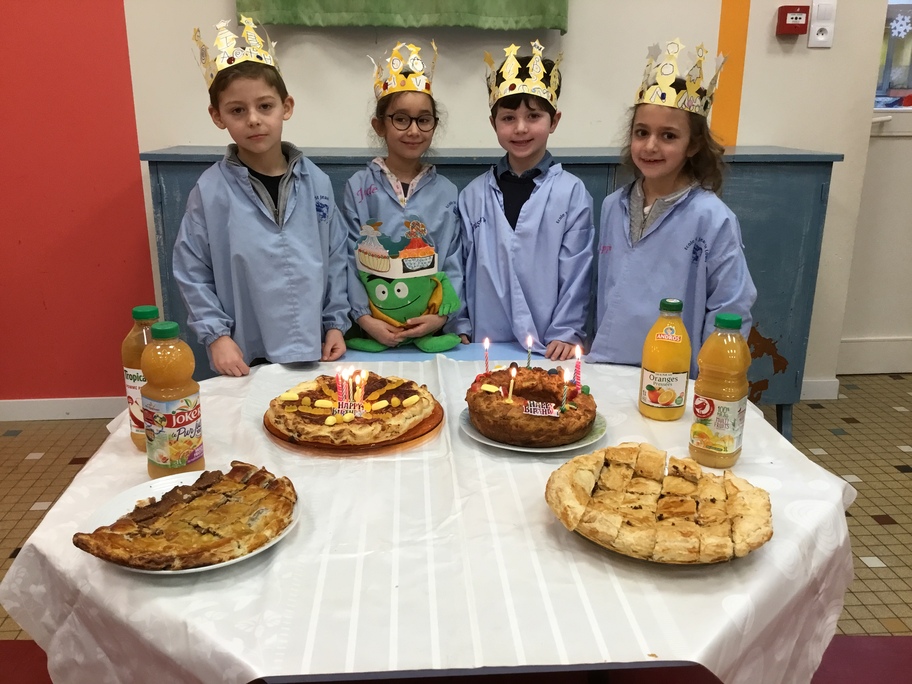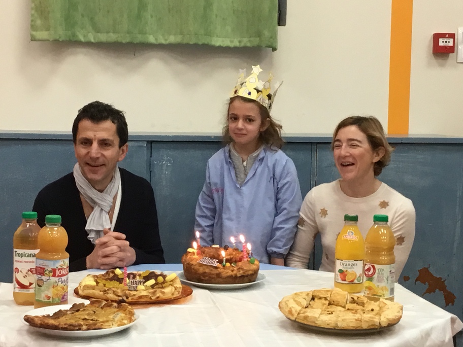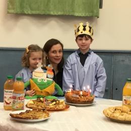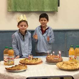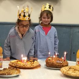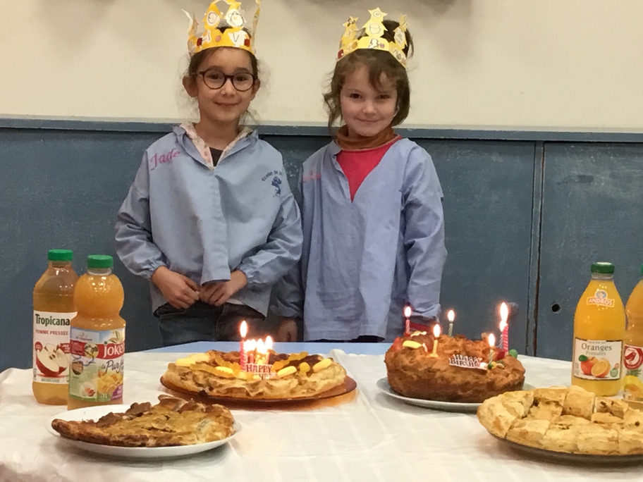Après avoir fabriqué de belles couronnes des rois, nous avons fêté les anniversaires de janvier et février, tout le monde bien couronné!