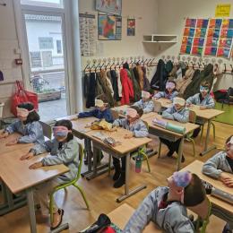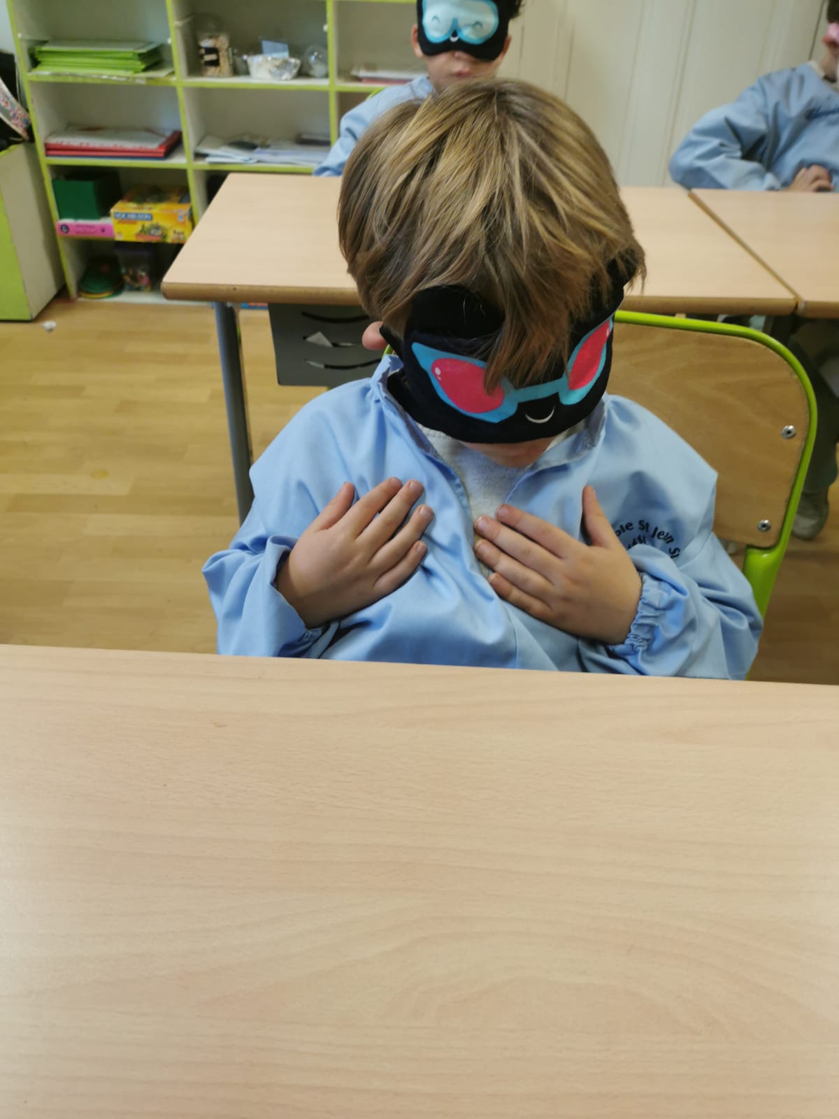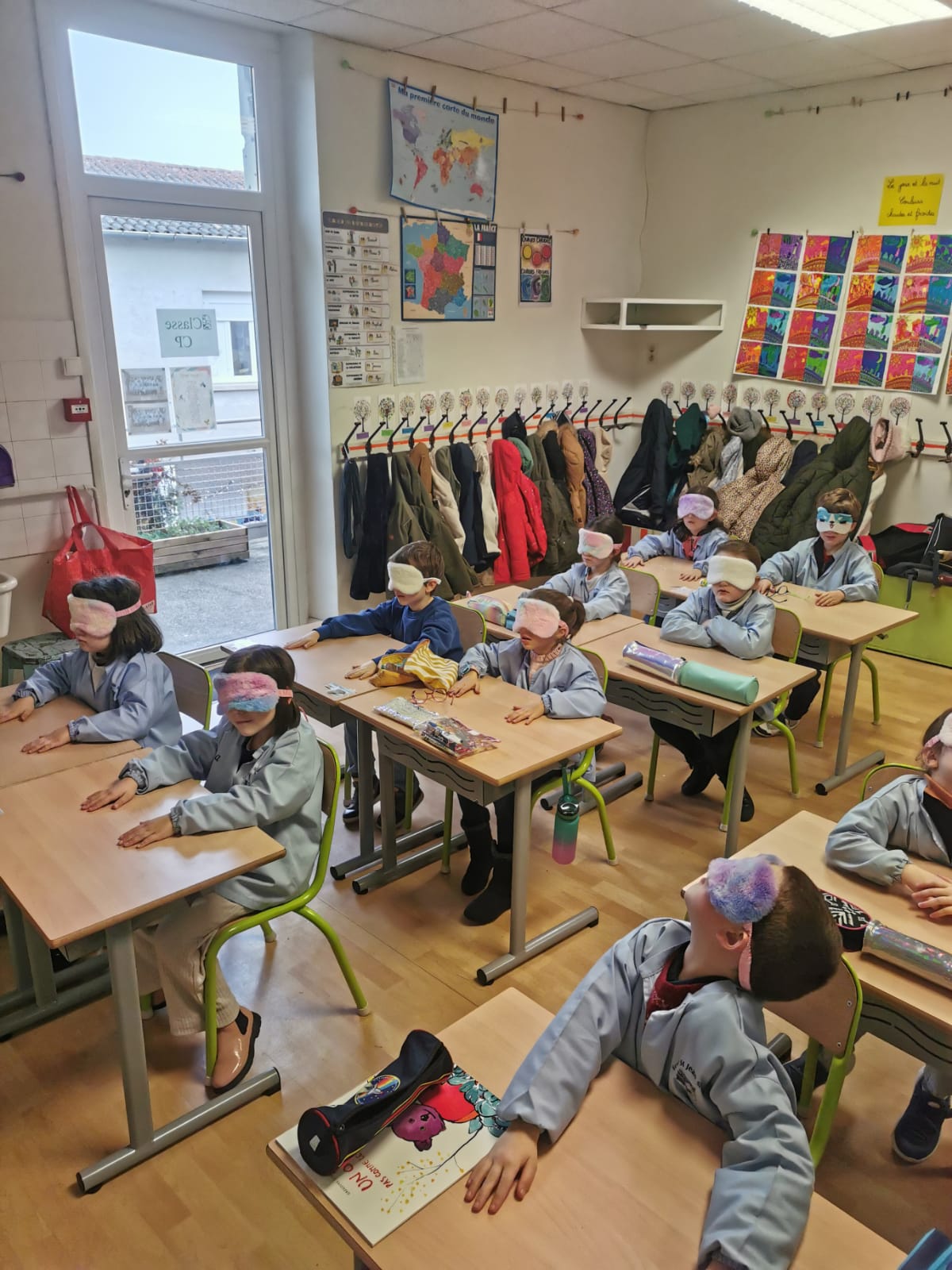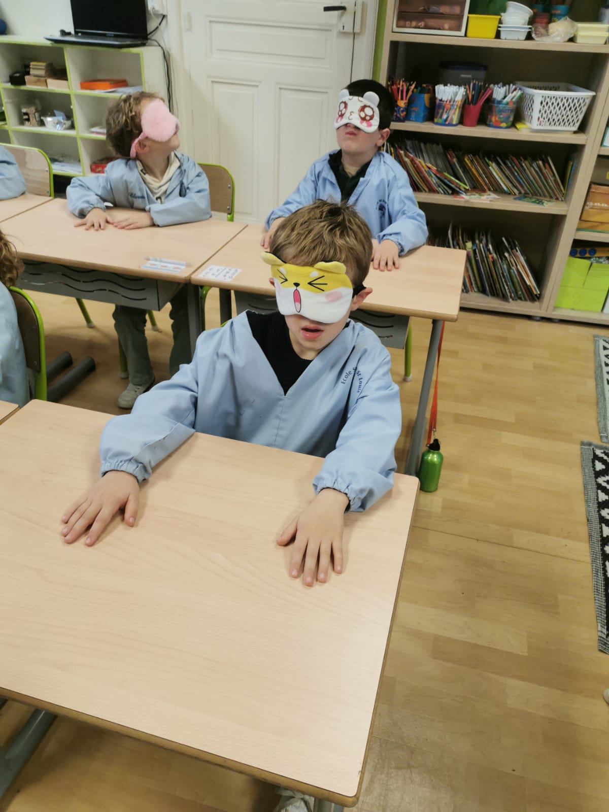 La maîtresse a acheté des masques rigolos pour aider certains élèves qui avaient des difficultés à fermer les yeux.