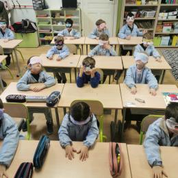 Depuis quelques semaines, Aymeric, papa de deux élèves de l'école, vient en classe pour initier les élèves de CP à la relaxation tous les jeudis en début d'après-midi.
