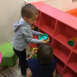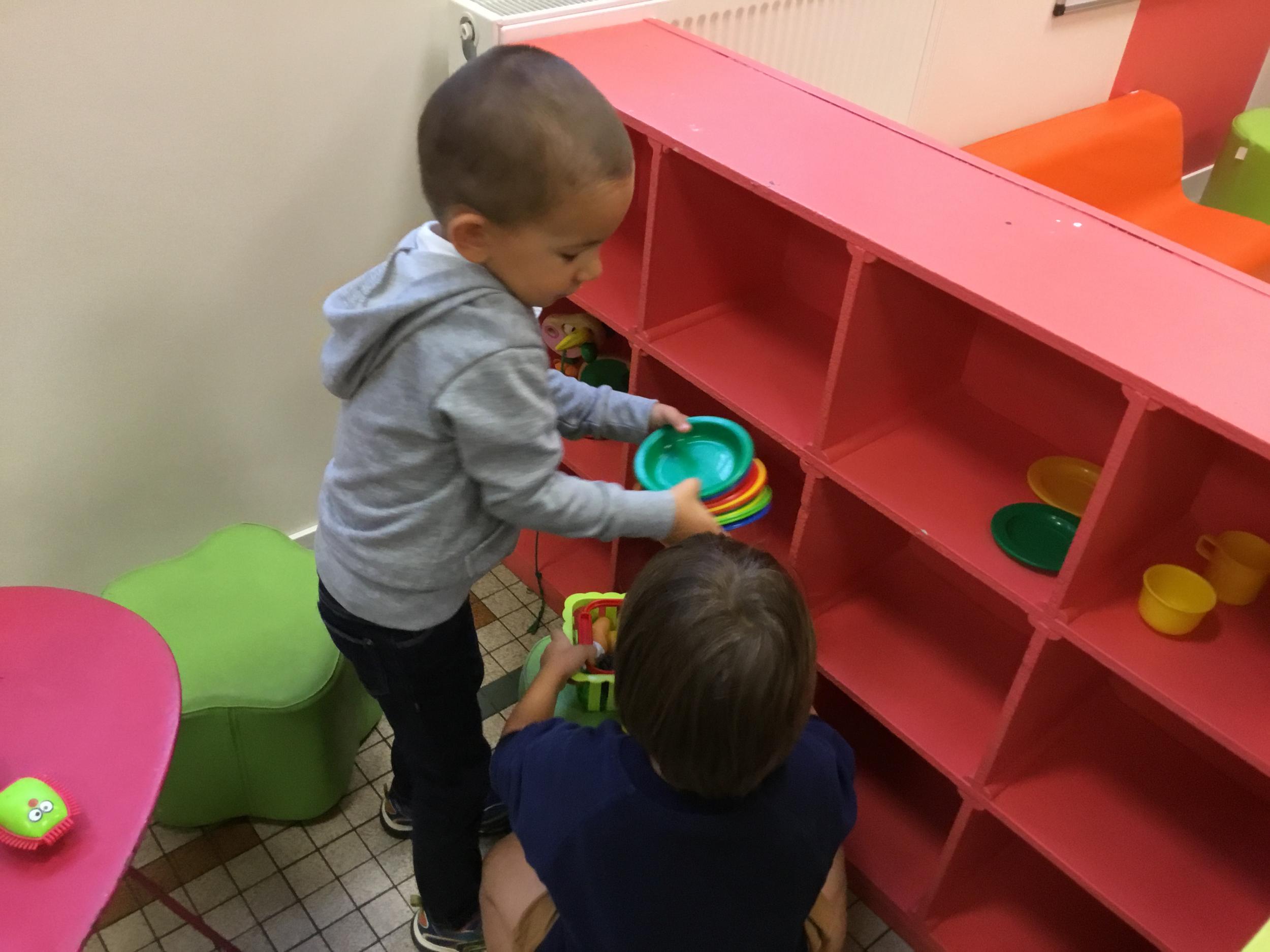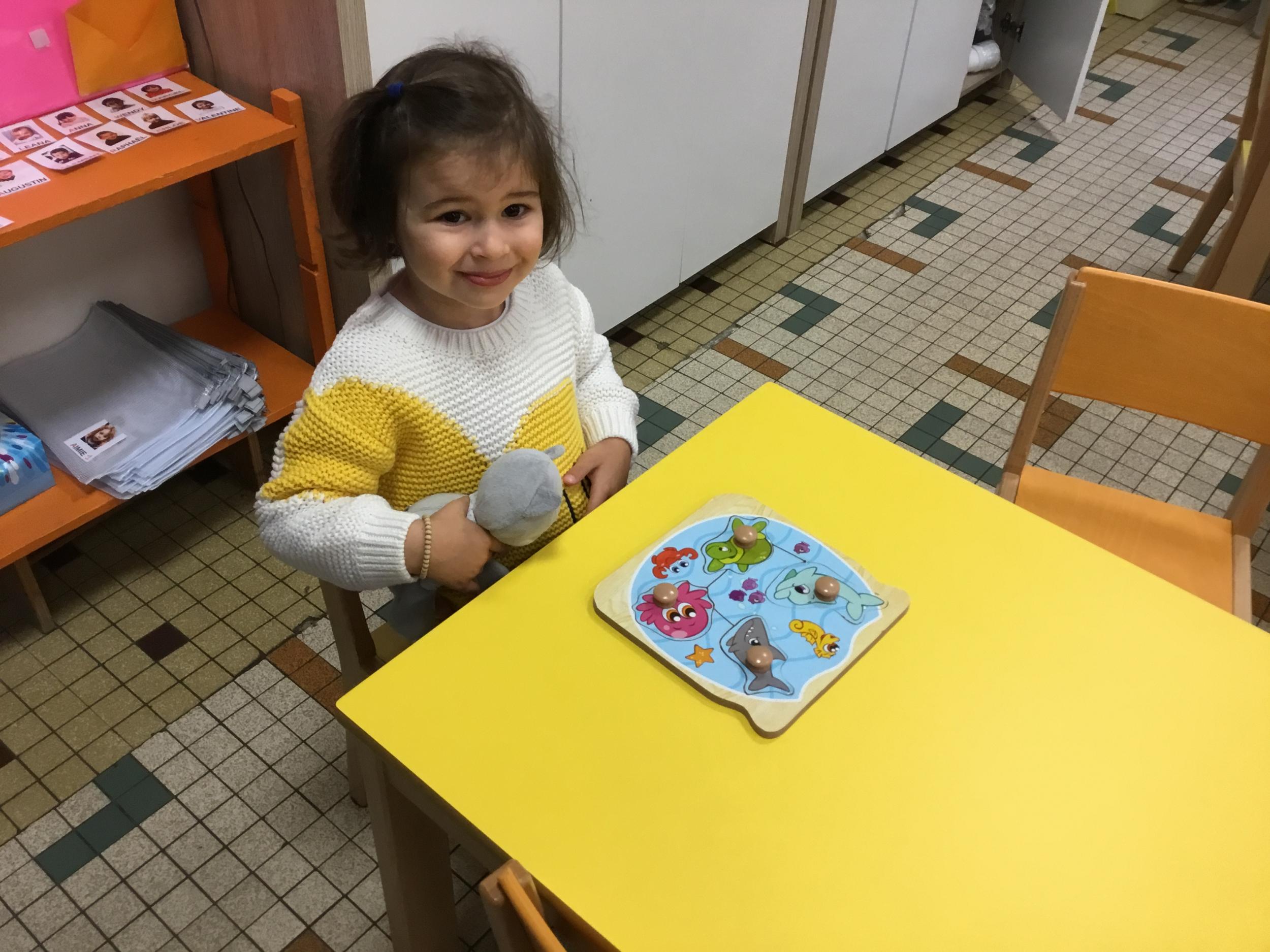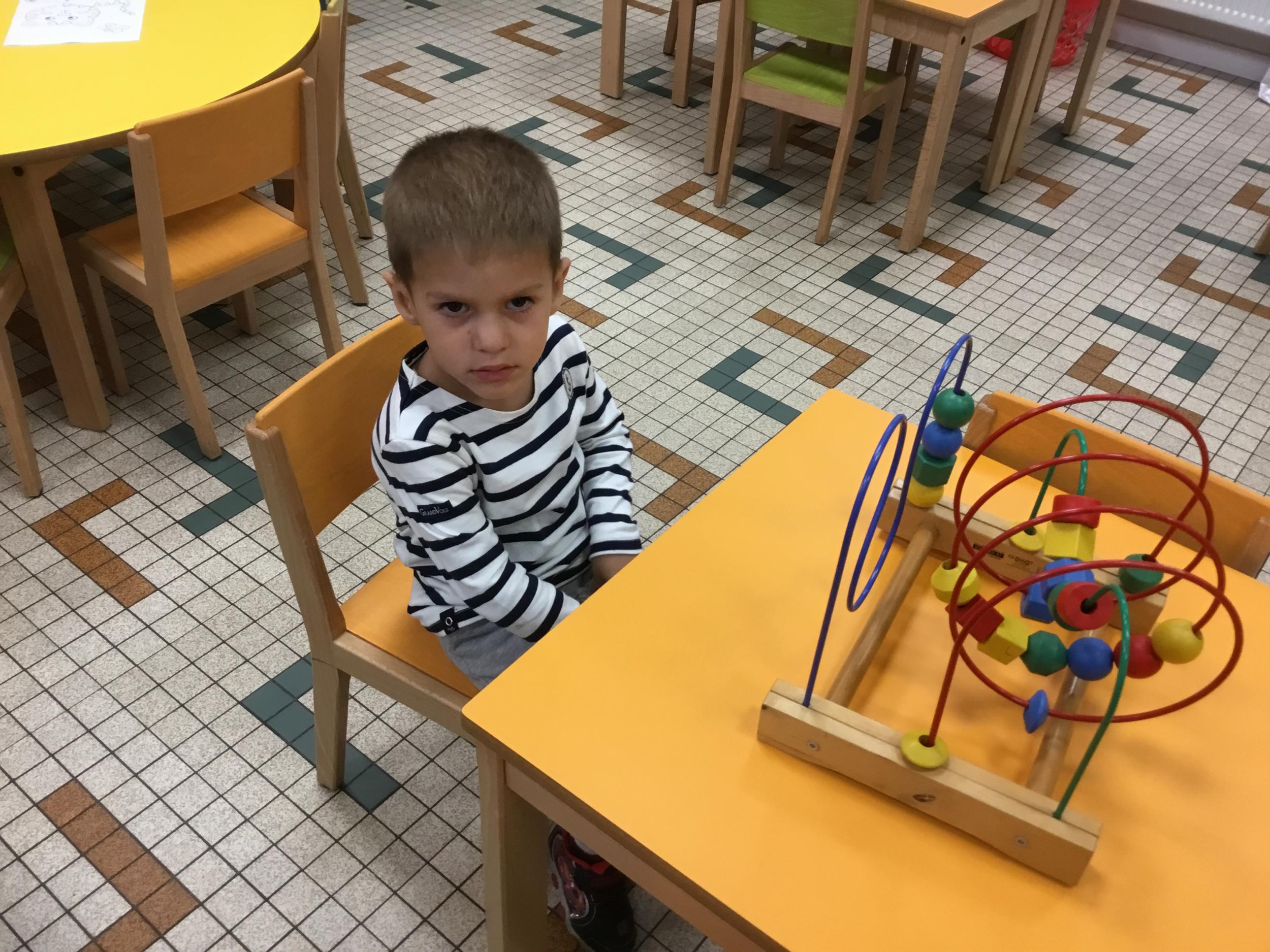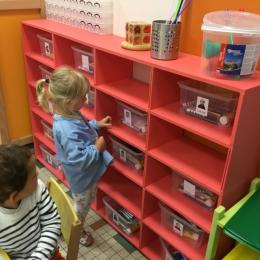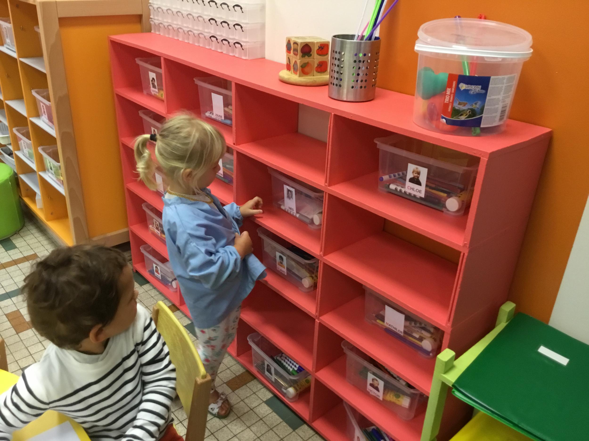 ils ont pu découvrir la classe et ses coins de jeux. Les étagères où se trouvent leur boîte individuelle de matériel.