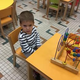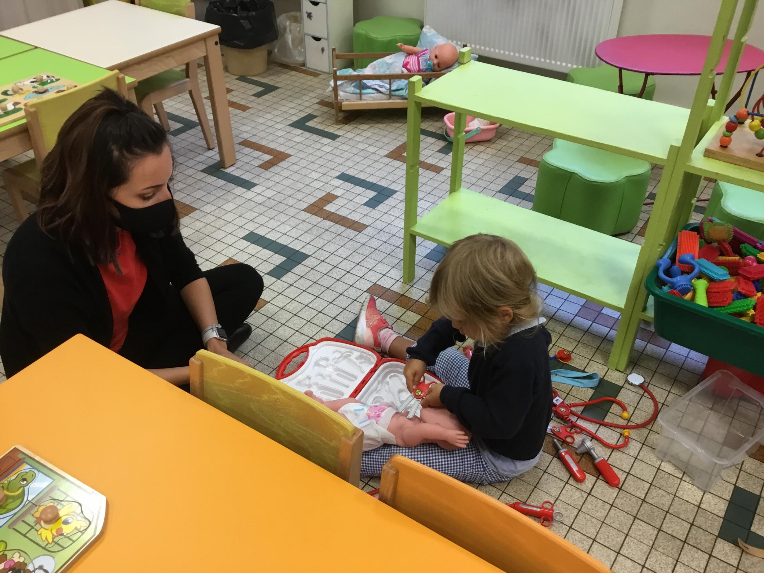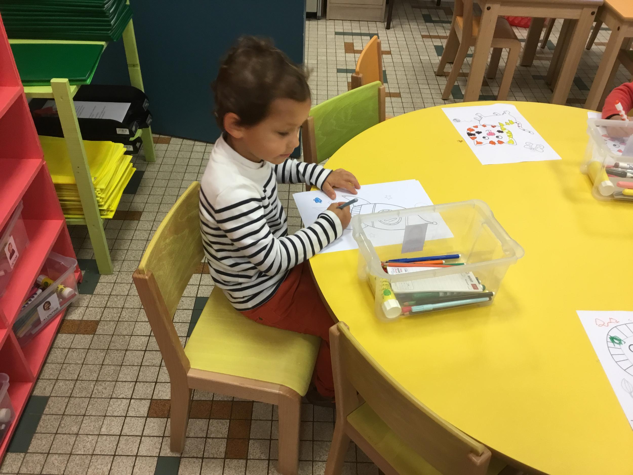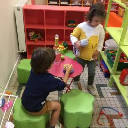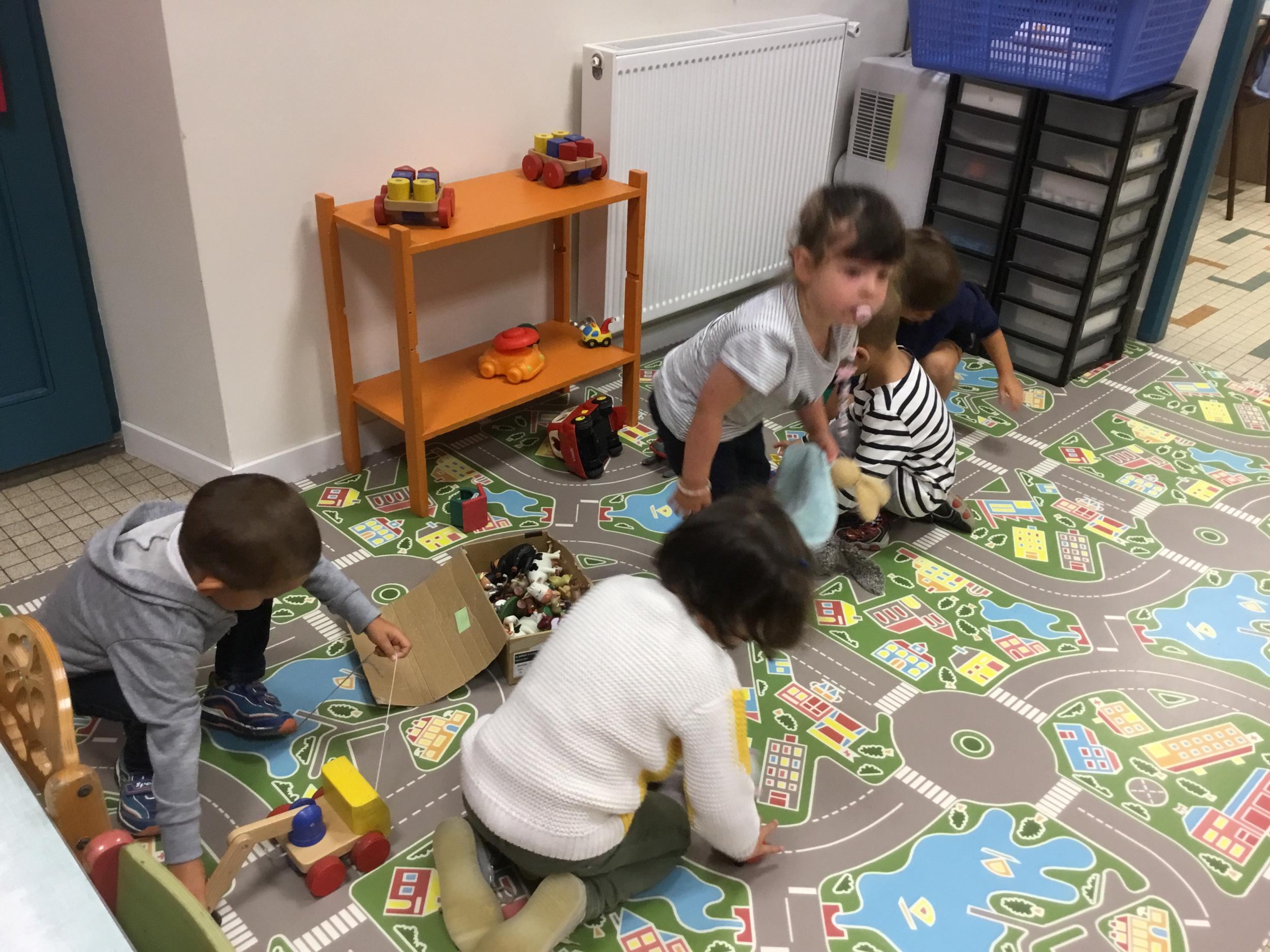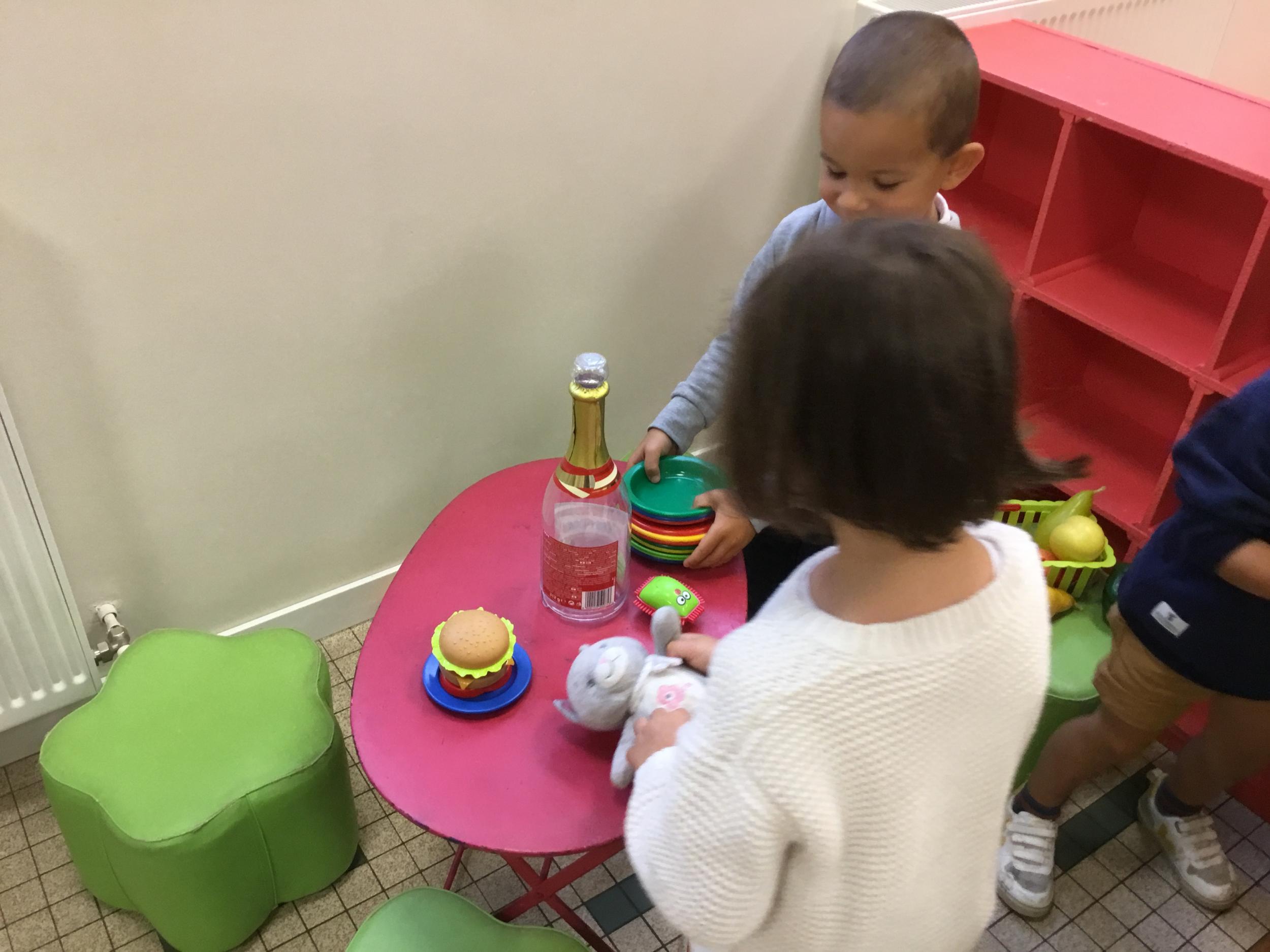 ils ont pu découvrir la classe et ses coins de jeux. Les étagères où se trouvent leur boîte individuelle de matériel.