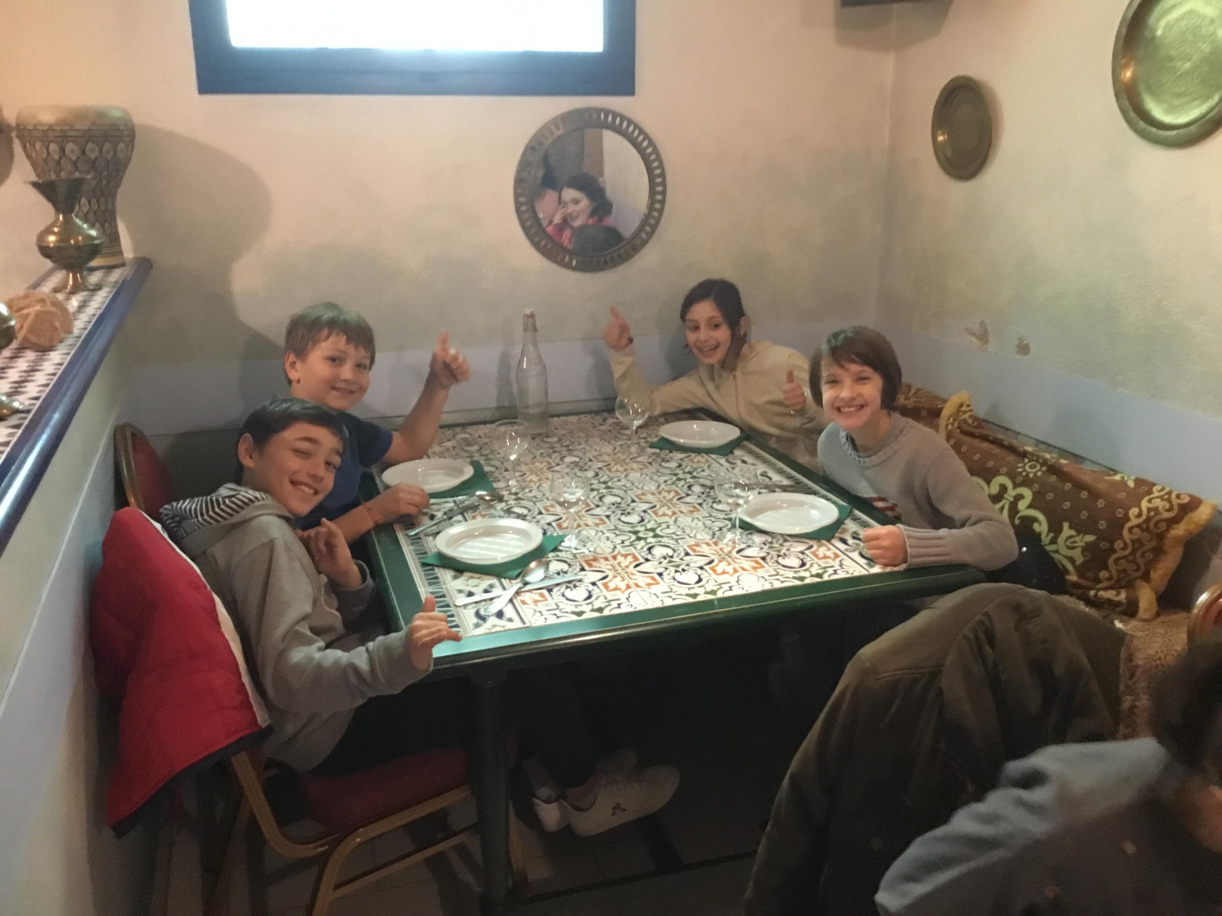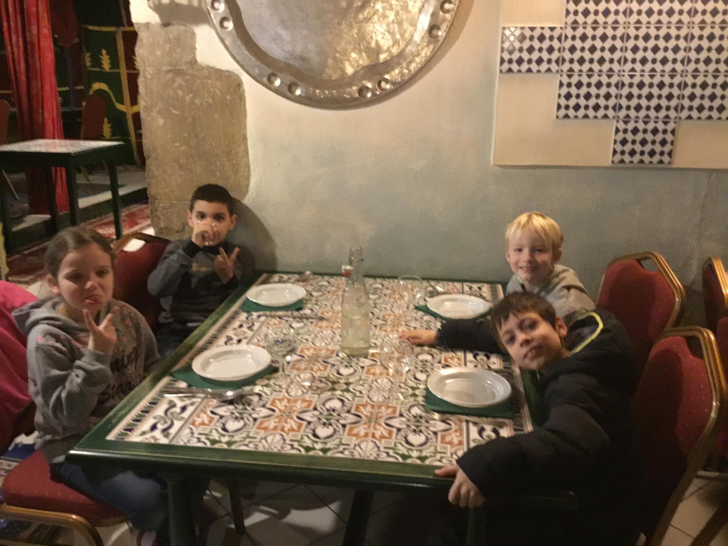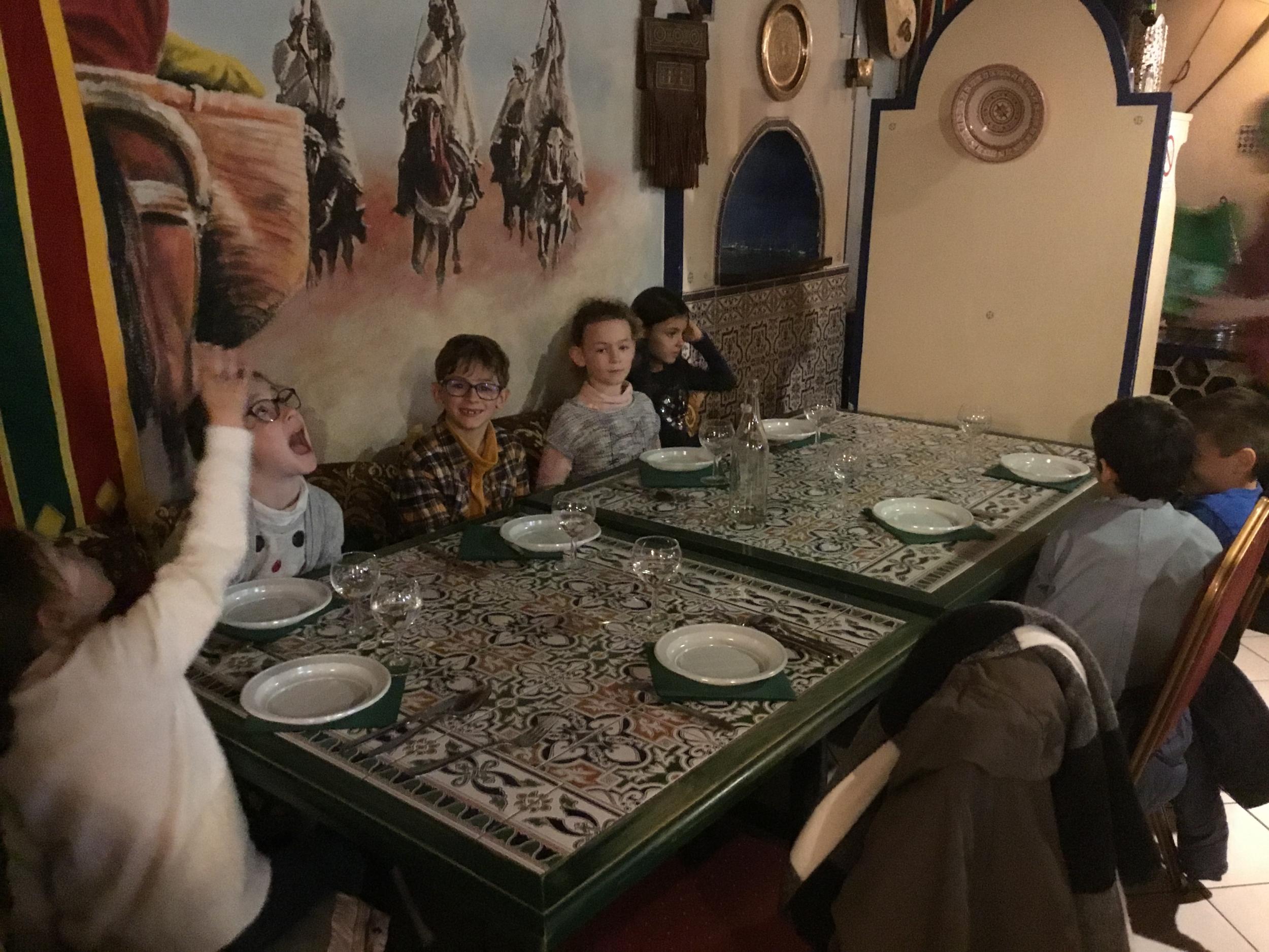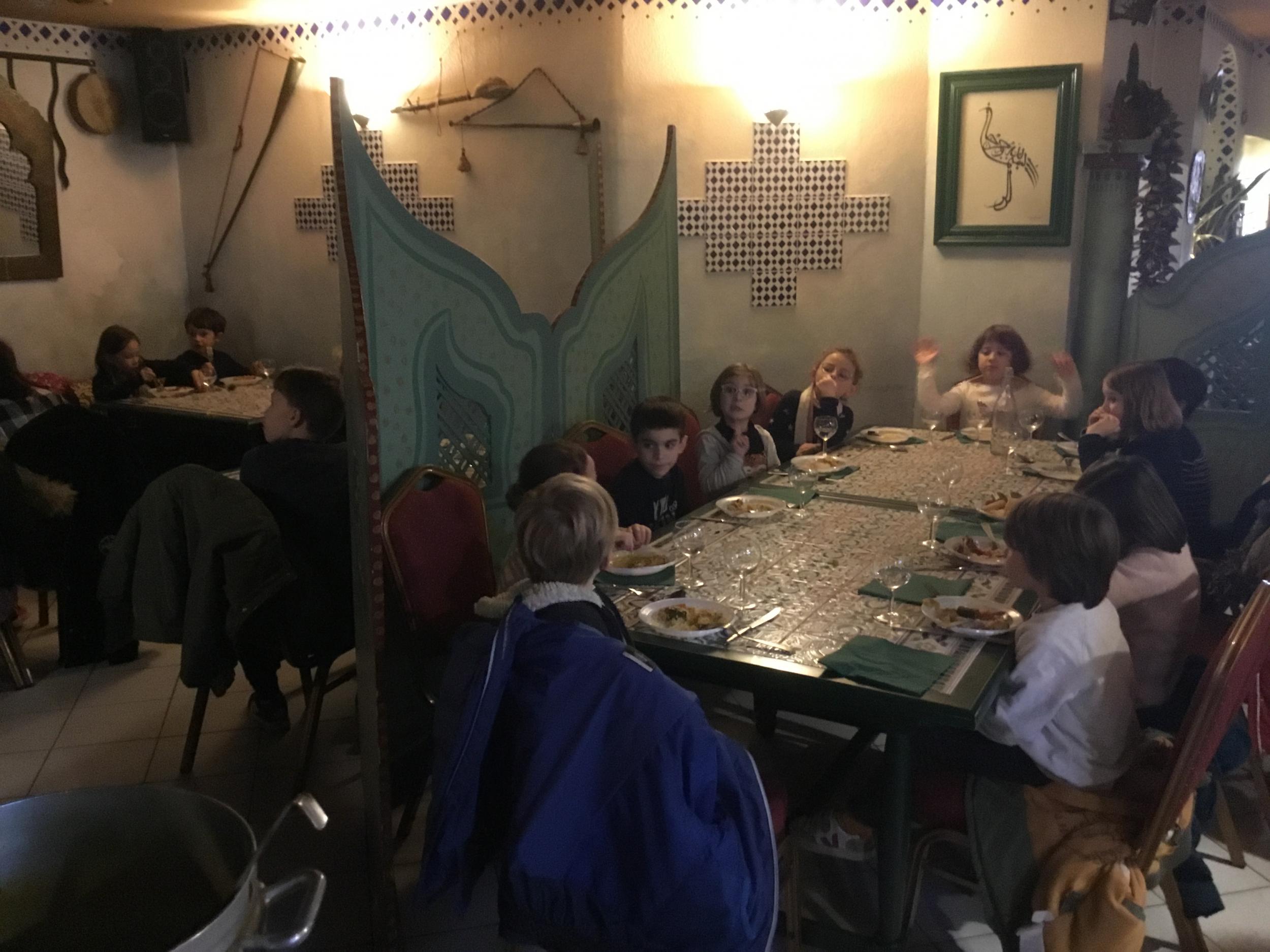 Vendredi 28 février, le collège DeLa Salle fêtait ses 250 ans et ne pouvait pas accueillir nos élèves pour le déjeuner de midi. Avec la complicité du Marrakech, nous avons organisé un repas surprise au restaurant pour les élèves du primaire, déjeunant ce jour là à la cantine. Repas tenu secret, le nombre de places au restaurant étant limité ! Les petits, quant à eux, ont bénéficié d’un délicieux couscous au poulet servi à L’ECOLE par le restaurant. Un grand MERCI au restaurant Le Marrakech .Un grand Merci, également, aux enseignants qui ont encadré et servi les élèves, le Marrakech n’ayant pas le personnel pour recevoir et servir 80 personnes en même temps .....