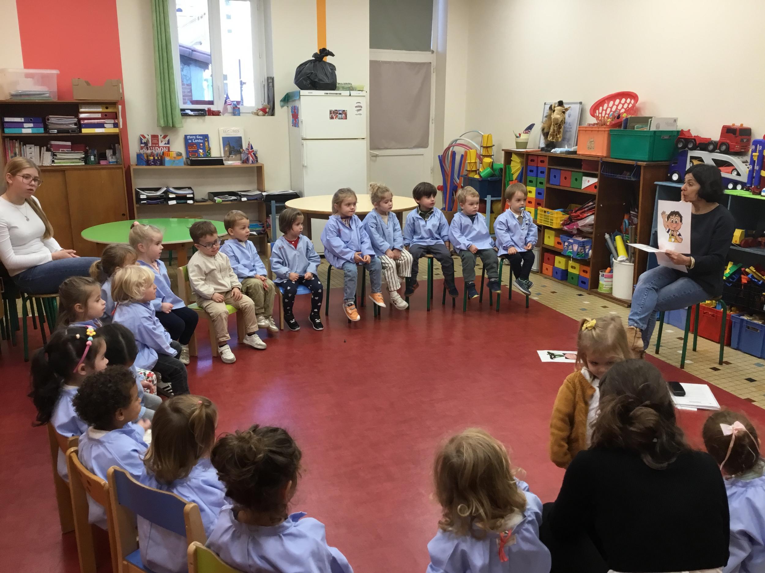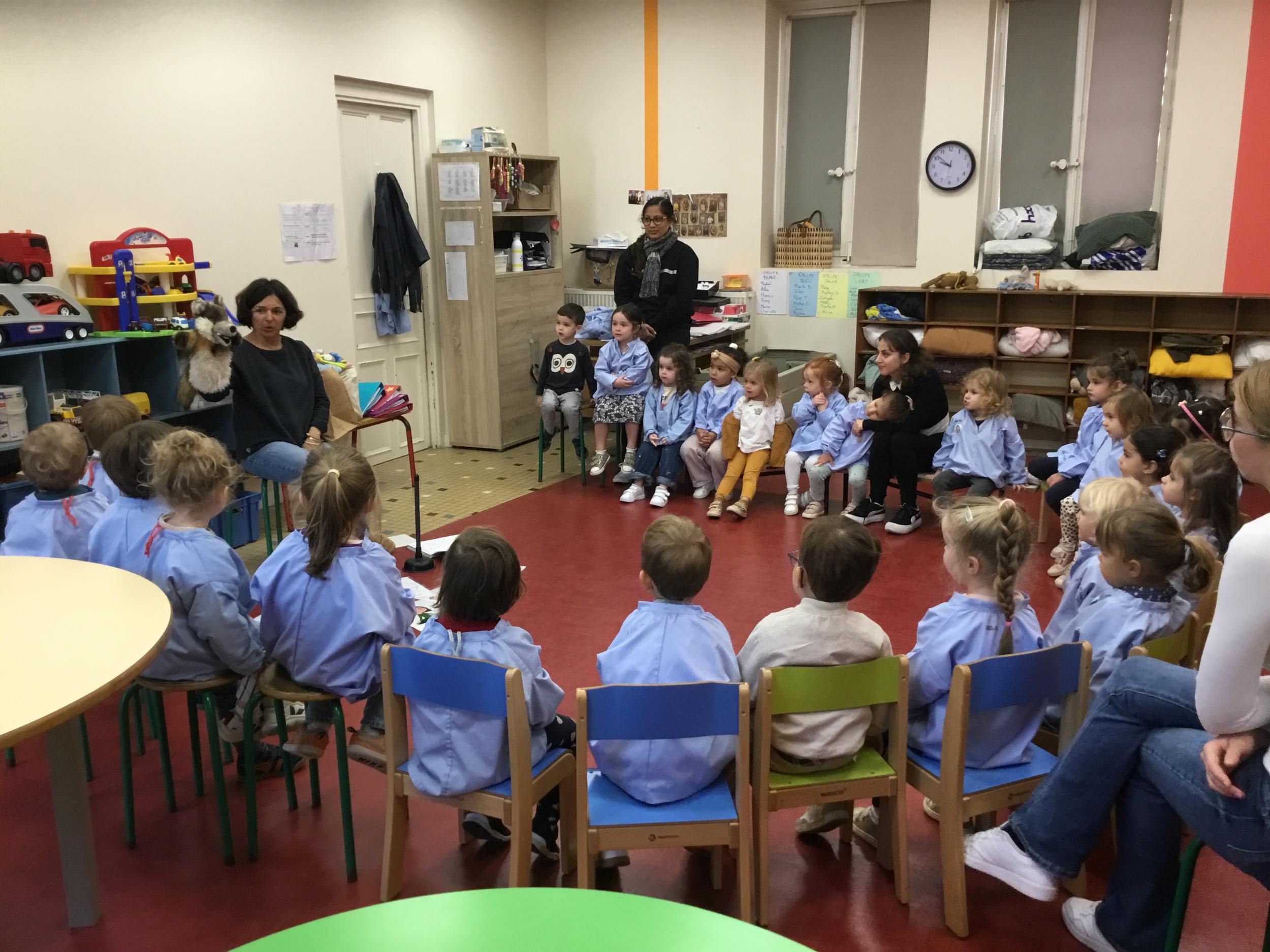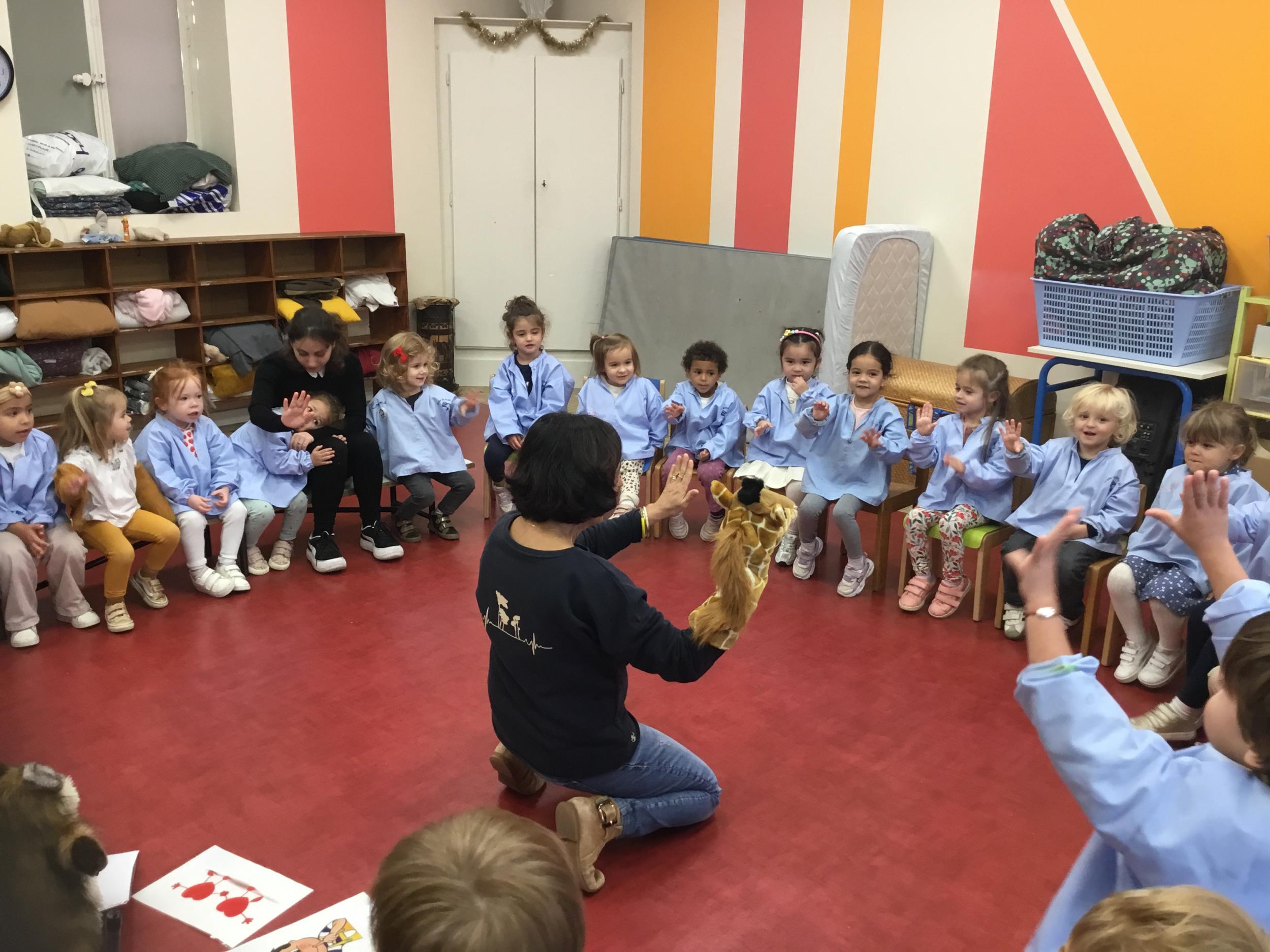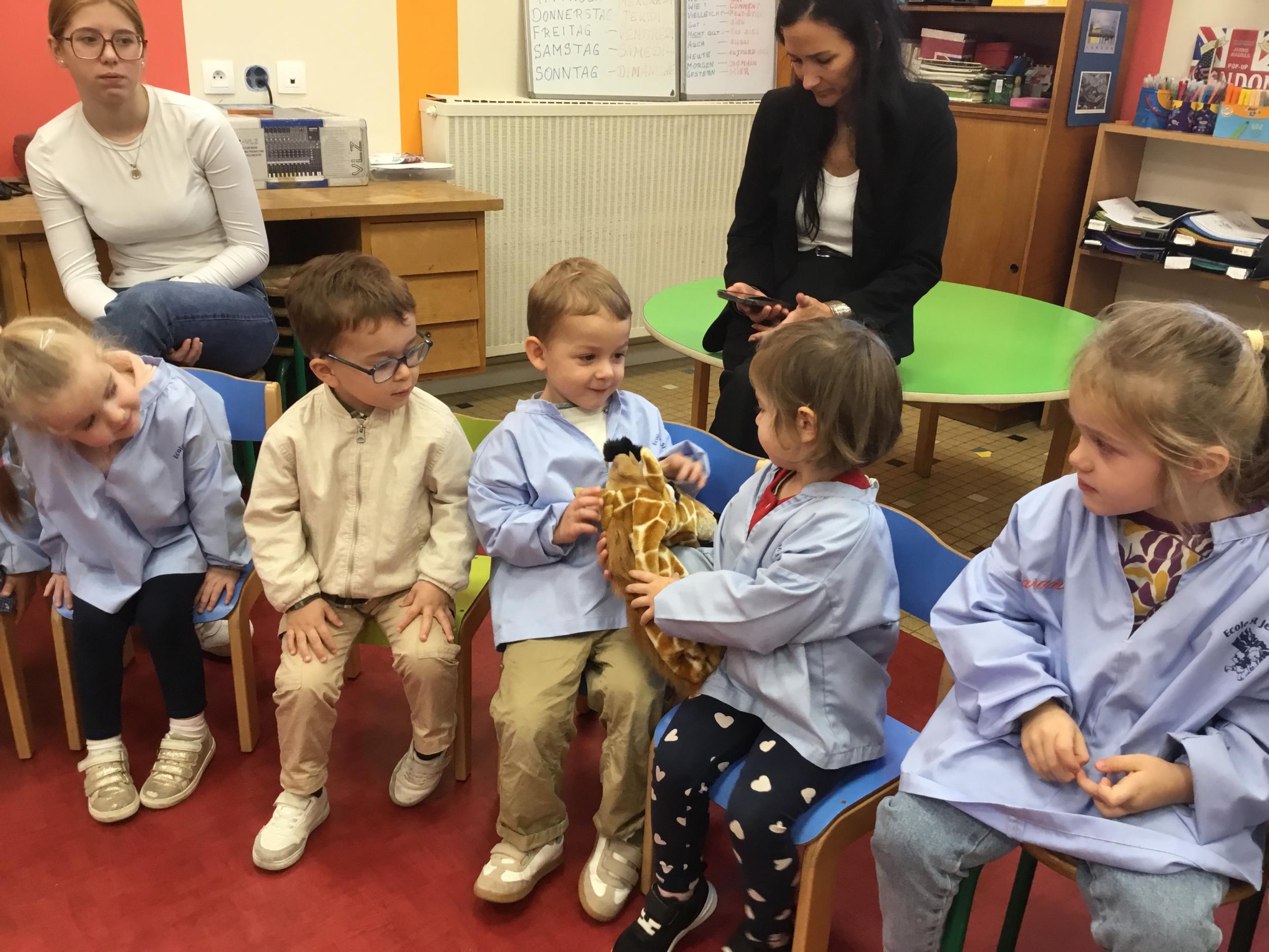 Nous avons découvert l’atelier de Gigi et Loulou…. Ses chants, ses règles, et le sens de cet atelier. Avec Gigi et Loulou les élèves vont repérer des émotions en fonction des situations jouées, vont pouvoir peut être s’identifier, et à leur tour s’exprimer. Tous ont souhaité toucher , tenir dans leur mains Gigi comme Loulou. Nous avons essayé de nous les faire passer doucement en se regardant dans les yeux .