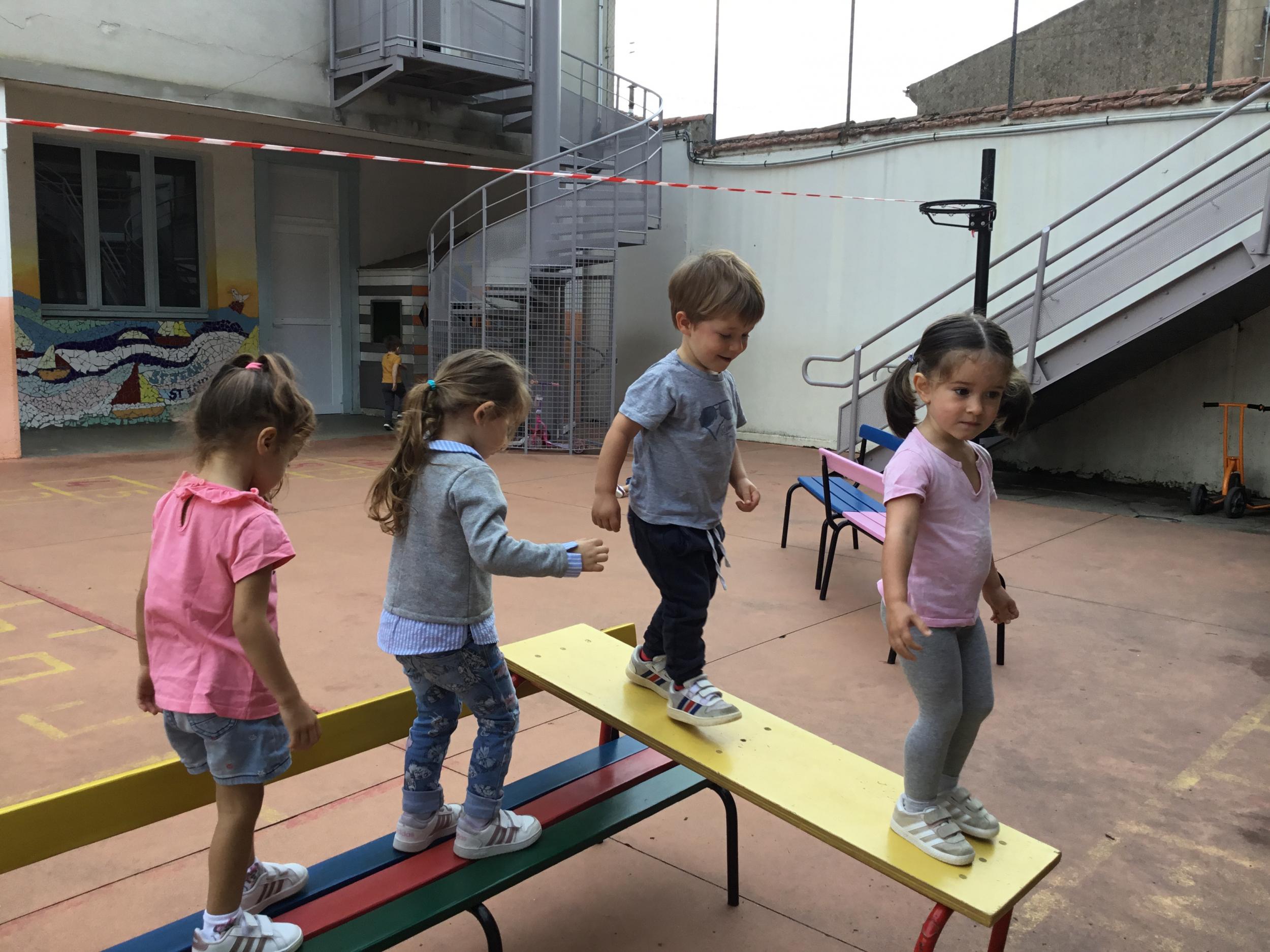 Petite et moyenne section 09/09/2021 Ramper, sauter, marcher en équilibre, prendre des risques mesurés... Les élèves ont adoré😁