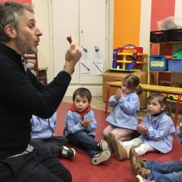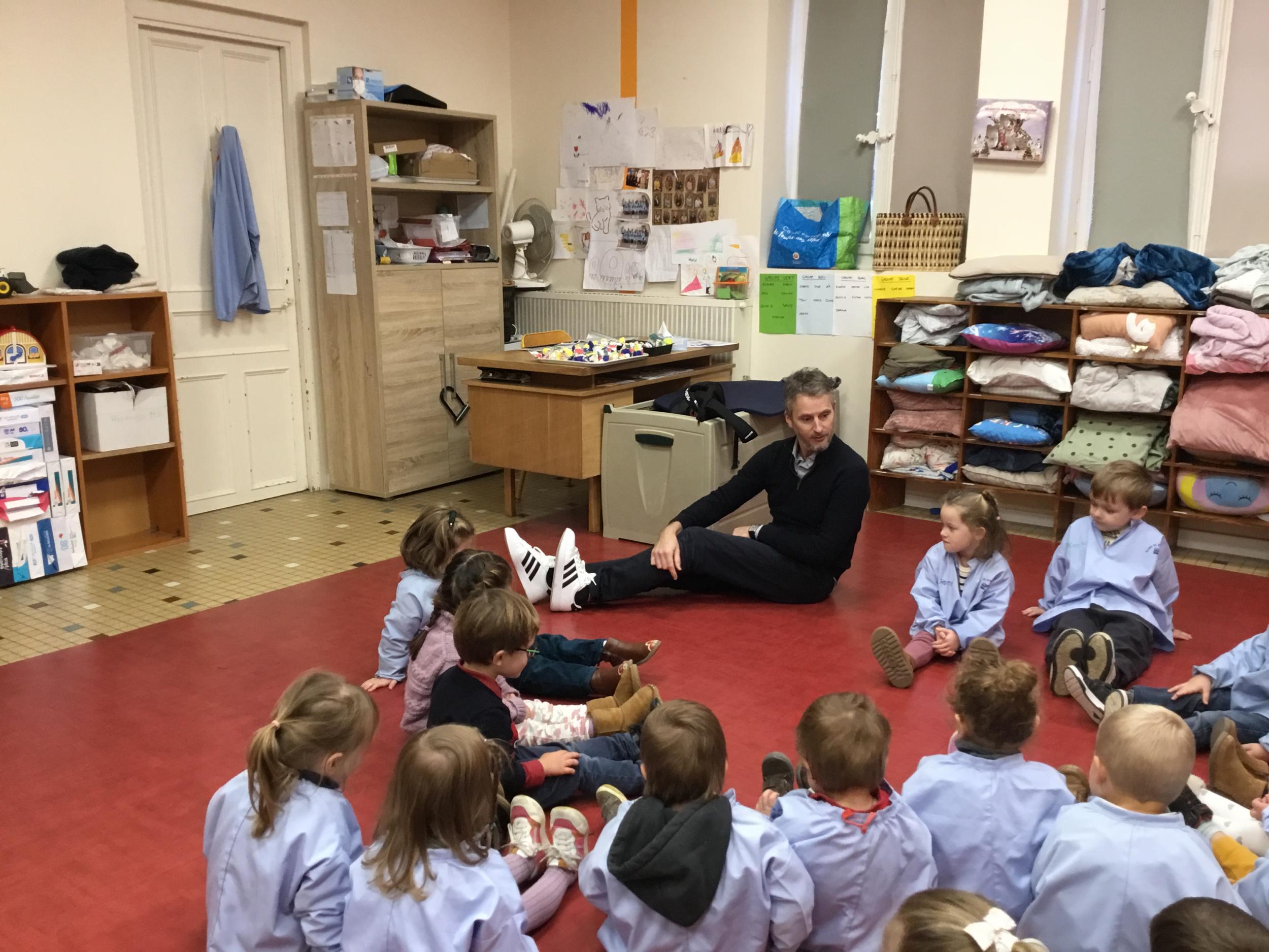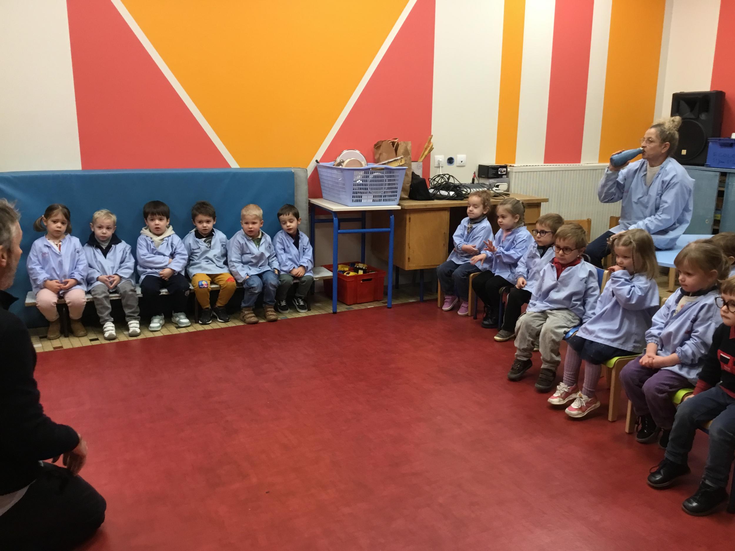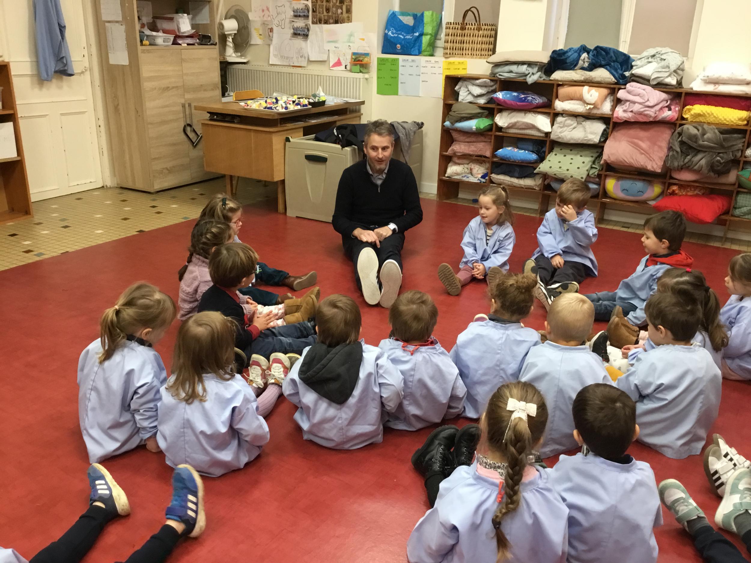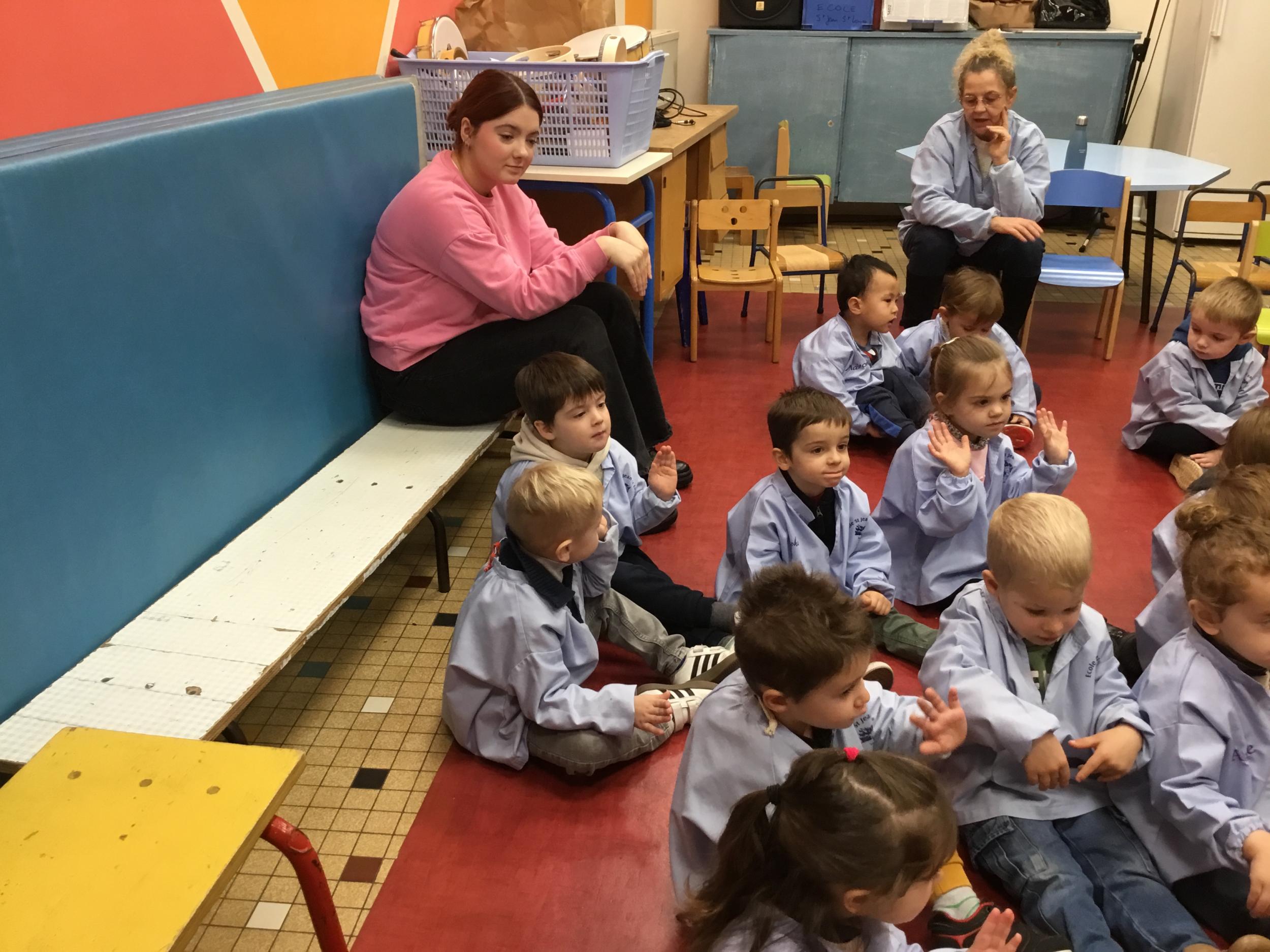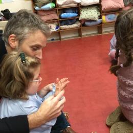 Aujourd’hui Aymeric est venu dans notre classe pour nous apprendre à nous poser, nous concentrer. Il nous a montré comment fait le canard avec ses pattes, un exercice de coordination pas facile quand on a 3 ans !!!! Et cela demande beaucoup de concentration … Voyant que c’était encore un peu difficile , nous avons tenté le même exercice avec les mains … encore un peu dur … alors on a simplifié encore … les mains en haut , puis les deux en bas … 🙏