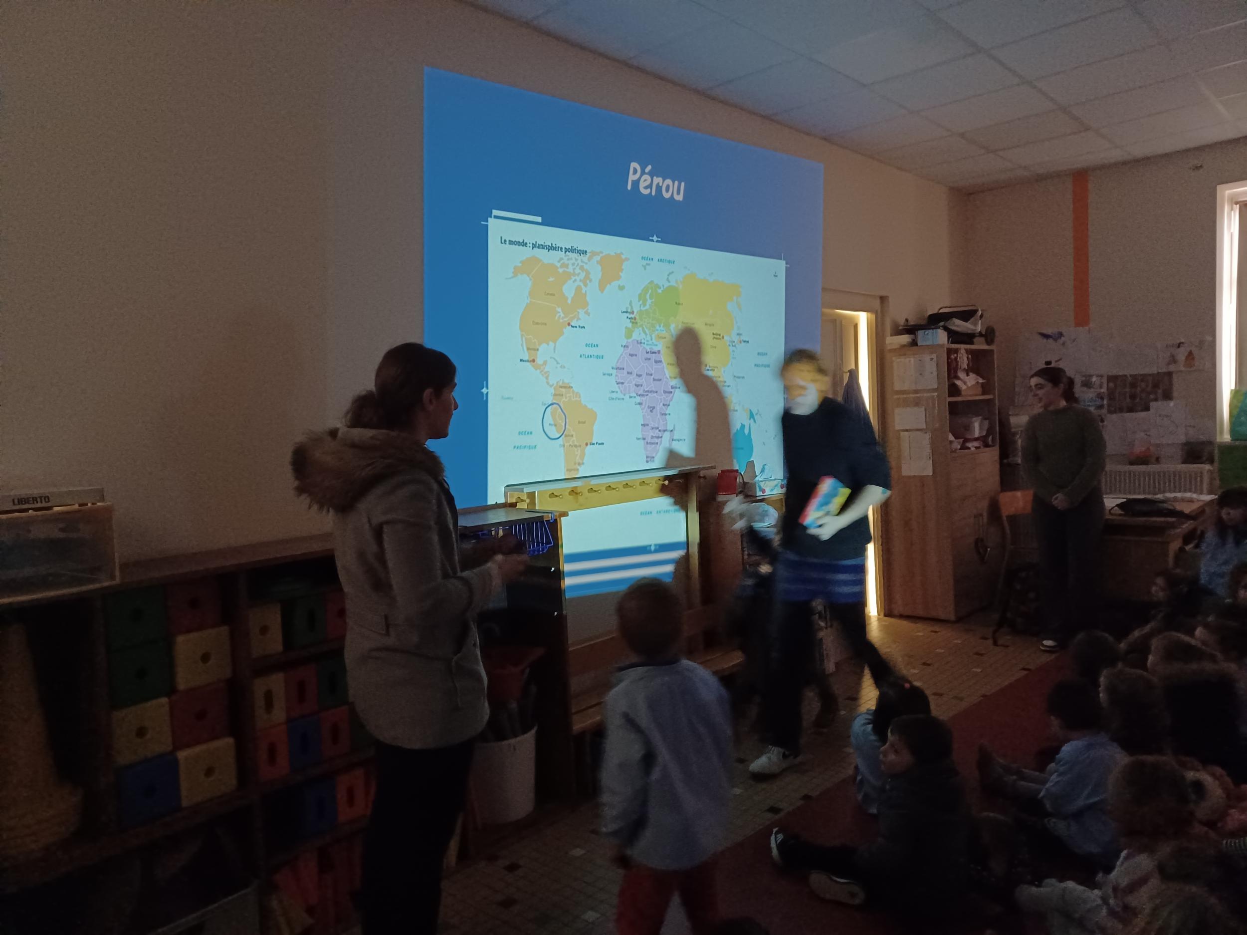 Nous sommes partis en Roumanie grâce à la maman de Victor (MS), au Portugal grâce à la maman de Maria et Rosa (MS), à Madagascar grâce à la maman de Camille (CE2) et Uriel (GS), et au Pérou grâce à Mylène. Enfin nous avons découvert la danse Africaine et le Flamenco.