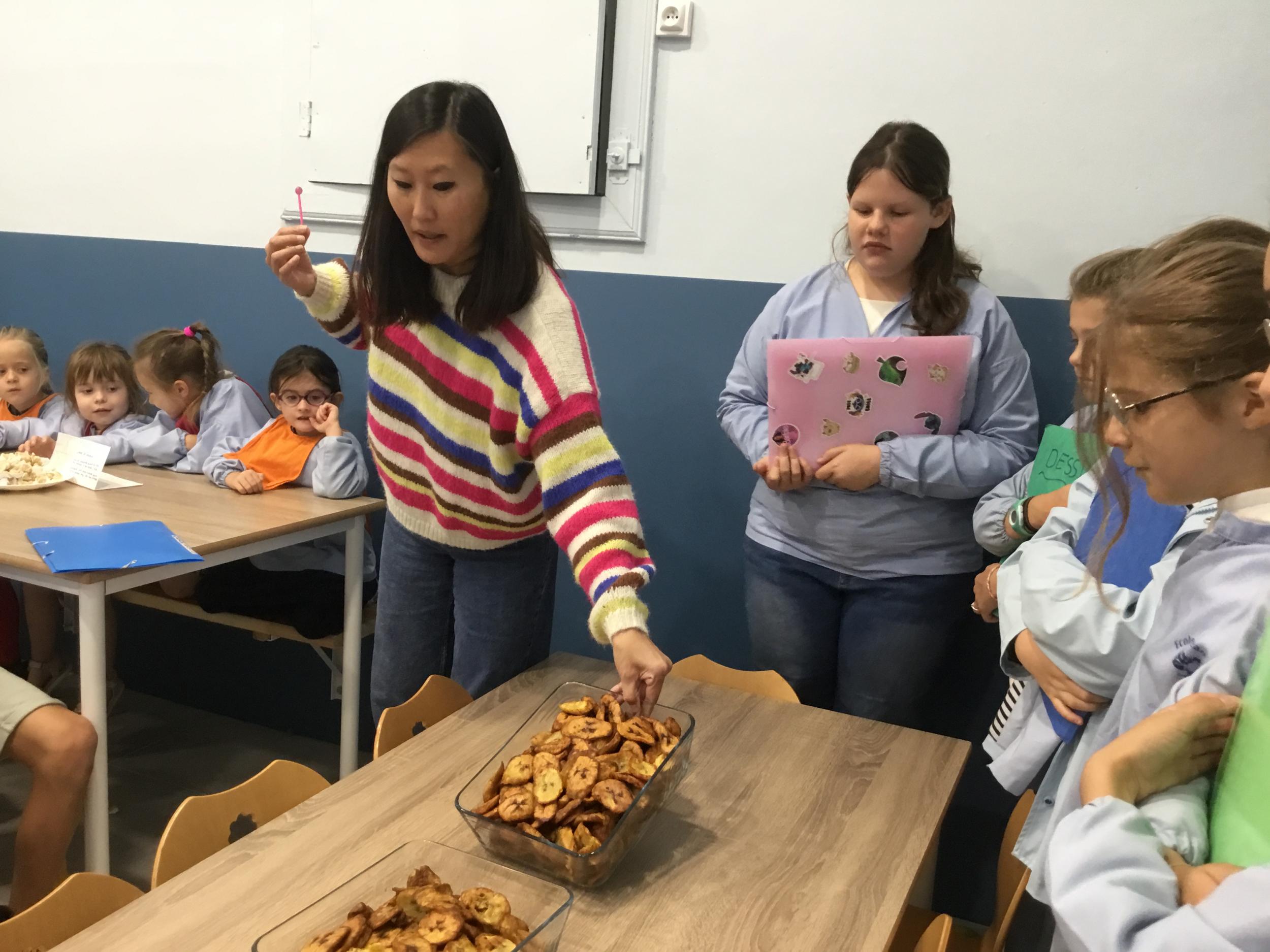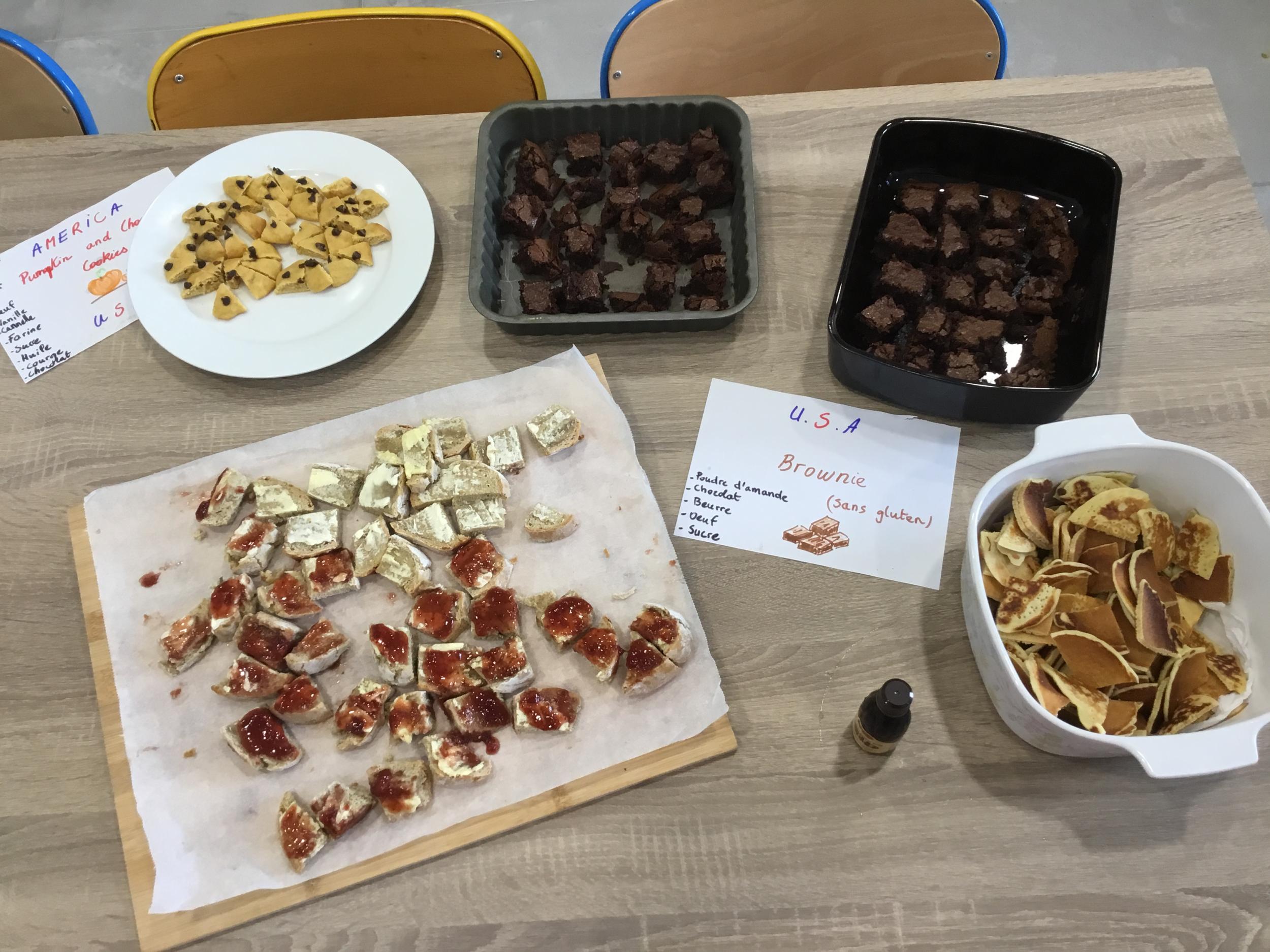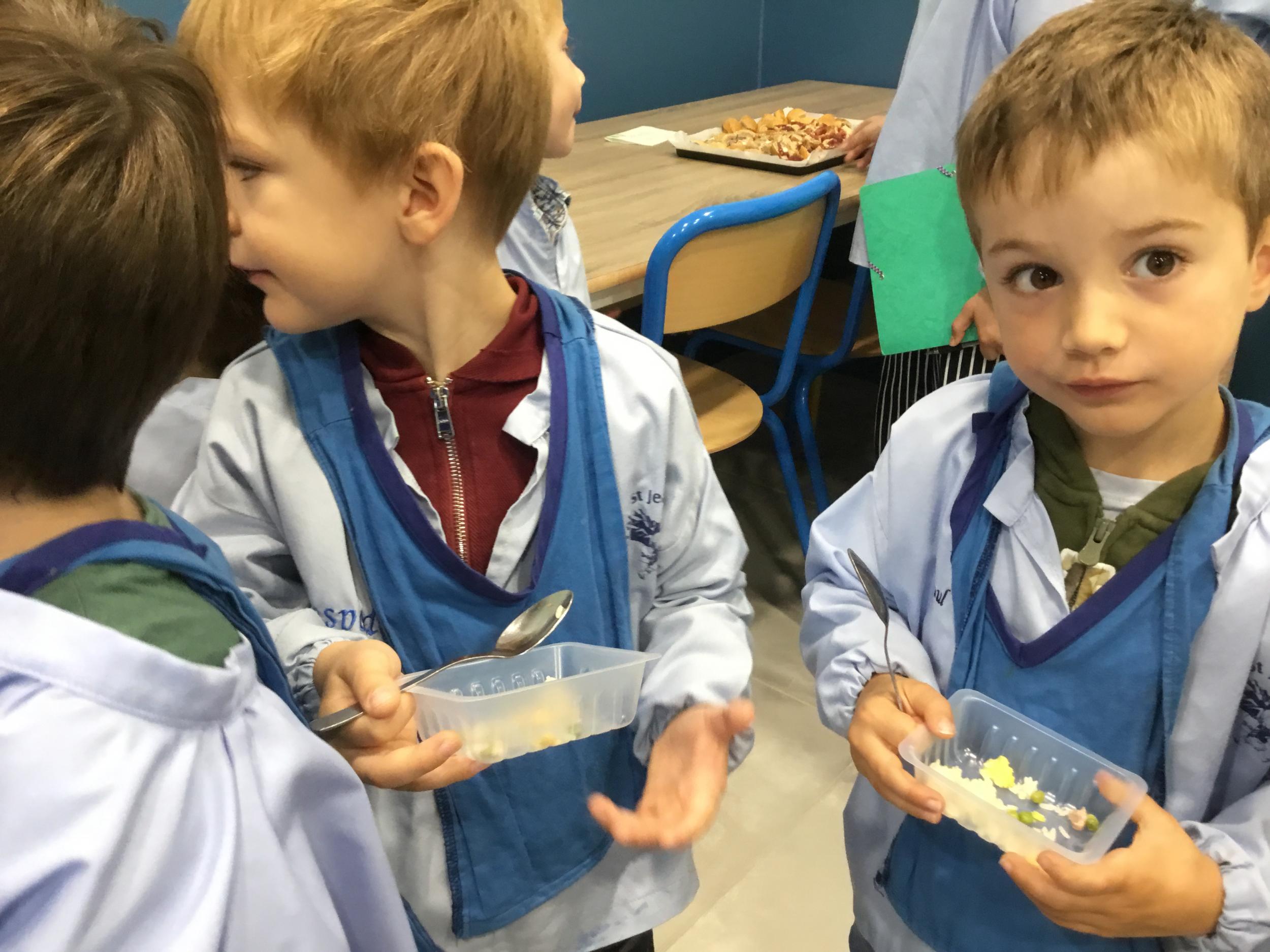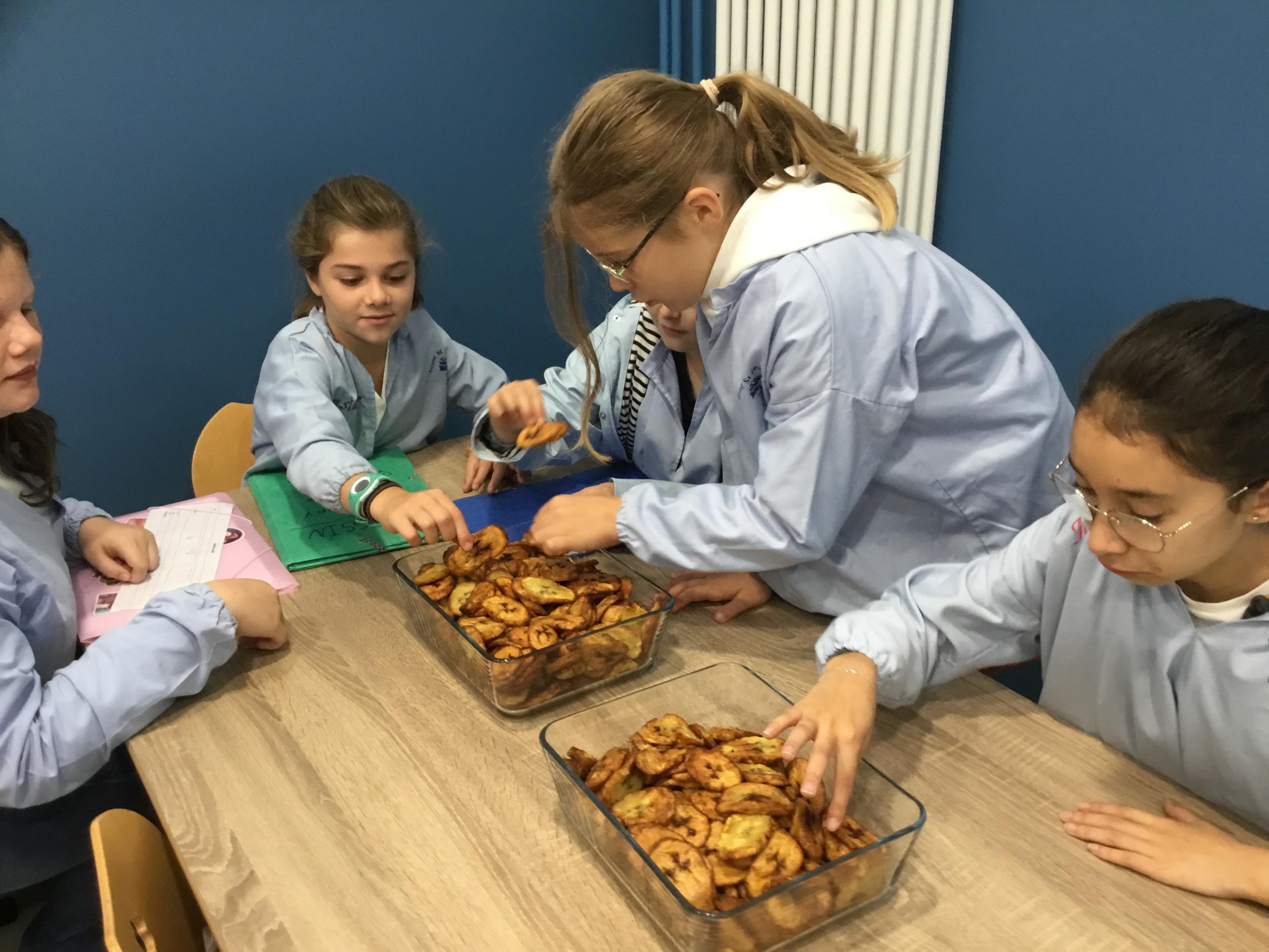 Si hier les Ps ont pu déguster des plats venus de Chine, du Maroc, de bonnes crêpes françaises, des bananes de Madagascar et bien d’autres choses encore … ils ont goûté cette après midi à d autres spécialités du monde …