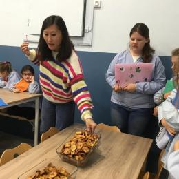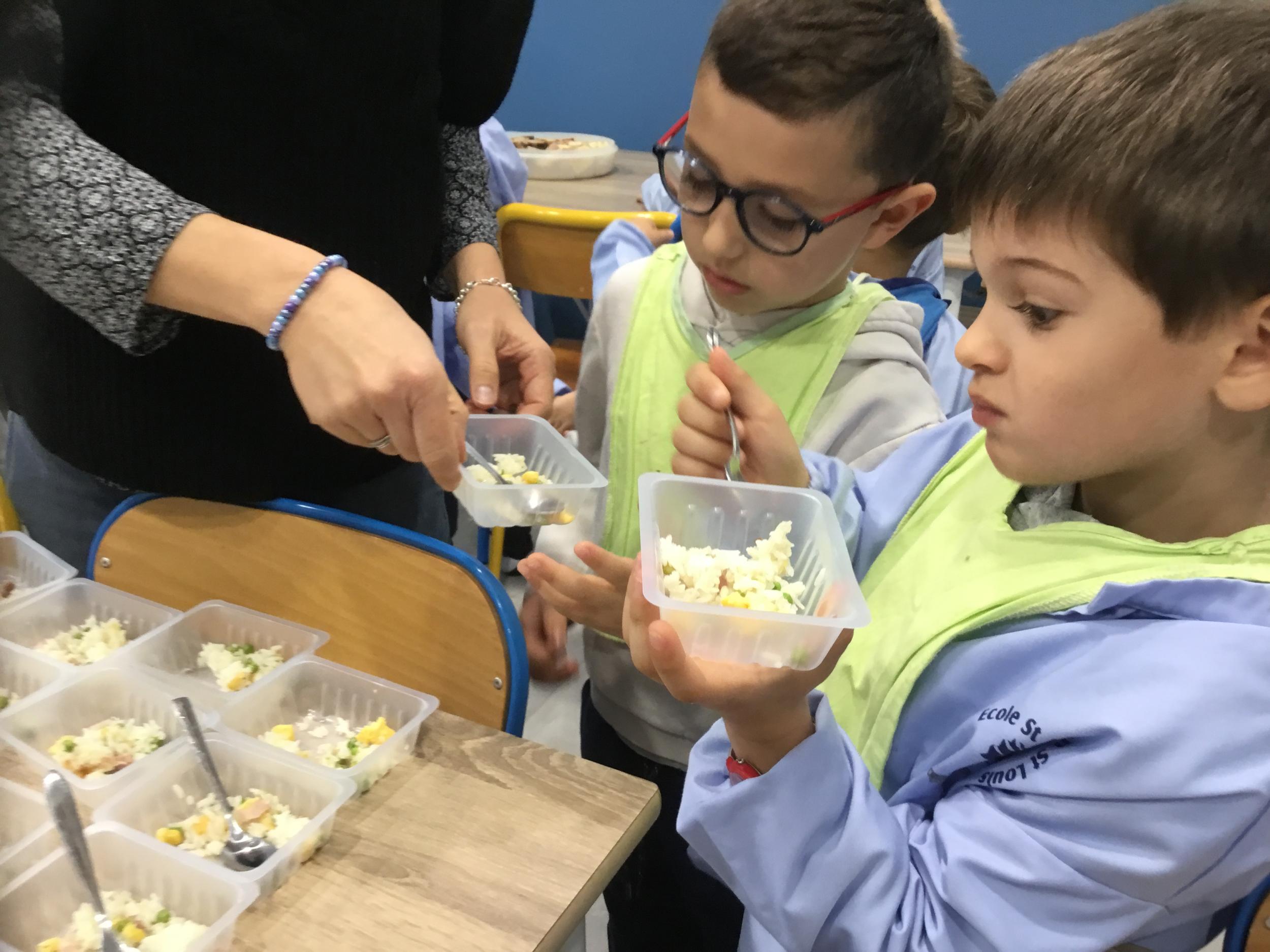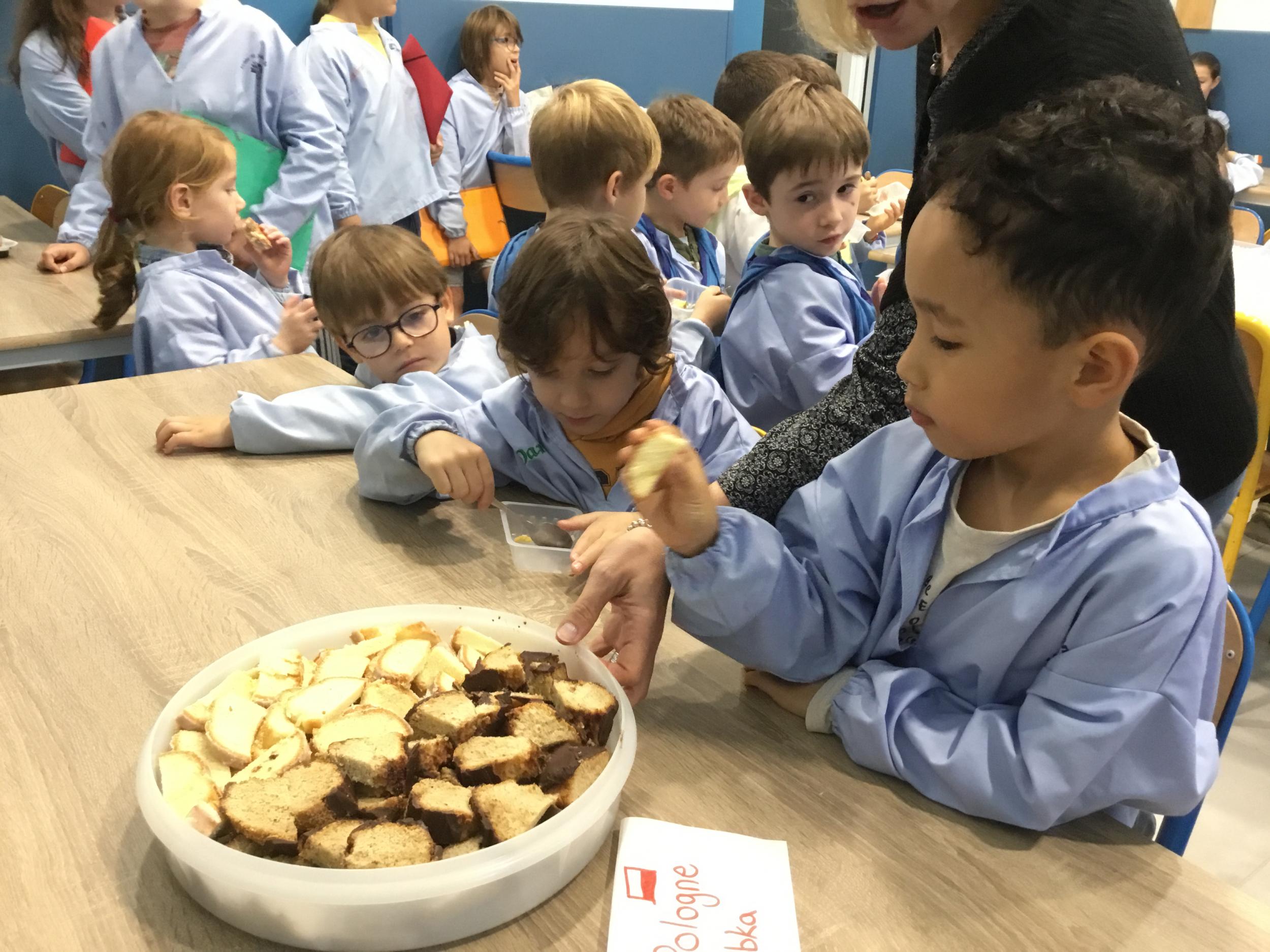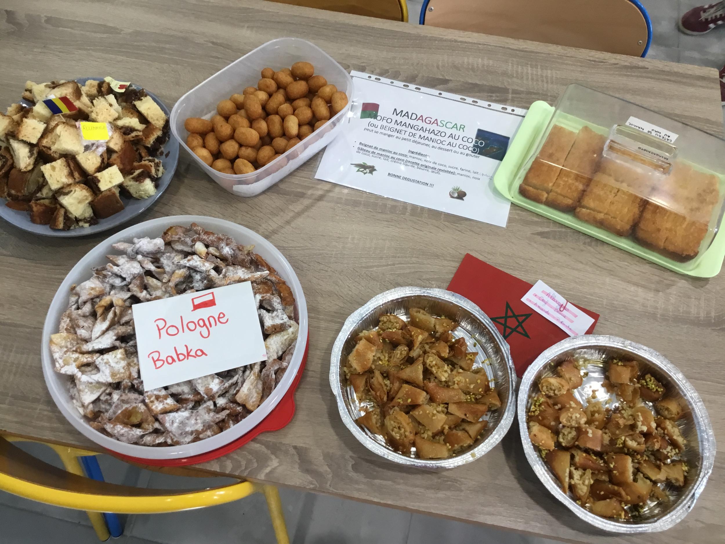 Si hier les Ps ont pu déguster des plats venus de Chine, du Maroc, de bonnes crêpes françaises, des bananes de Madagascar et bien d’autres choses encore … ils ont goûté cette après midi à d autres spécialités du monde …