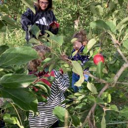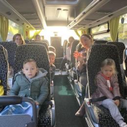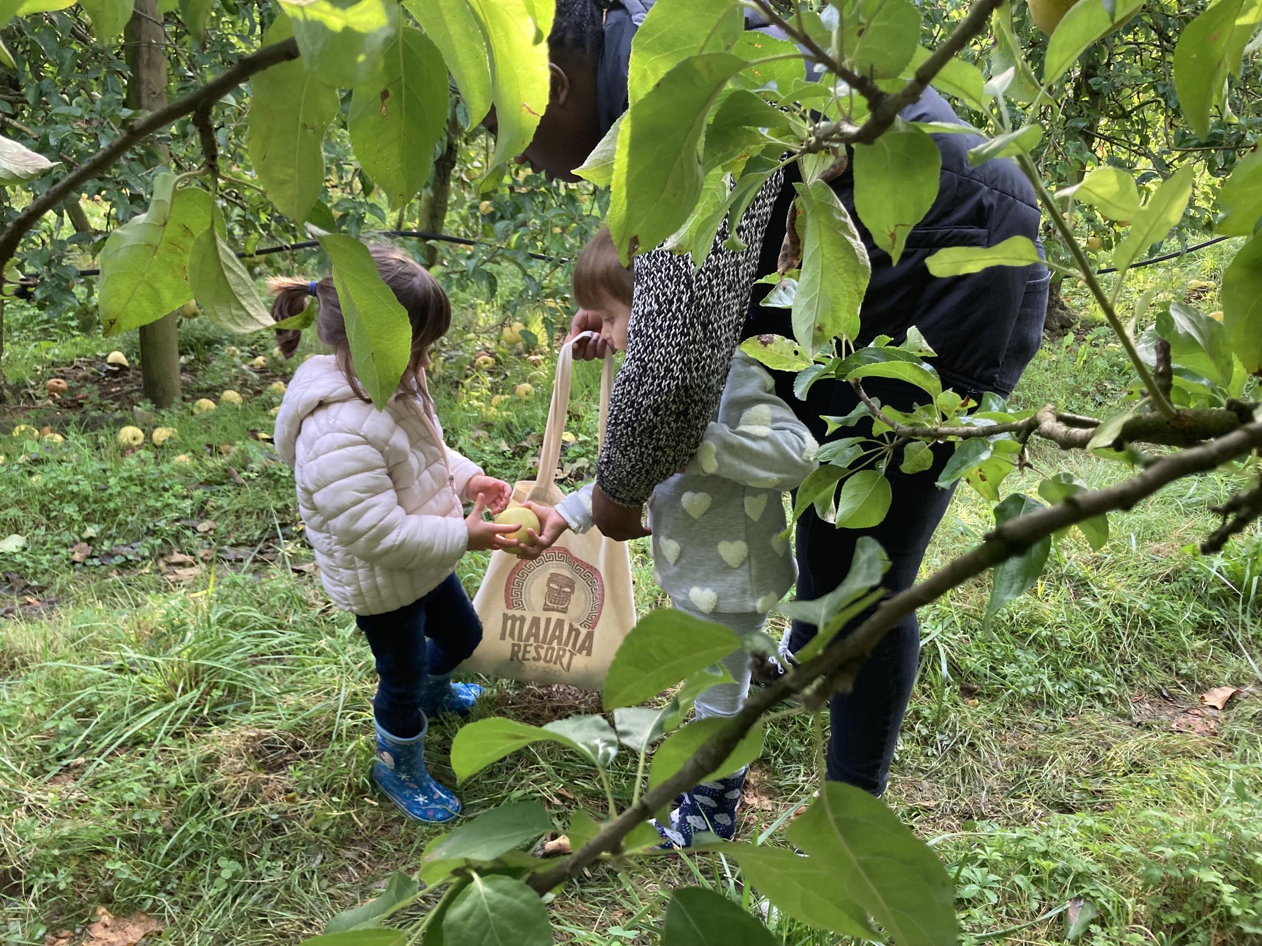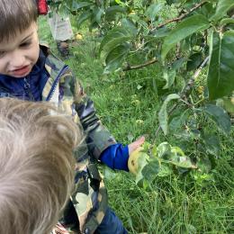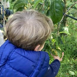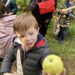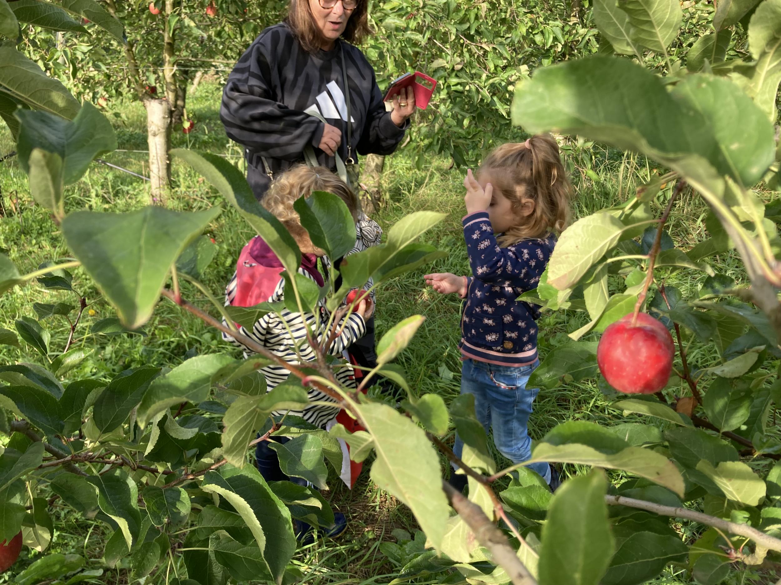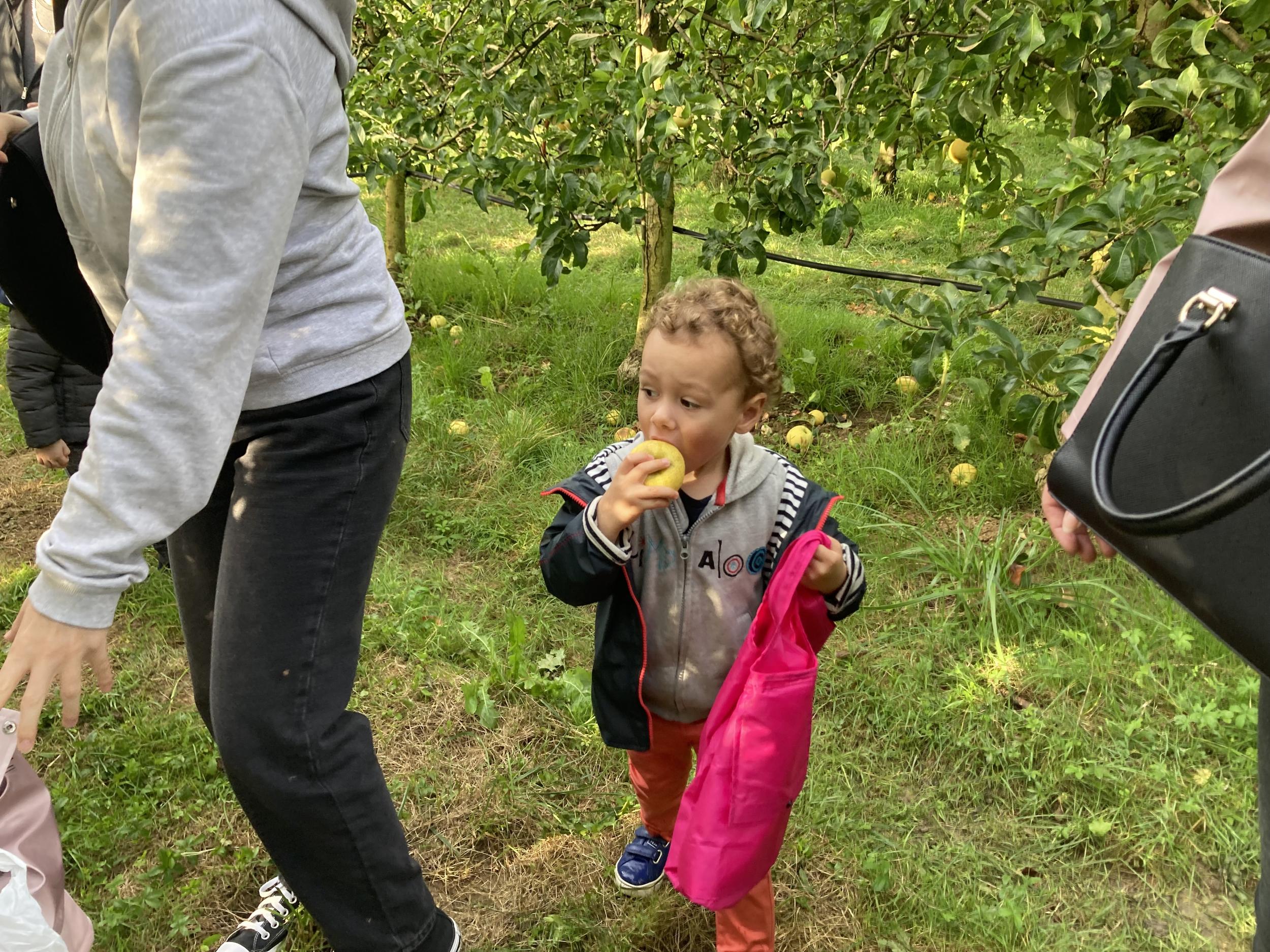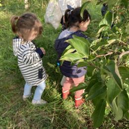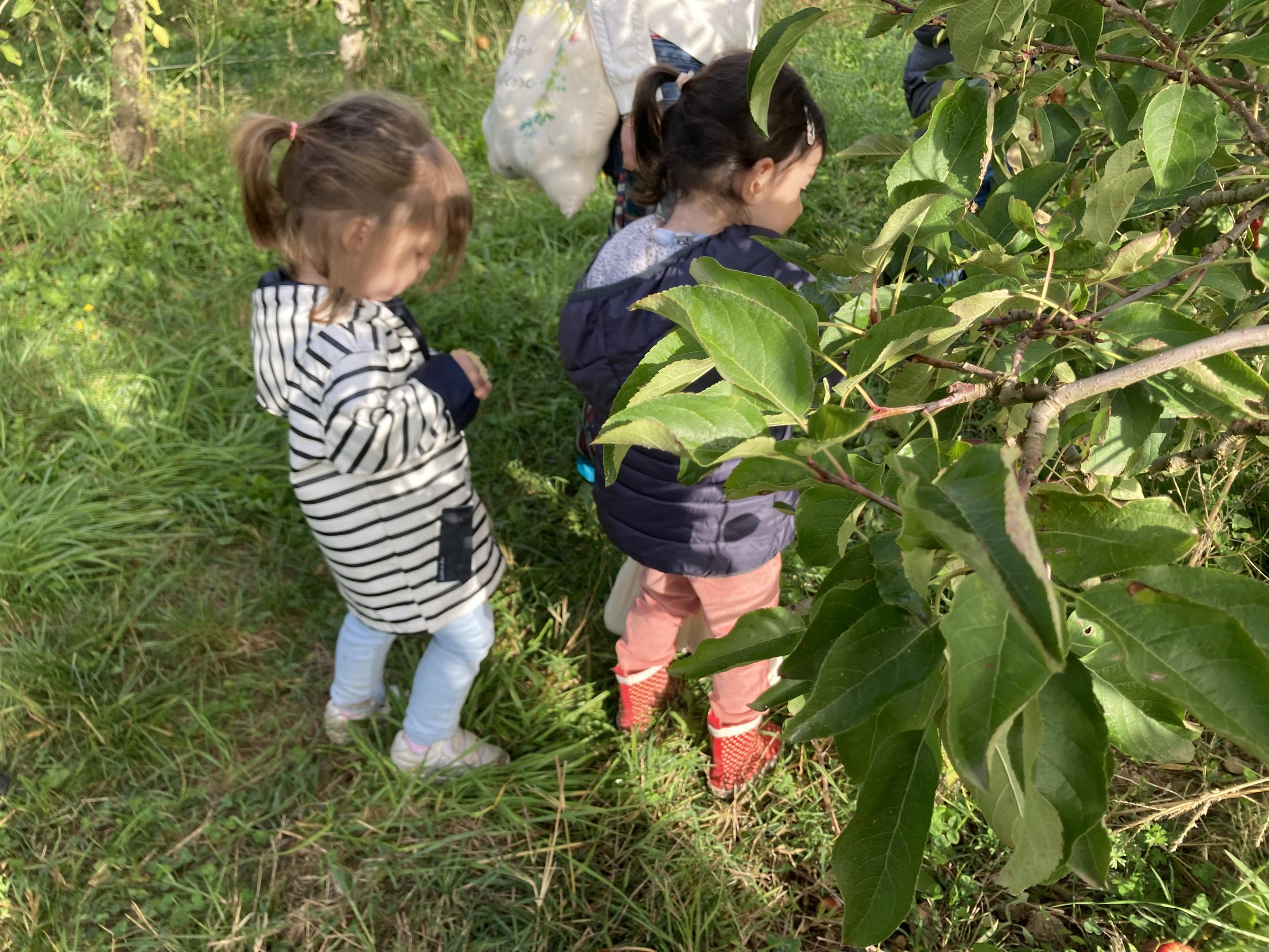Les PS, MS et GS ont pris le bus pour se rendre au verger de Montdragon . Nous avons fait une belle cueillette. Mais avant cela, avec les PS nous avions lu l’affiche …les élèves avaient fait des hypothèses à partir des photos et avaient donné du sens à cet écrit .Car lire : c’est faire des hypothèses de sens et le vérifier par le décodage .