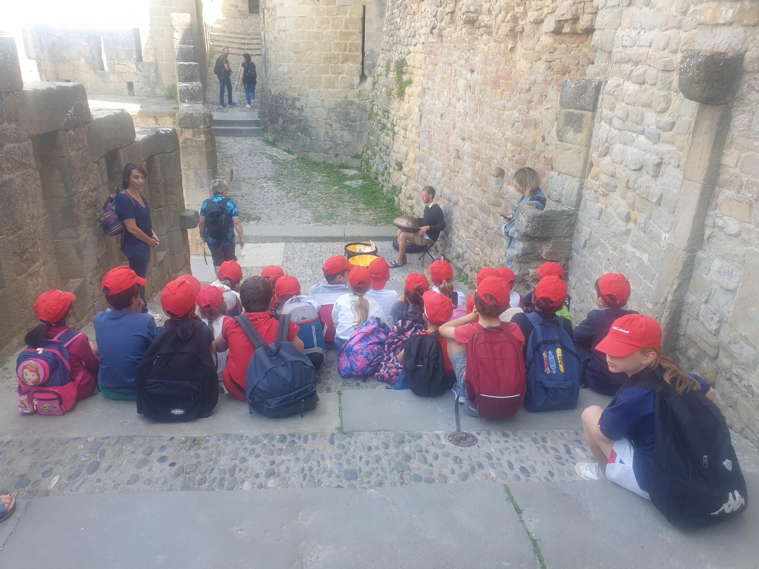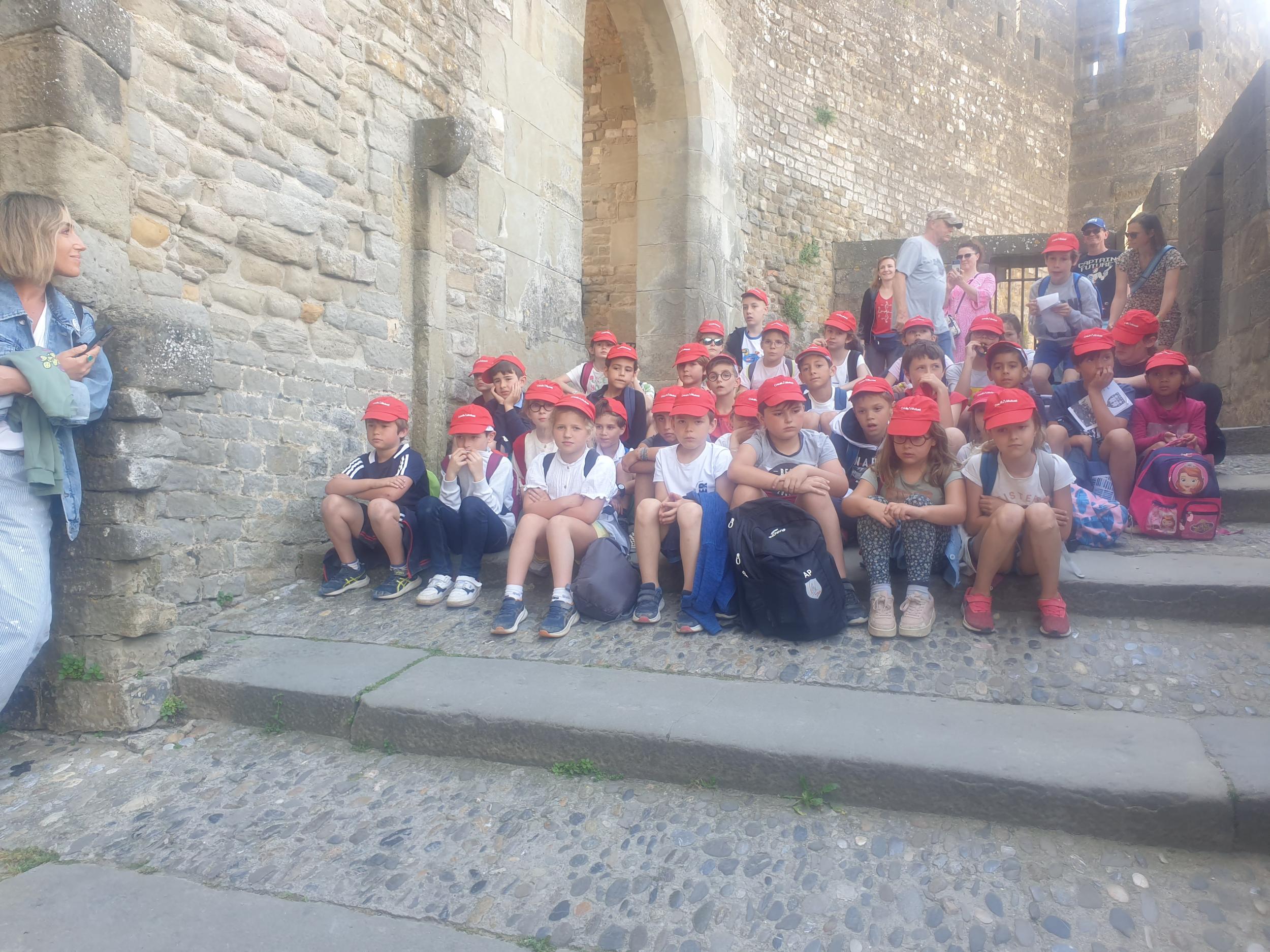 Mardi 4 juin, la classe de CE1 s'est rendue à Carcassonne avec la classe de CM1. Nous avons passé une excellente journée. Les enfants ont commencé par faire une visite virtuelle de la cité au temps du Moyen-Age, puis ils ont visité le camp médiéval. Là on leur a expliqué comment vivaient les Hommes au Moyen-Age, on leur a montré les vêtements qu'ils portaient, ce qu'ils mangeaient...Puis l'après-midi ils sont devenus chevaliers et chevaleresses et ont pu apprendre à "manier" l'épée.