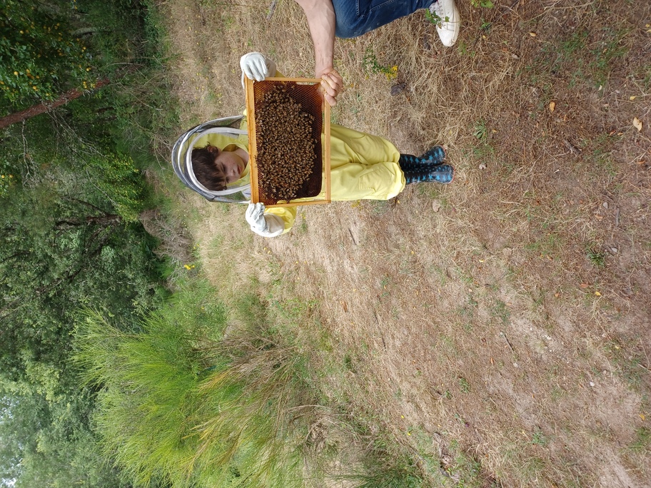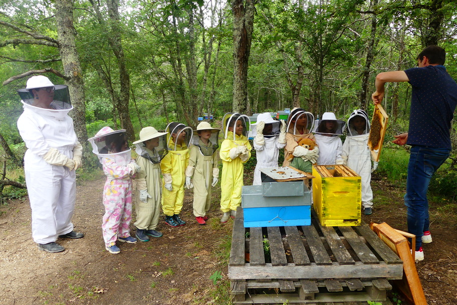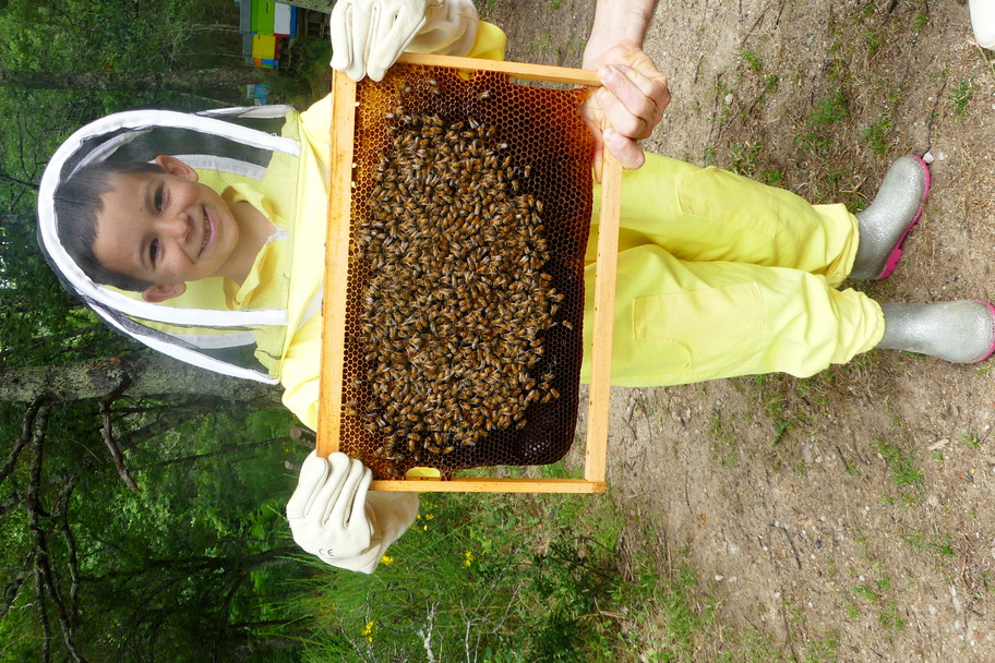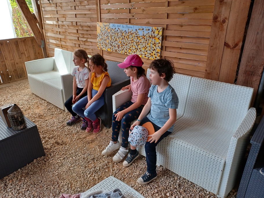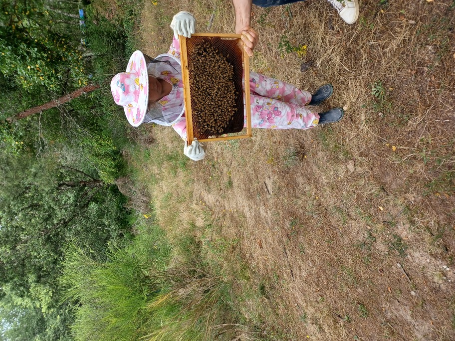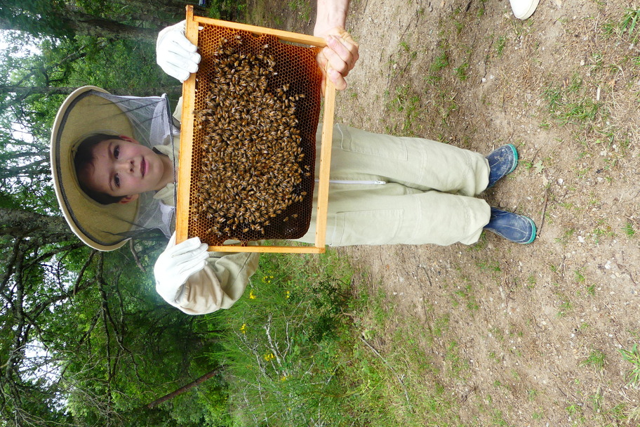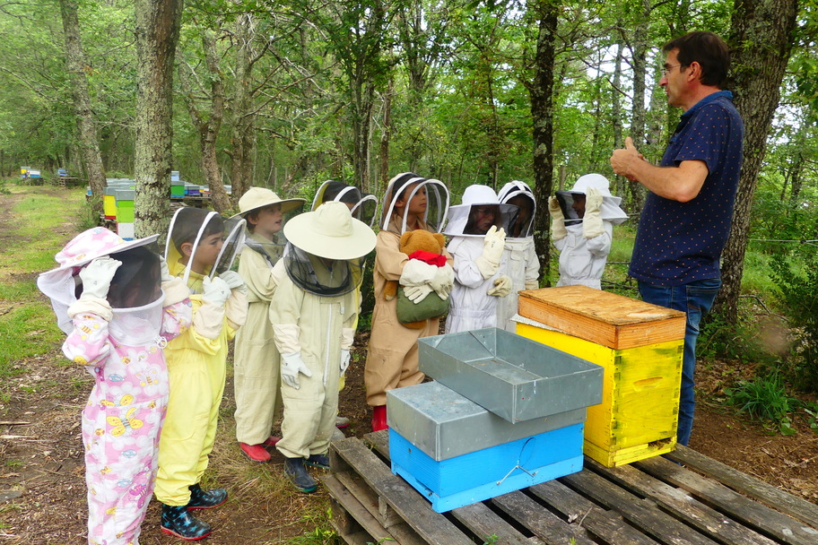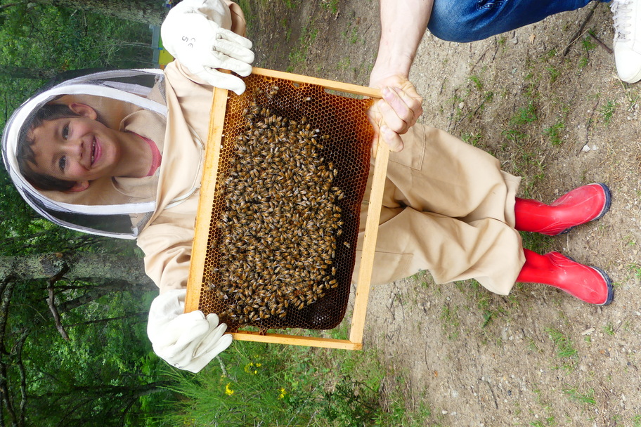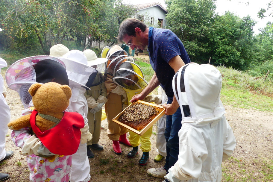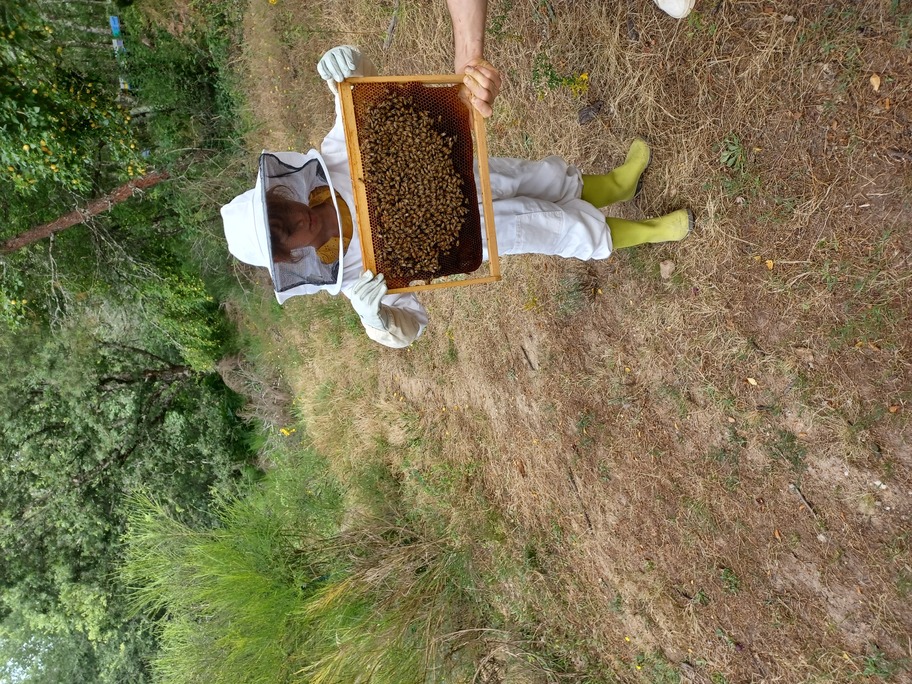 Mardi 4 juillet, les élèves de Grande section ont terminé l'année par une sortie au rucher, clôturant ainsi le projet sur les insectes de cette dernière période. Au programme, s'habiller comme un vrai apiculteur, ouverture et observation d'une ruche, dégustation de divers miels, voir dans un prisme comme une abeille, écoute de leur langage et fabrication d'un joli petit insecte à l'aide d'un caillou coloré. Puis visite du potager et herbes aromatiques, découverte de poules et canards particuliers, pique nique dans la forêt pour terminer cette incroyable journée par la découverte du parcours sensoriel dans les bois.