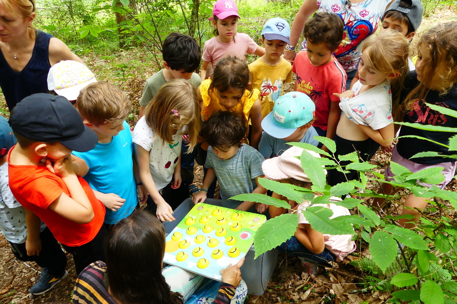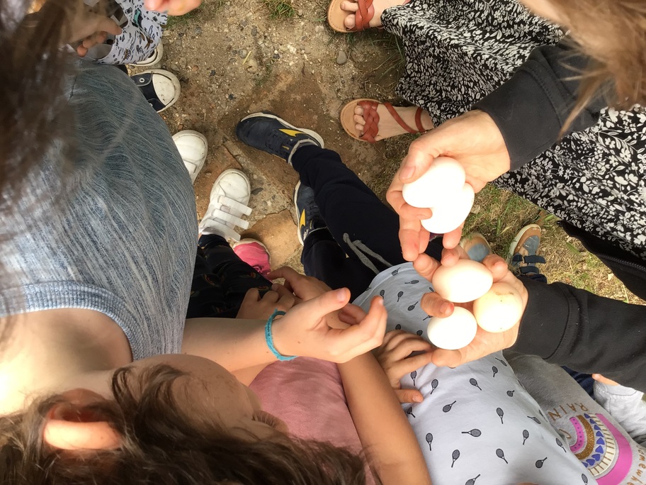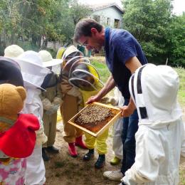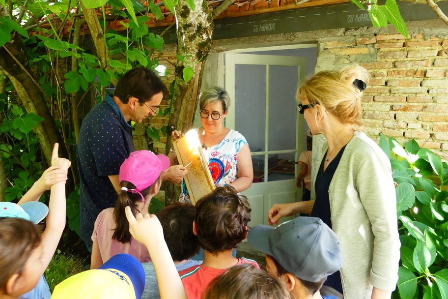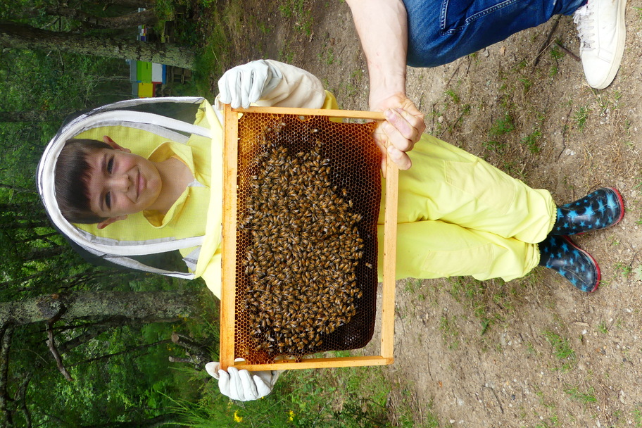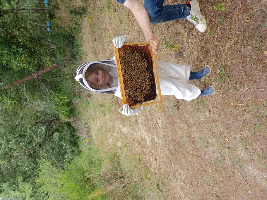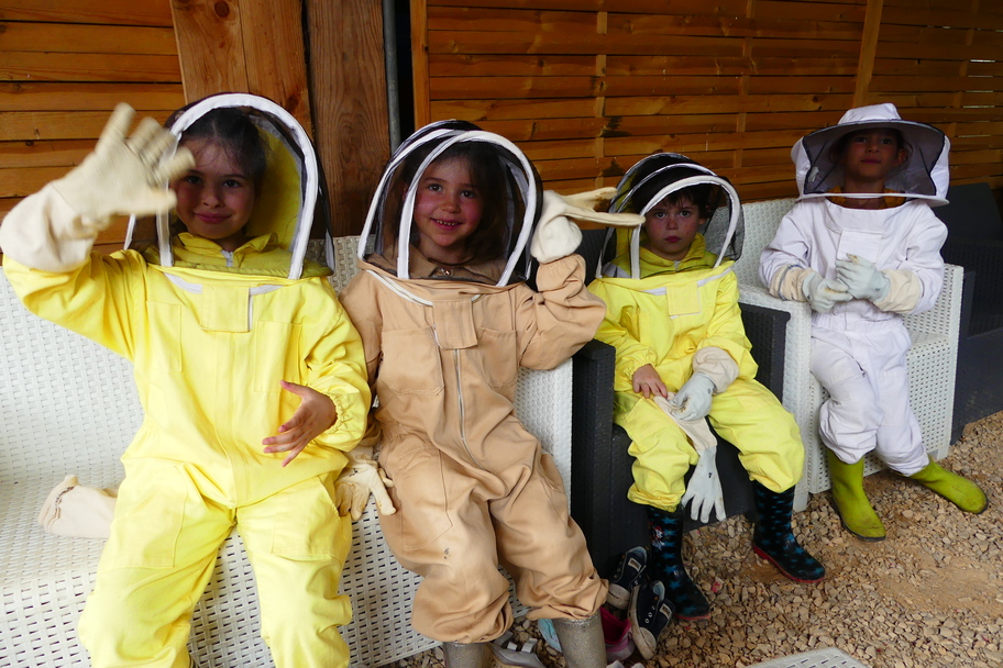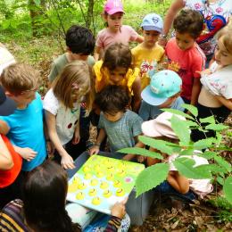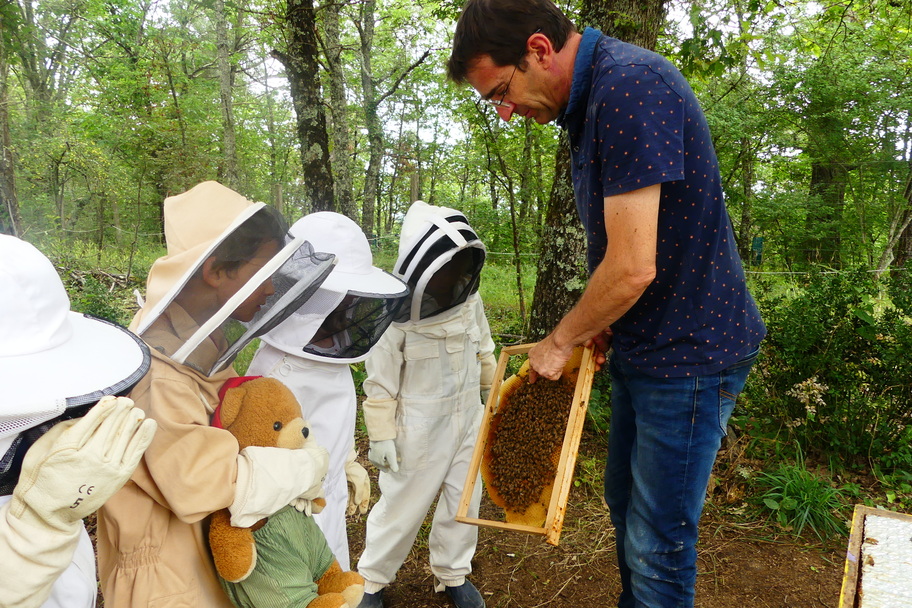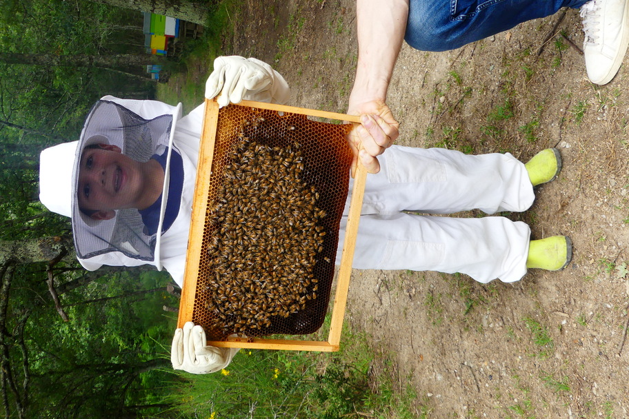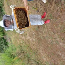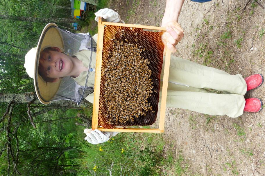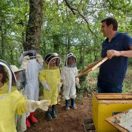 Mardi 4 juillet, les élèves de Grande section ont terminé l'année par une sortie au rucher, clôturant ainsi le projet sur les insectes de cette dernière période. Au programme, s'habiller comme un vrai apiculteur, ouverture et observation d'une ruche, dégustation de divers miels, voir dans un prisme comme une abeille, écoute de leur langage et fabrication d'un joli petit insecte à l'aide d'un caillou coloré. Puis visite du potager et herbes aromatiques, découverte de poules et canards particuliers, pique nique dans la forêt pour terminer cette incroyable journée par la découverte du parcours sensoriel dans les bois.