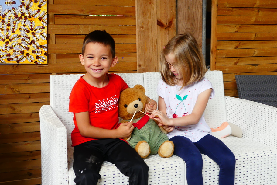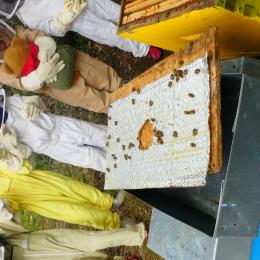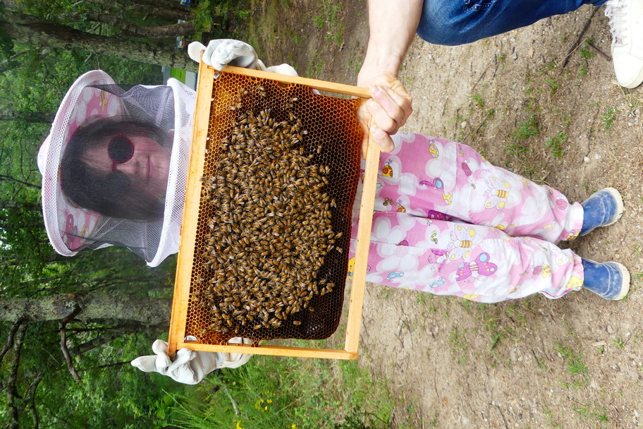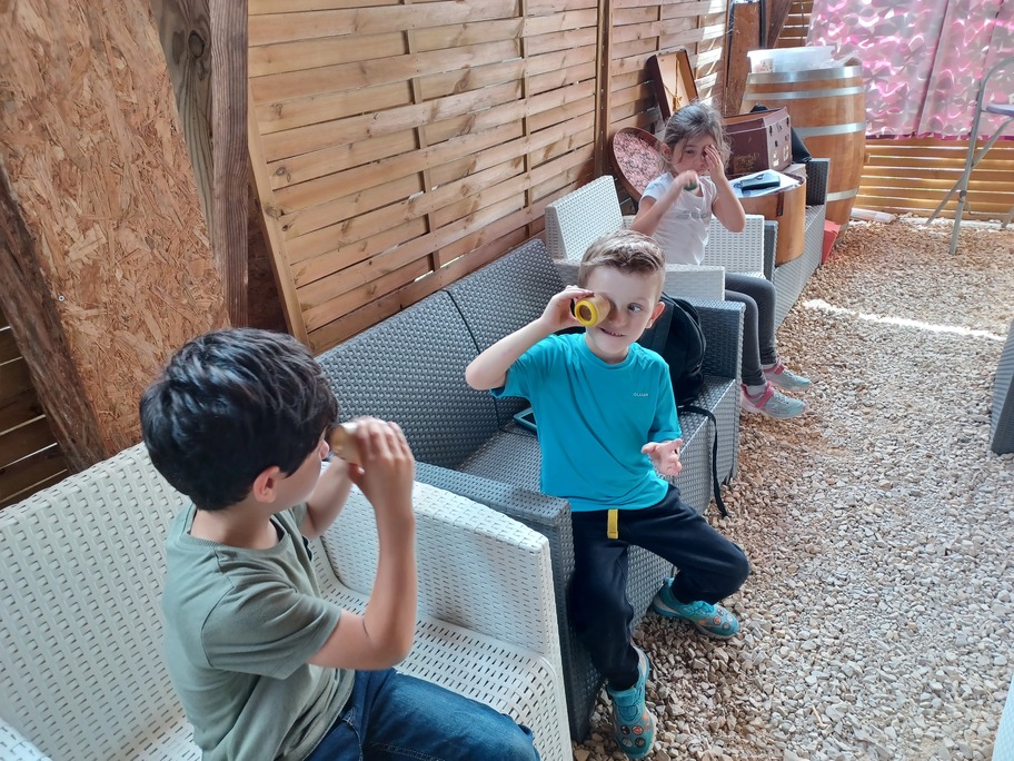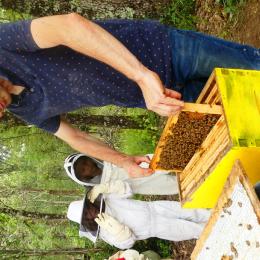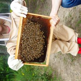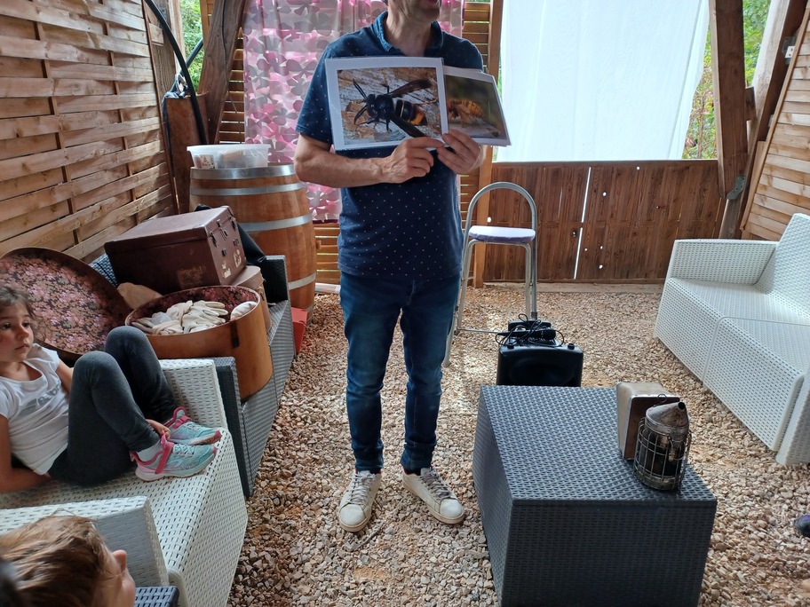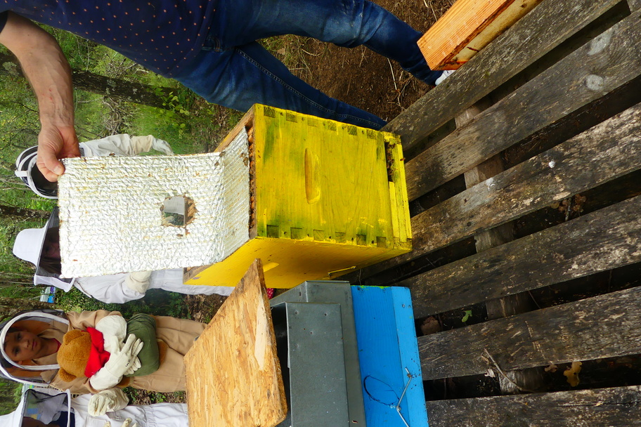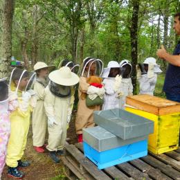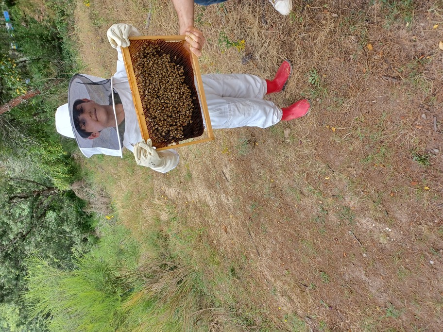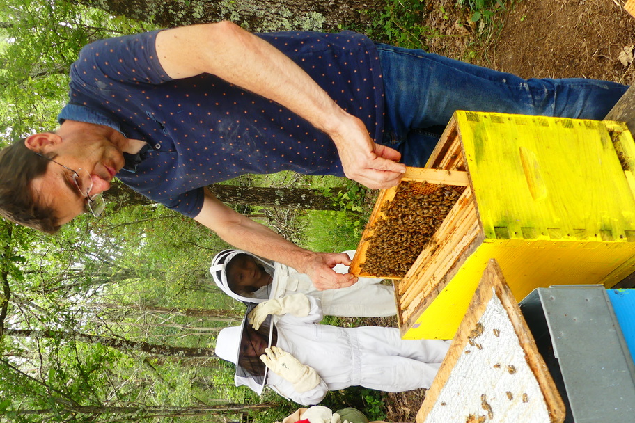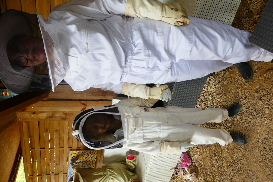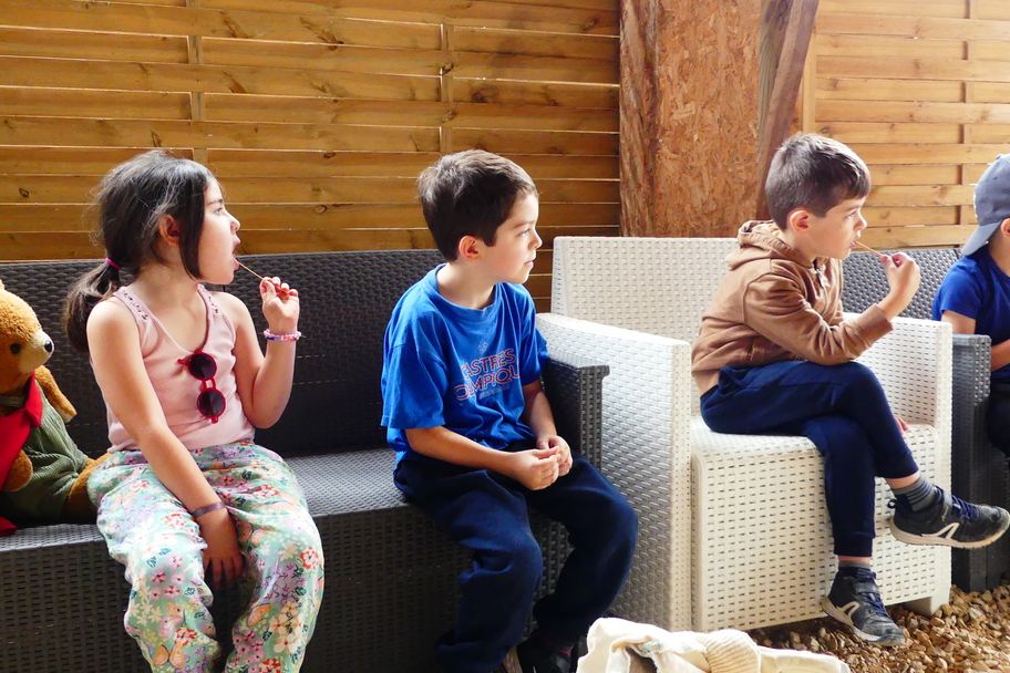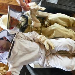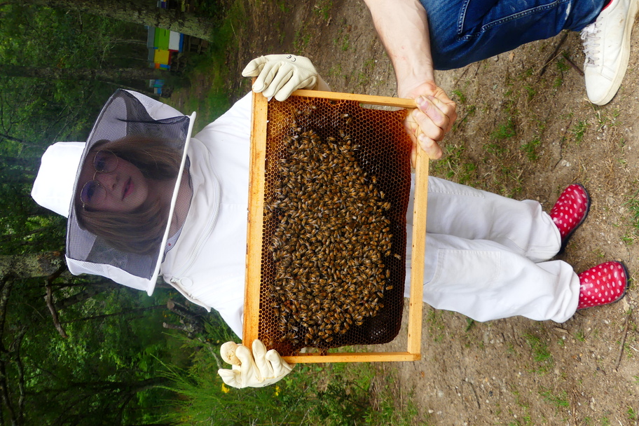 Mardi 4 juillet, les élèves de Grande section ont terminé l'année par une sortie au rucher, clôturant ainsi le projet sur les insectes de cette dernière période. Au programme, s'habiller comme un vrai apiculteur, ouverture et observation d'une ruche, dégustation de divers miels, voir dans un prisme comme une abeille, écoute de leur langage et fabrication d'un joli petit insecte à l'aide d'un caillou coloré. Puis visite du potager et herbes aromatiques, découverte de poules et canards particuliers, pique nique dans la forêt pour terminer cette incroyable journée par la découverte du parcours sensoriel dans les bois.