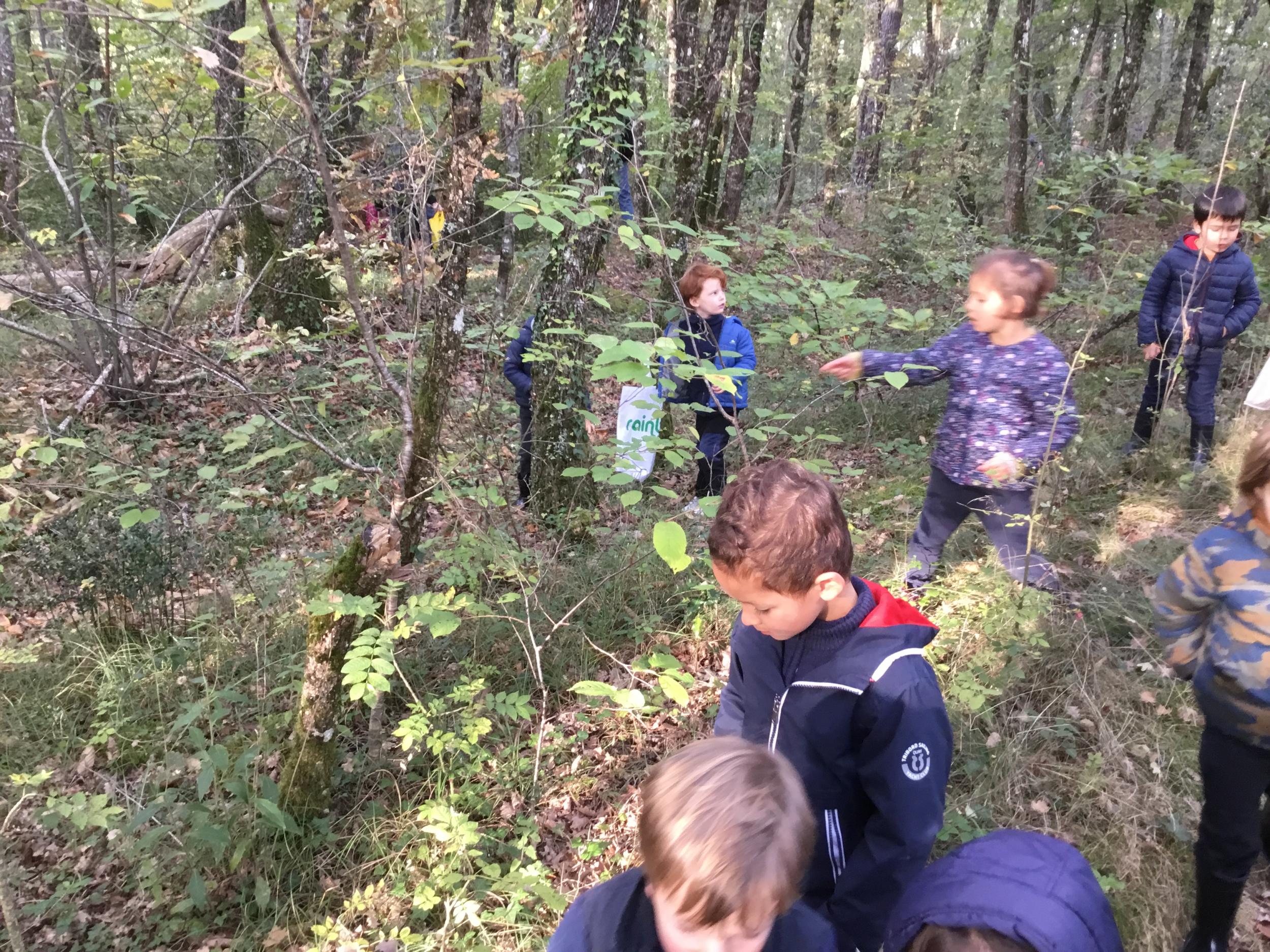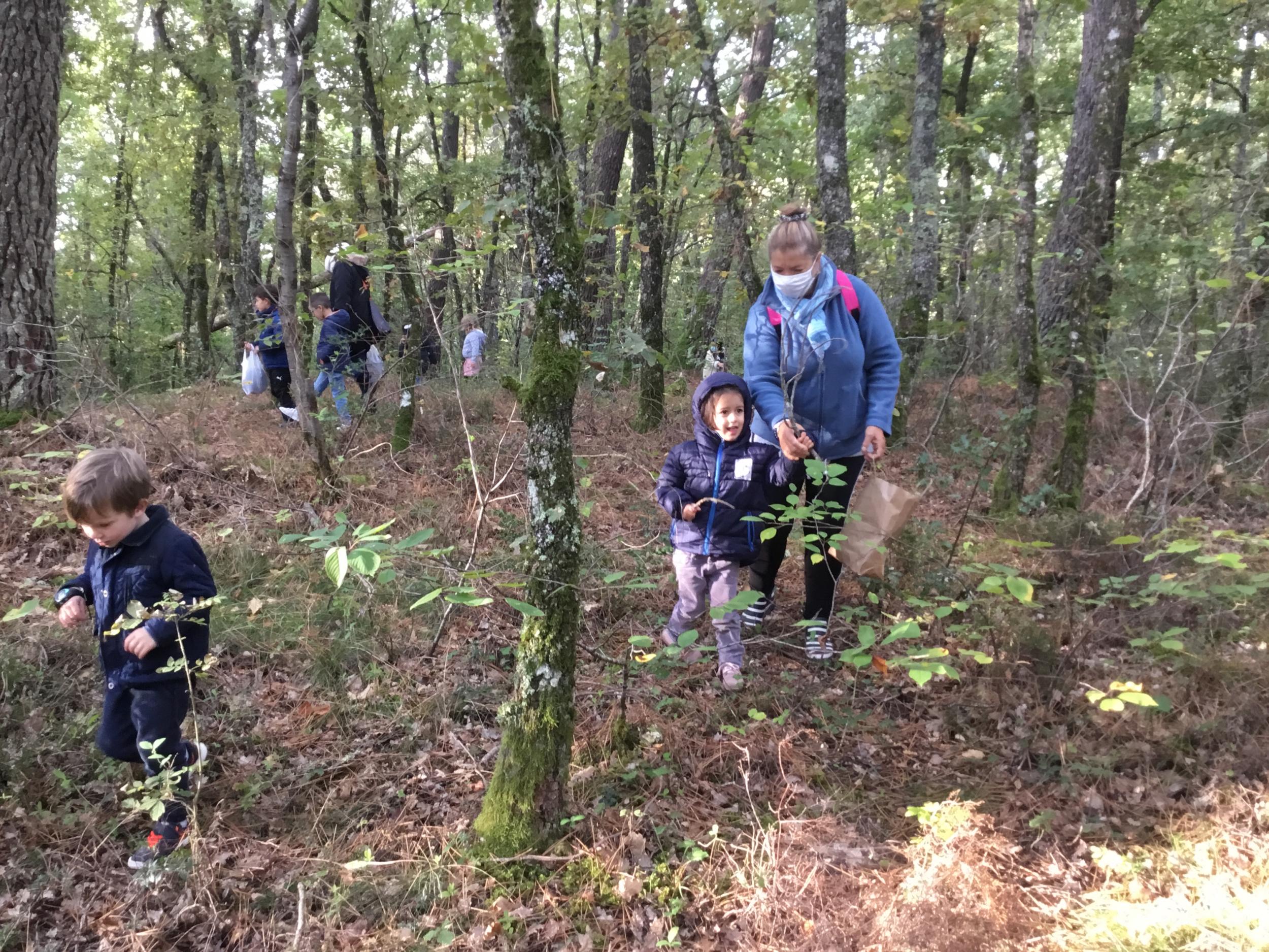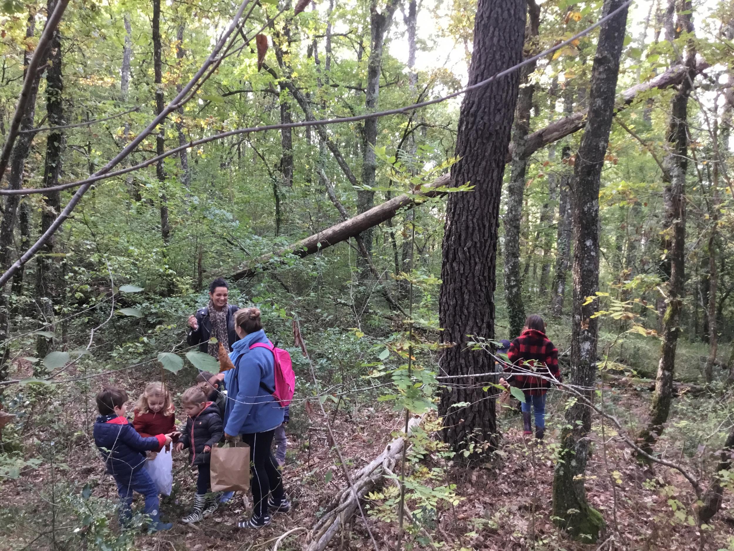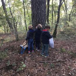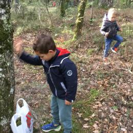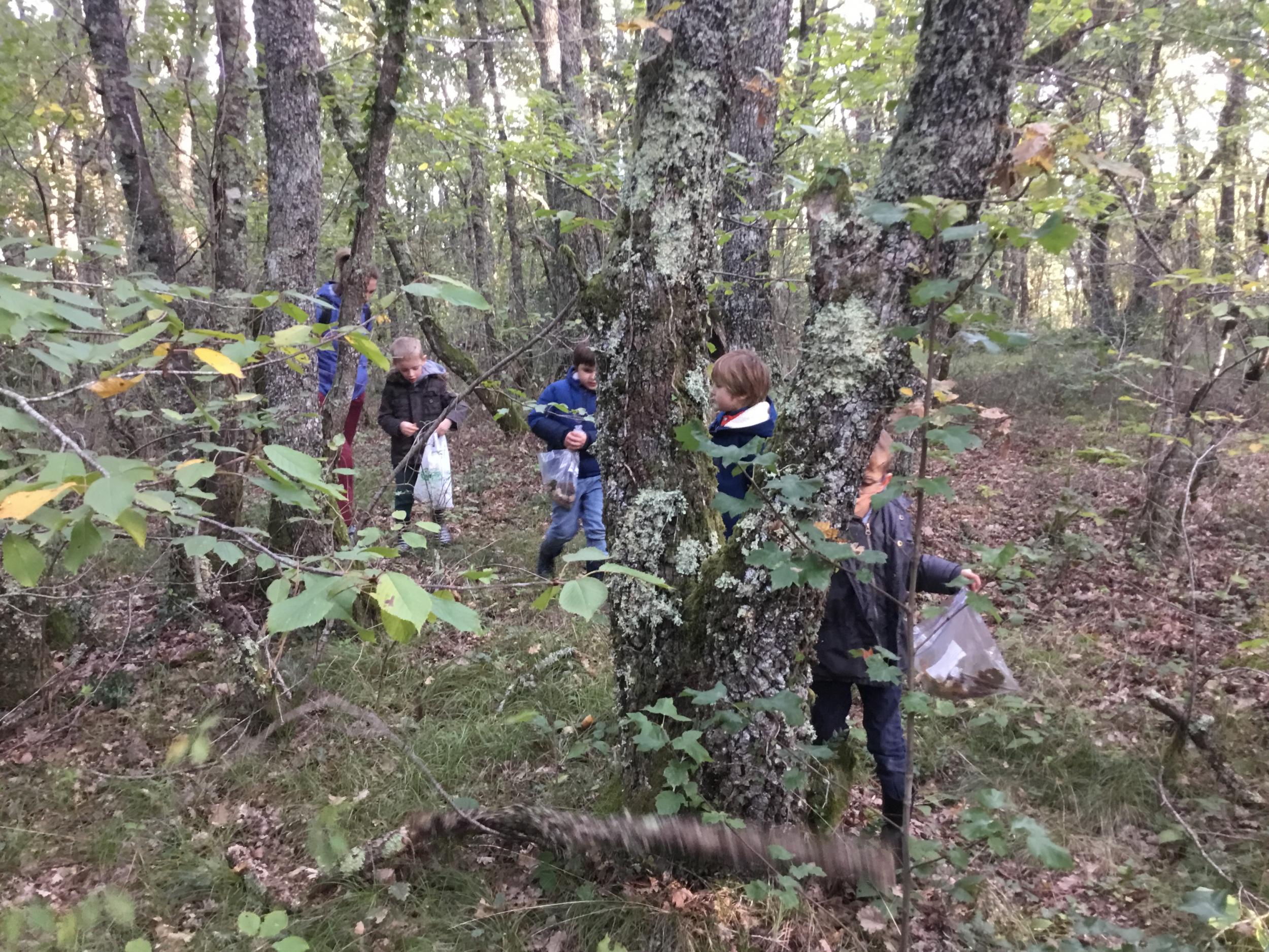 Vendredi 15 Octobre , nous sommes allés dans la forêt de Roquecourbe pour ramasser des trésors offerts par la nature ( fougères, feuilles d’automne, mousse, lichens, brindilles, branches, champignons, terre argileuse, glands, buis, houx, écorce...).