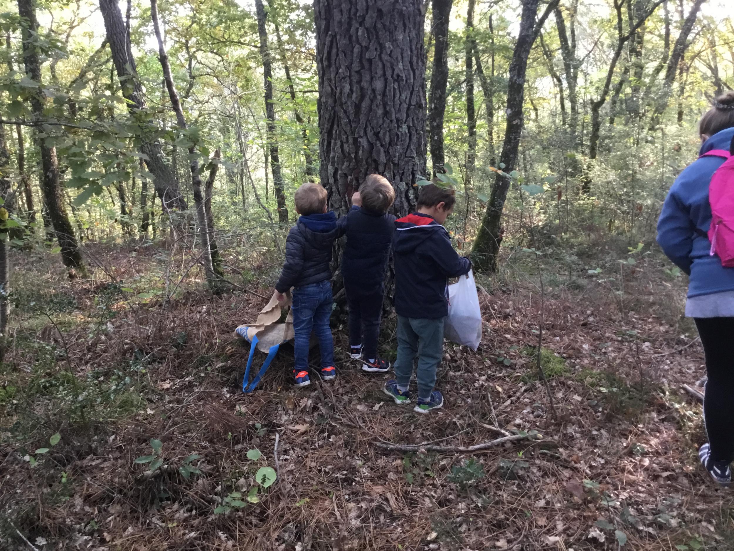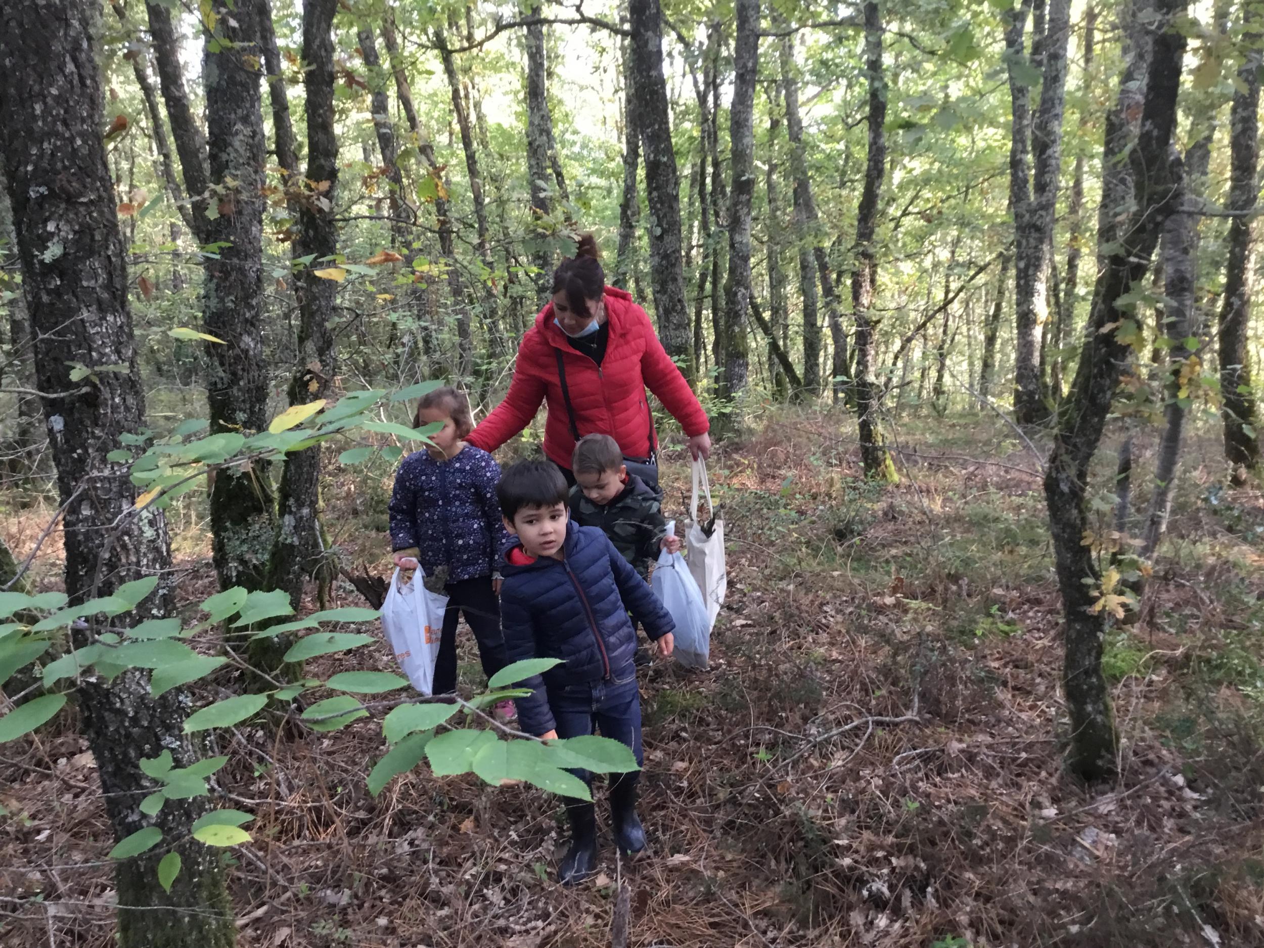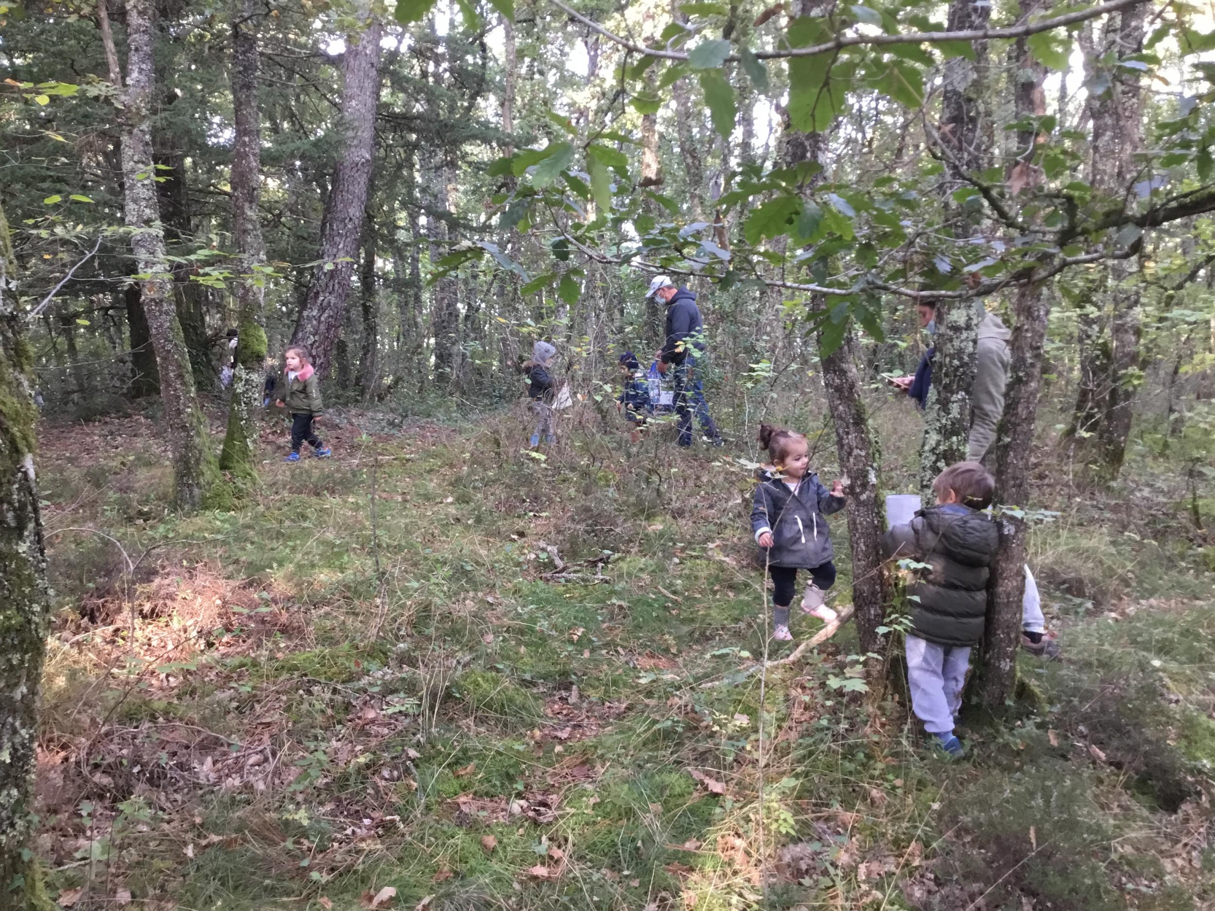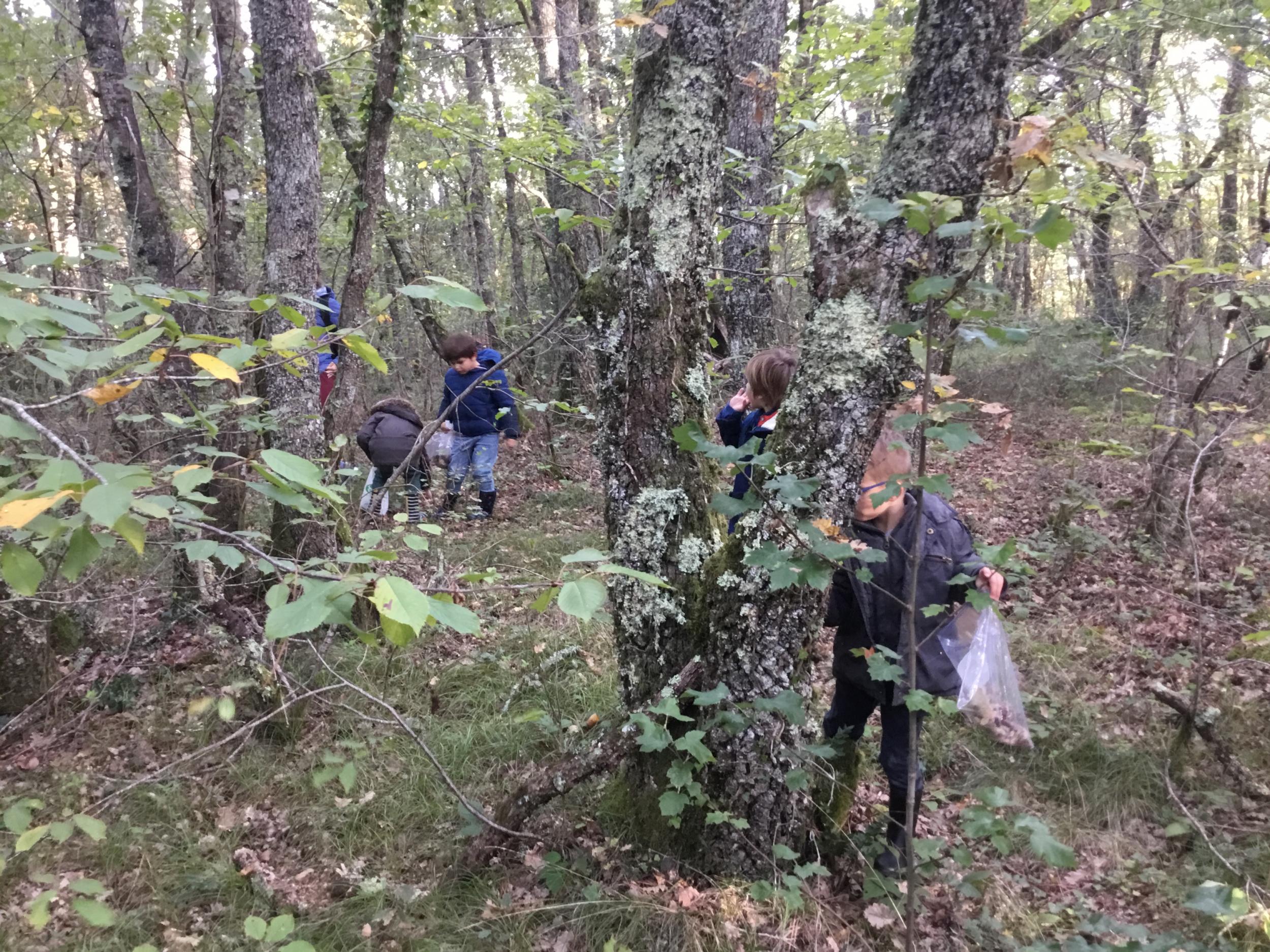 Vendredi 15 Octobre , nous sommes allés dans la forêt de Roquecourbe pour ramasser des trésors offerts par la nature ( fougères, feuilles d’automne, mousse, lichens, brindilles, branches, champignons, terre argileuse, glands, buis, houx, écorce...).