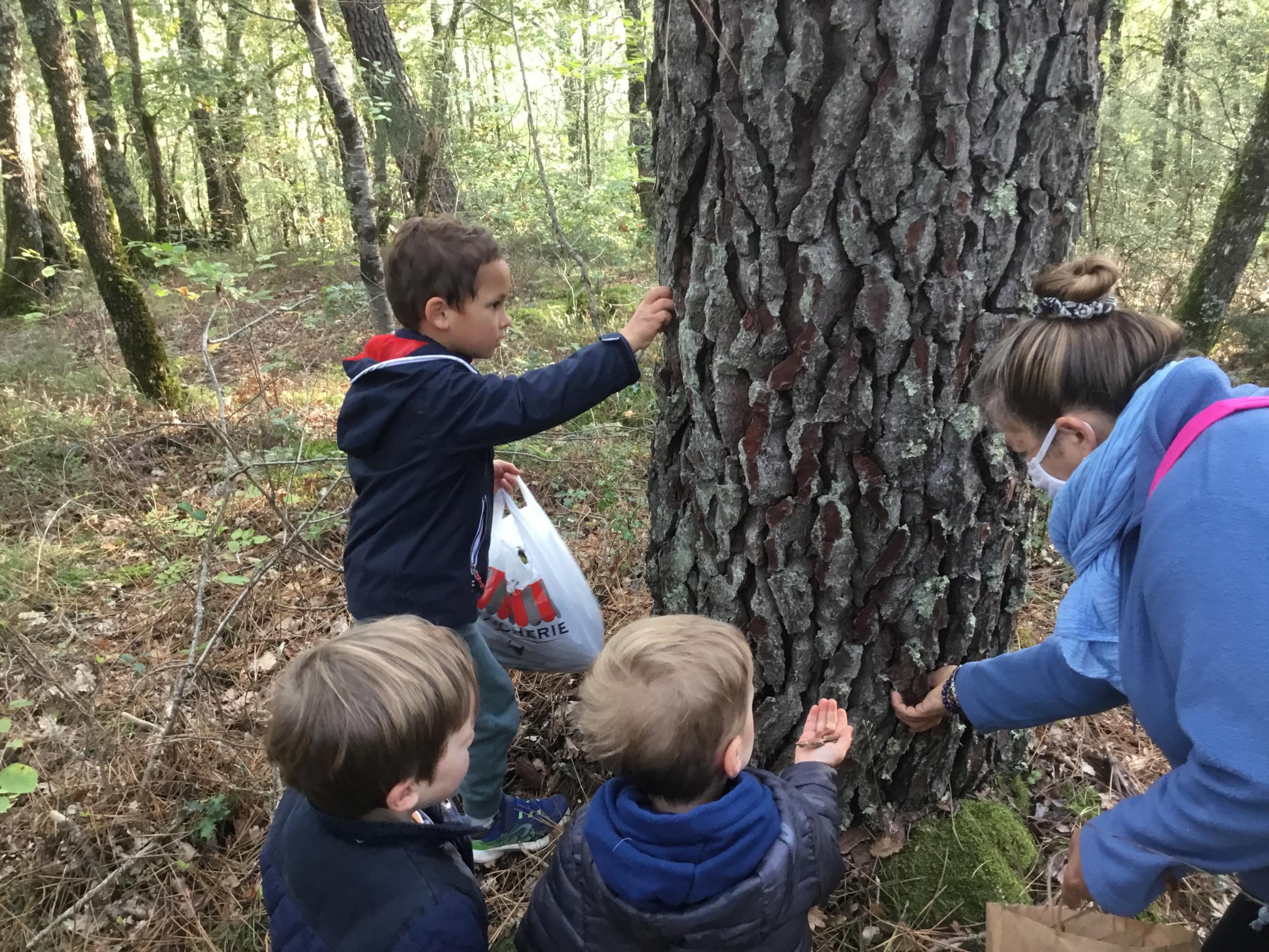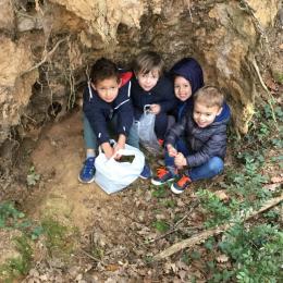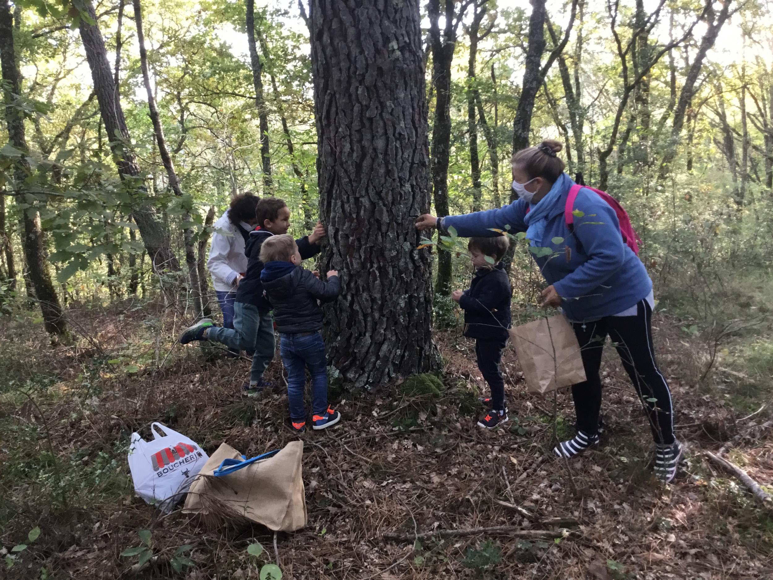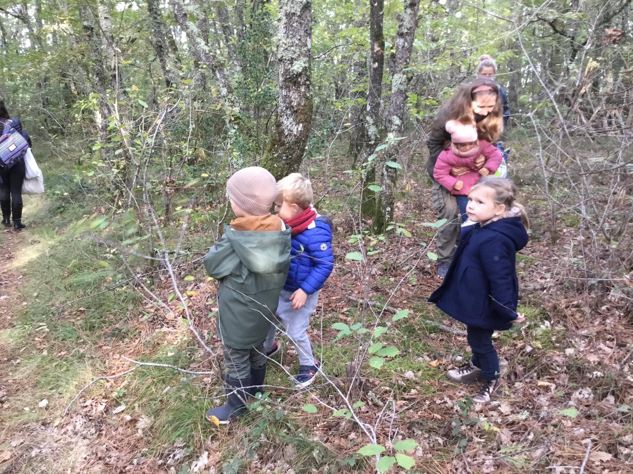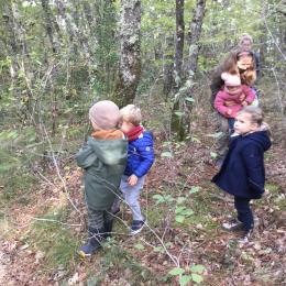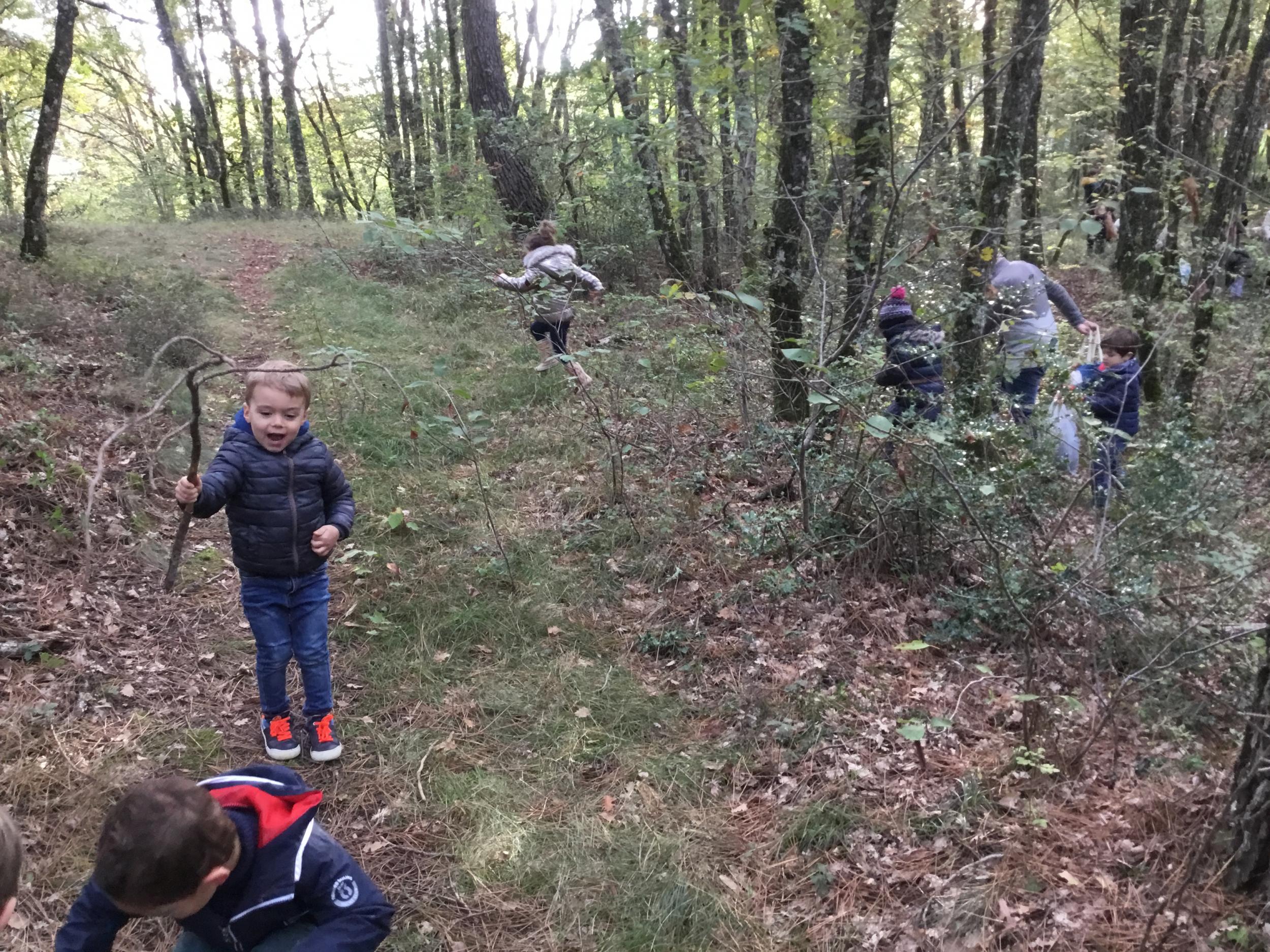Vendredi 15 Octobre , nous sommes allés dans la forêt de Roquecourbe pour ramasser des trésors offerts par la nature ( fougères, feuilles d’automne, mousse, lichens, brindilles, branches, champignons, terre argileuse, glands, buis, houx, écorce...).