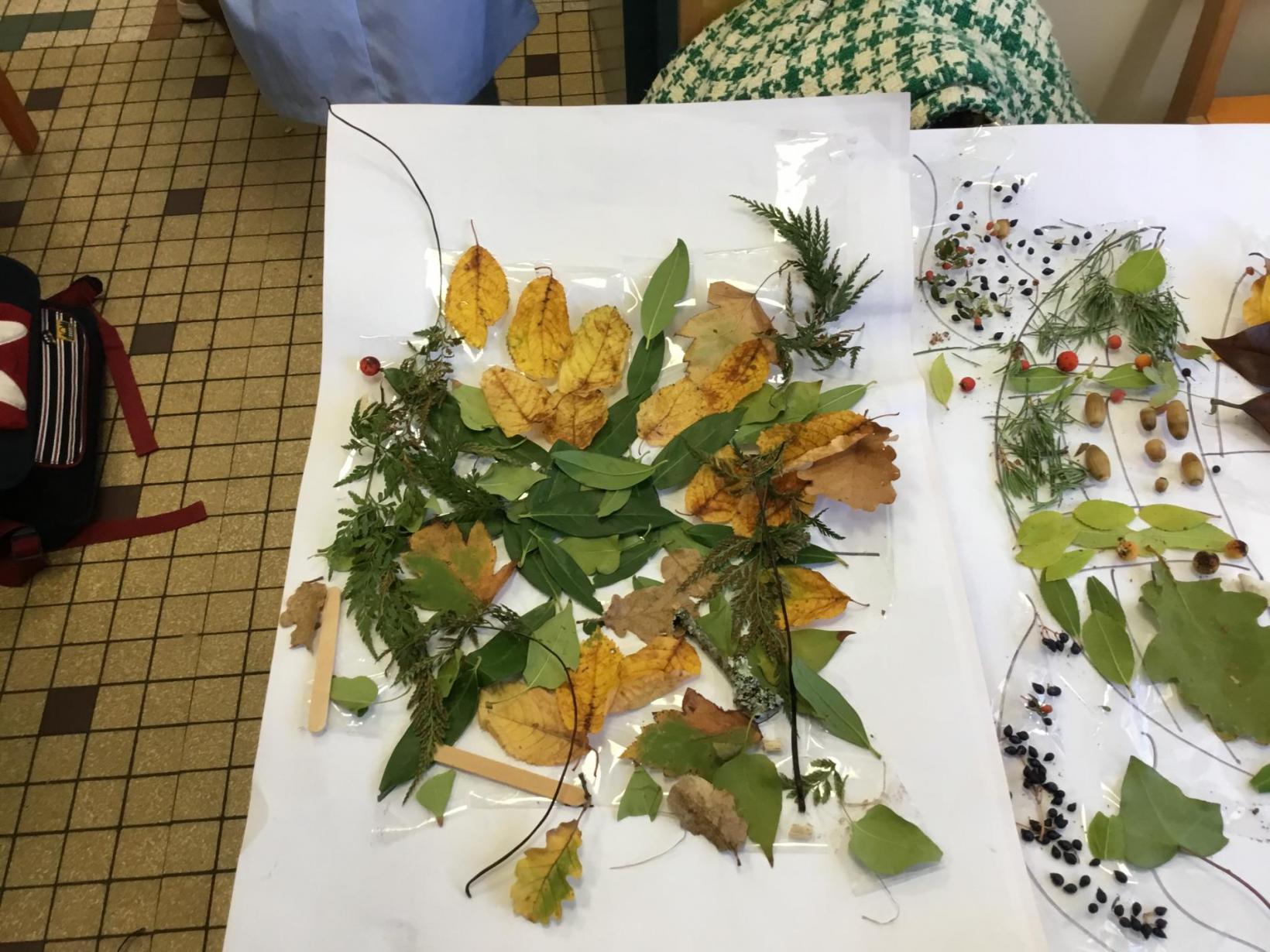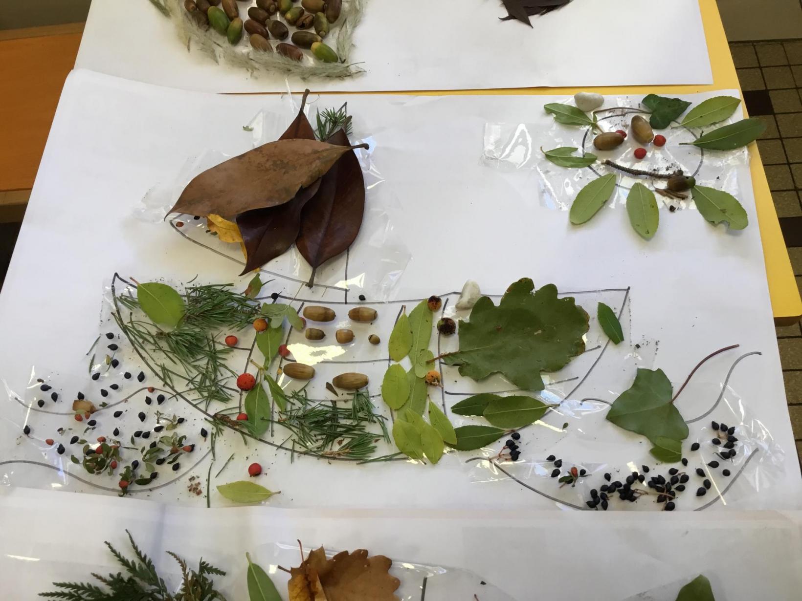 En plus du plaisir de prendre le bus, les élèves ont bien participé à la récolte de feuilles et autres éléments naturels. Et ce matin, quel plaisir de créer ….