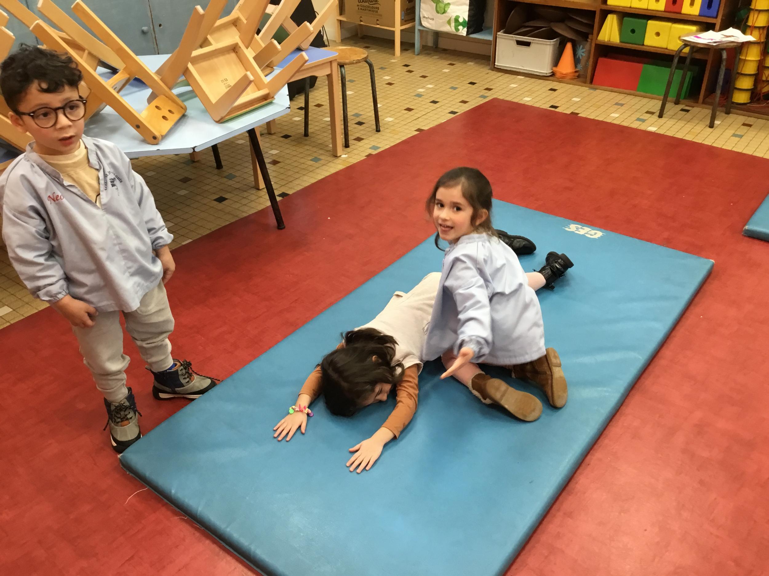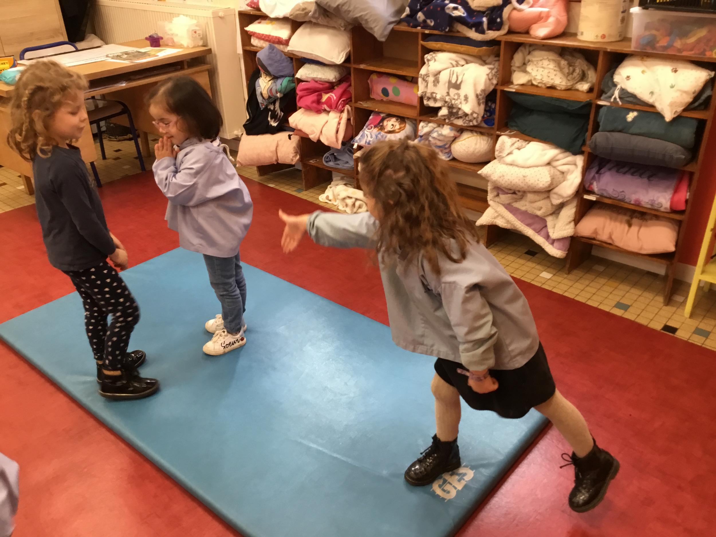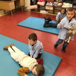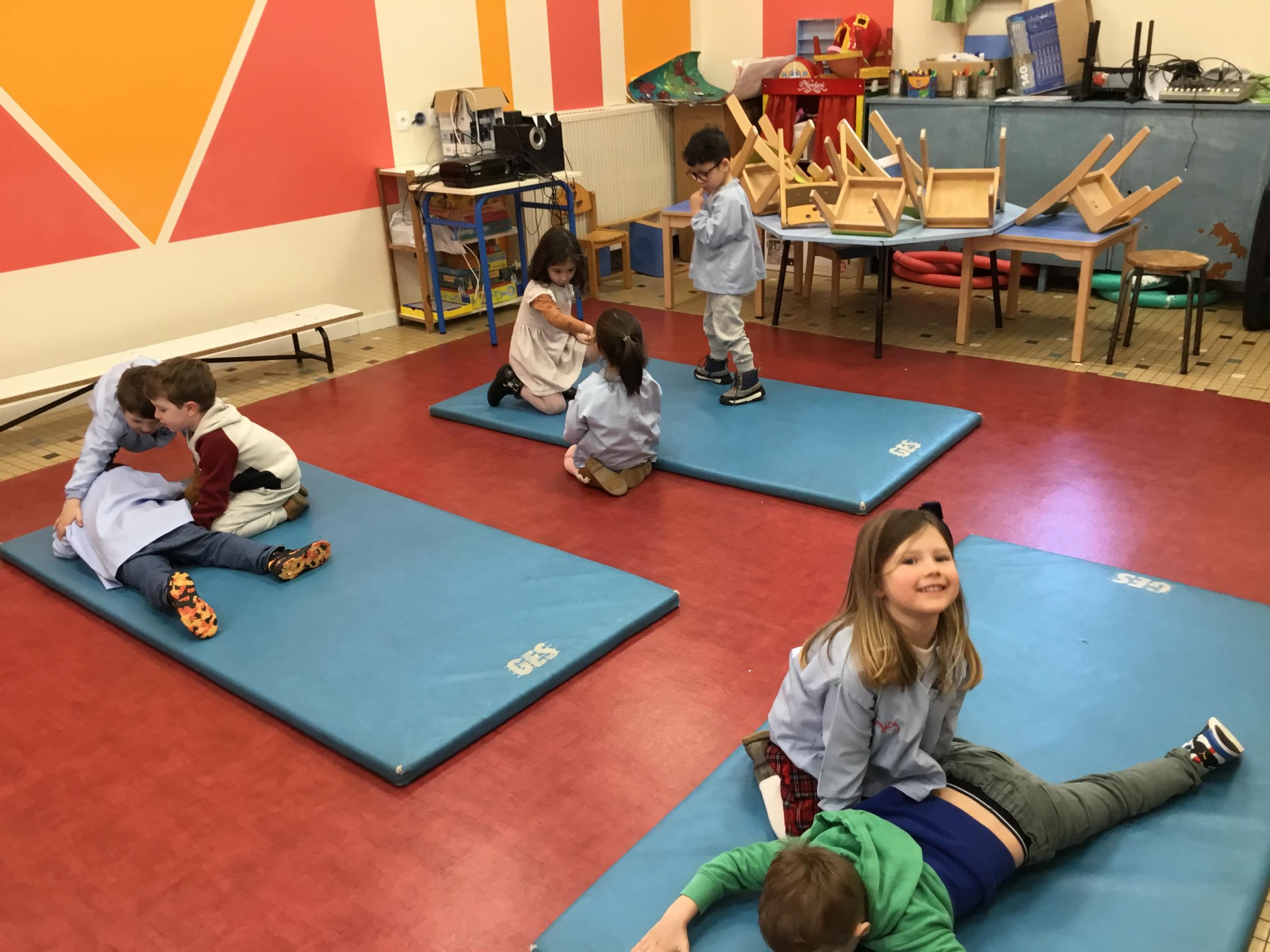 Nous avons commencé un cycle de sport d’opposition ( jeu de la crêpe, jeu de la grenouille, jeu du sumo) . Le but est d’entrer en relation et de s’organiser par groupe de trois élèves. Chaque élève , pour jouer , doit s’organiser et discuté avec les camarades de son groupe pour choisir et distribuer les différents rôles de chacun. Ils doivent aussi respecter les consignes de sécurité et les règles des jeux . Ils travaillent ainsi l’autonomie et la socialisation ( relation et prise de parole à l’oral).