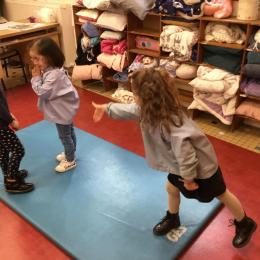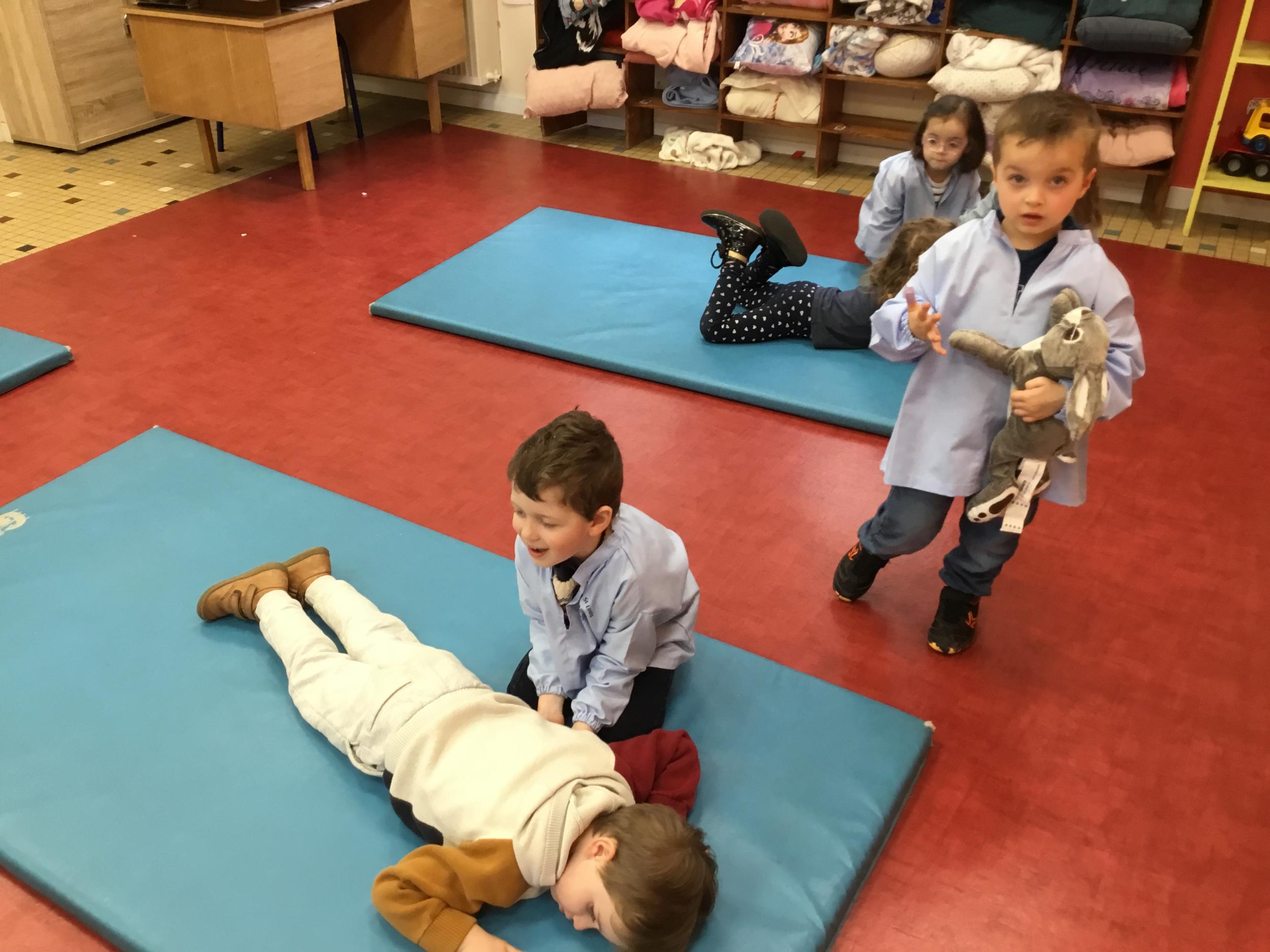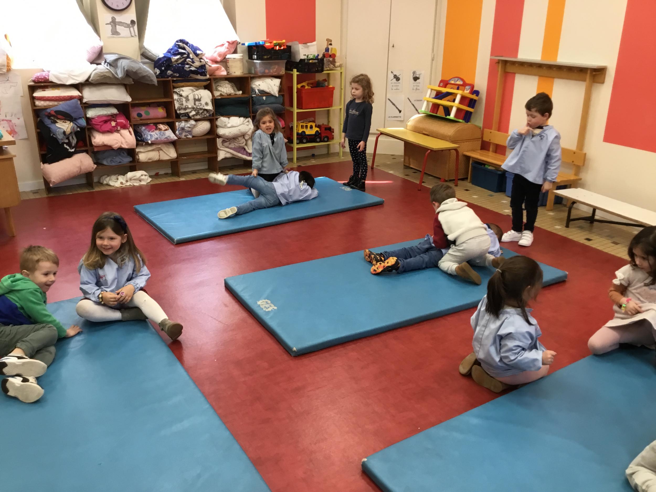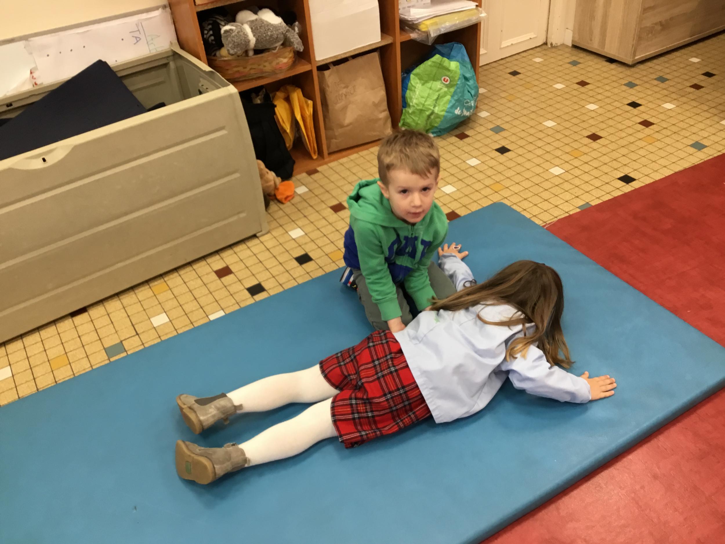 Nous avons commencé un cycle de sport d’opposition ( jeu de la crêpe, jeu de la grenouille, jeu du sumo) . Le but est d’entrer en relation et de s’organiser par groupe de trois élèves. Chaque élève , pour jouer , doit s’organiser et discuté avec les camarades de son groupe pour choisir et distribuer les différents rôles de chacun. Ils doivent aussi respecter les consignes de sécurité et les règles des jeux . Ils travaillent ainsi l’autonomie et la socialisation ( relation et prise de parole à l’oral).