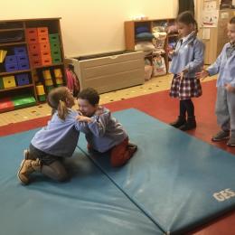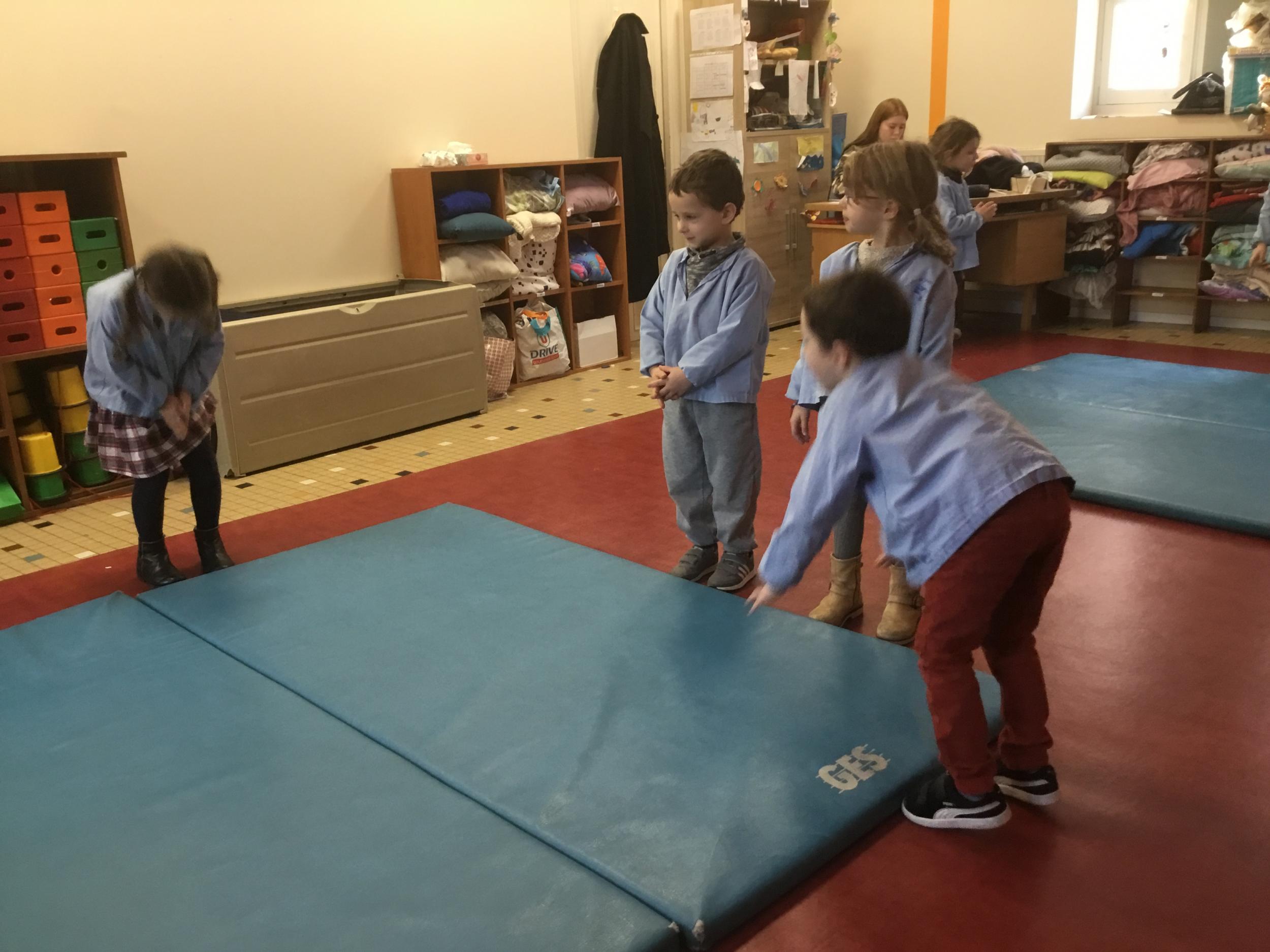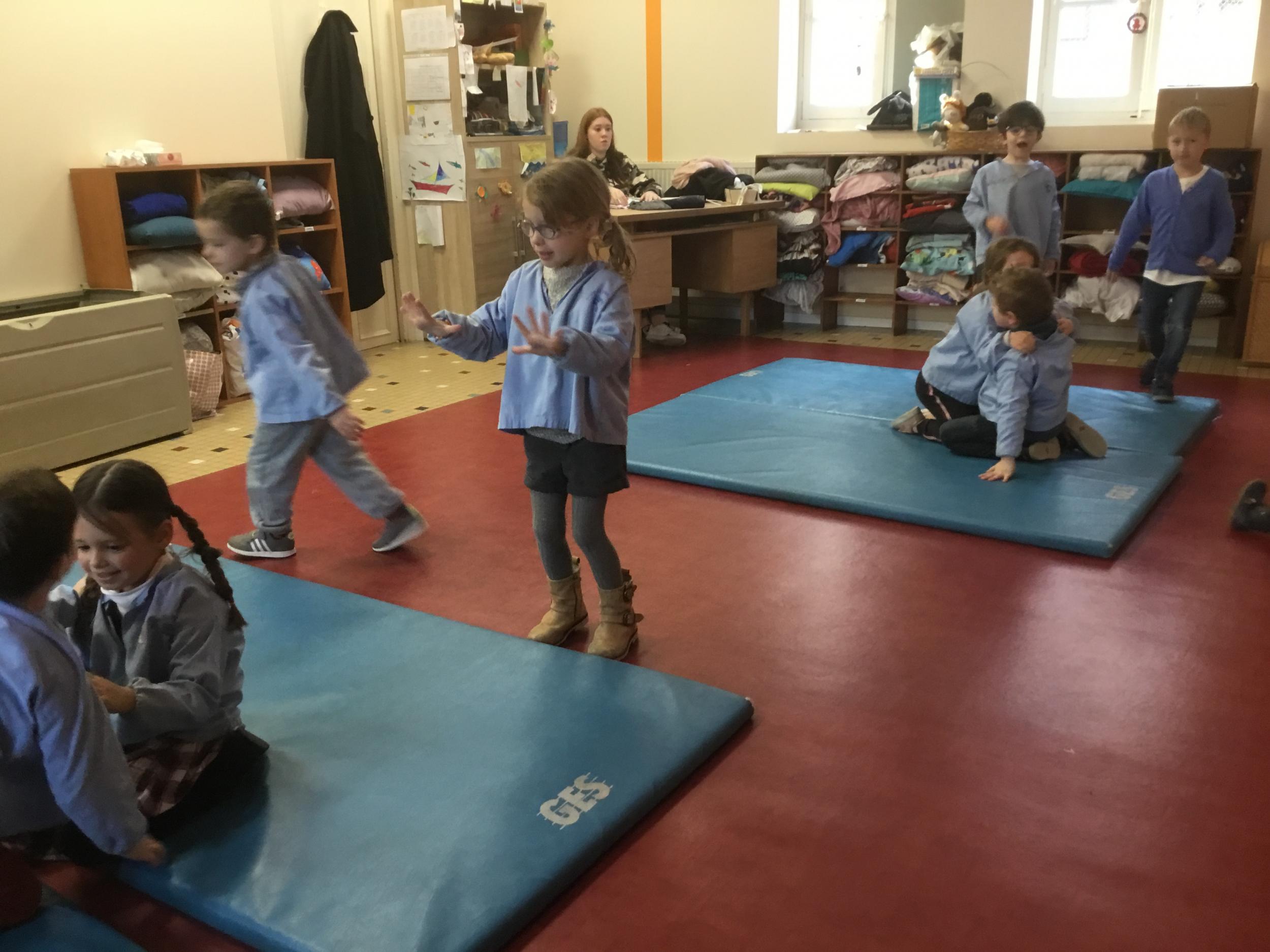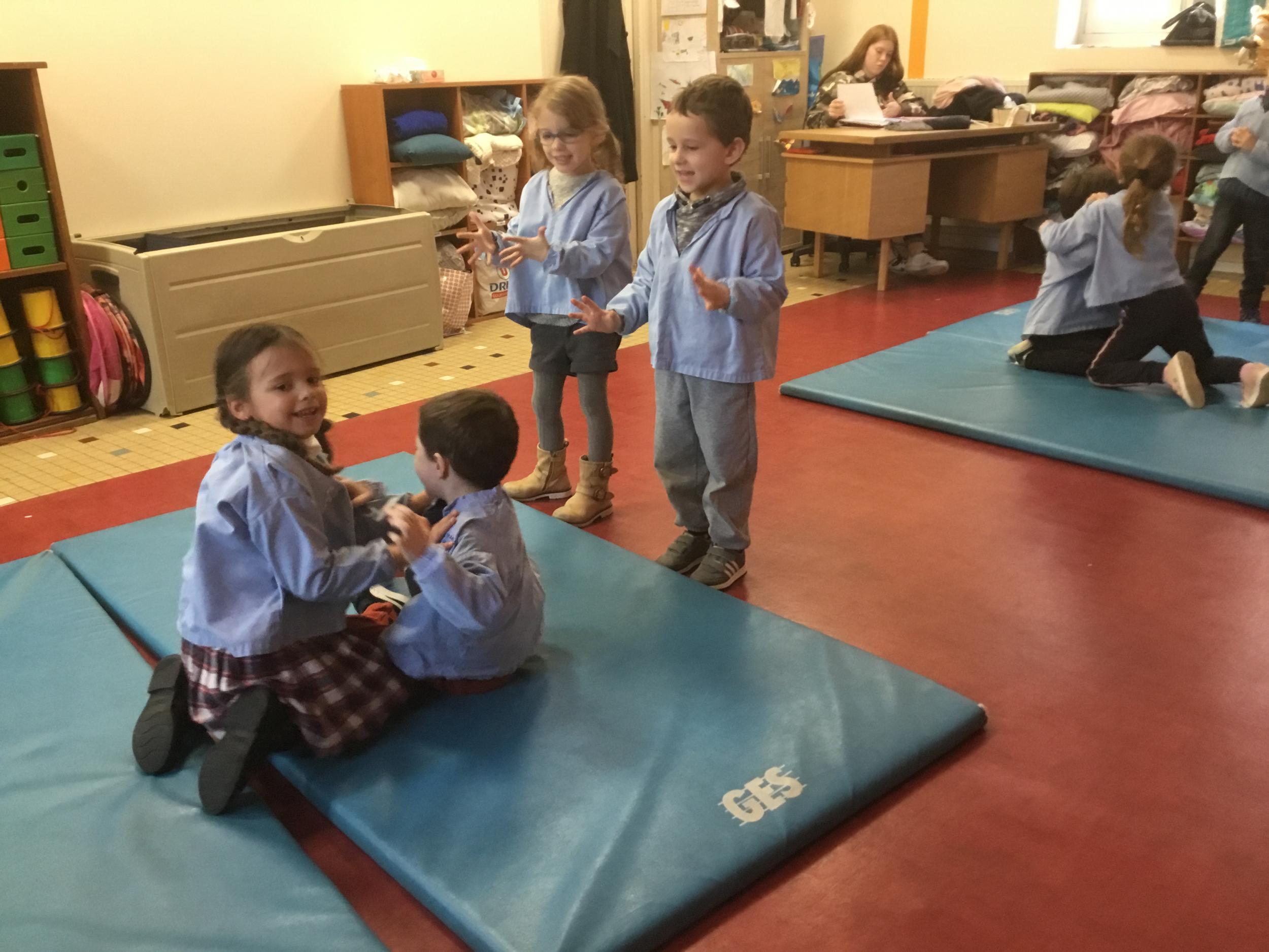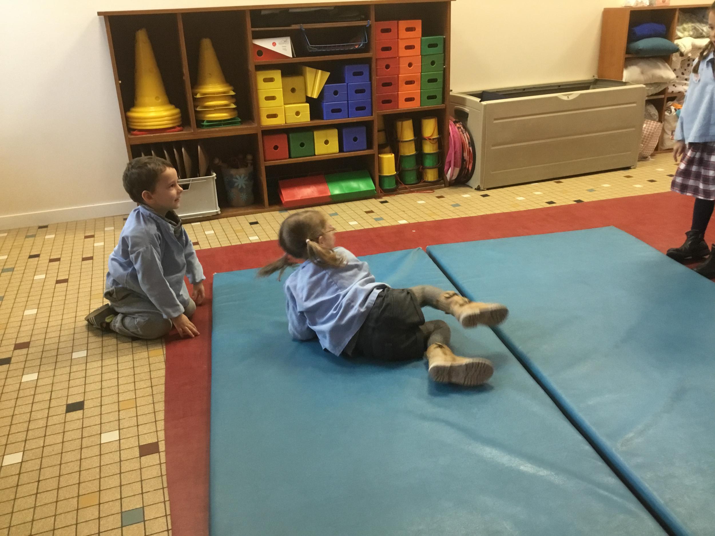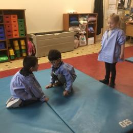 Les élèves apprennent à se responsabiliser , à respecter l’autre et les règles du jeu , à se distrubuer et à tenir leur rôle dans le groupe , à développer une stratégie d’attaque et de défense , à discuter avec les autres sur le choix du rôle de chacun lors des jeux d’opposition . Ils jouent à « la crêpe et au pâtissier », à « la grenouille et au jardinier » et au sumo.