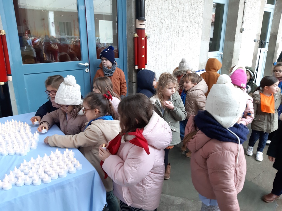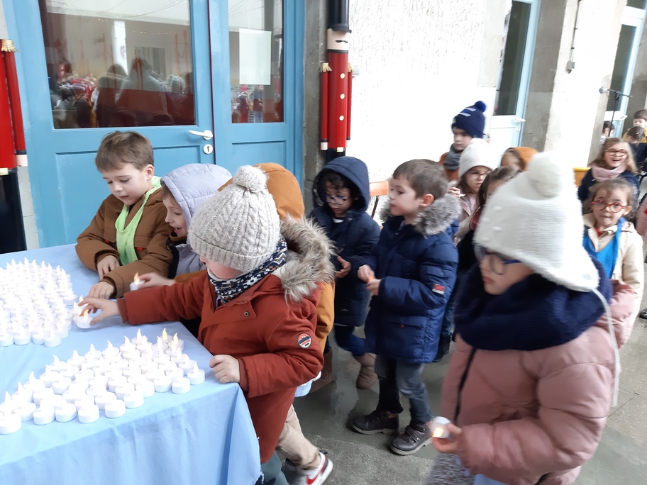 Nous avons fêté la Vierge Marie en faisant des processions avec des lumignons que nous avons déposé au pied de la statue dans la cour. Nous avons chanté pour la Vierge, priés tous ensemble. Puis nous avons déposé nos lumières sur les fenêtres de chaque classe pour illuminer cette journée spéciale!