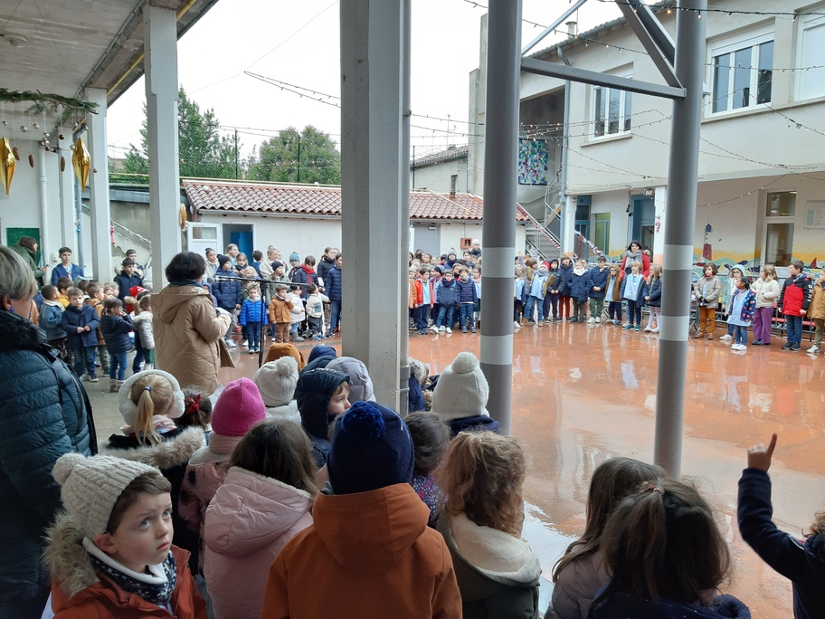 Le soir, c'était le marché de Noël de l'école avec les chants de chorale. Maîtresse nous a dit que l'on avait été très sages et qu'on avait bien chanté!