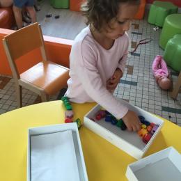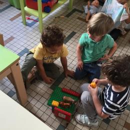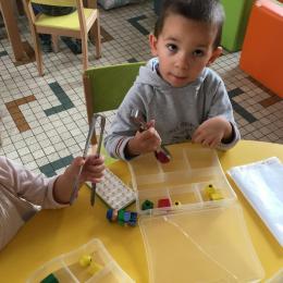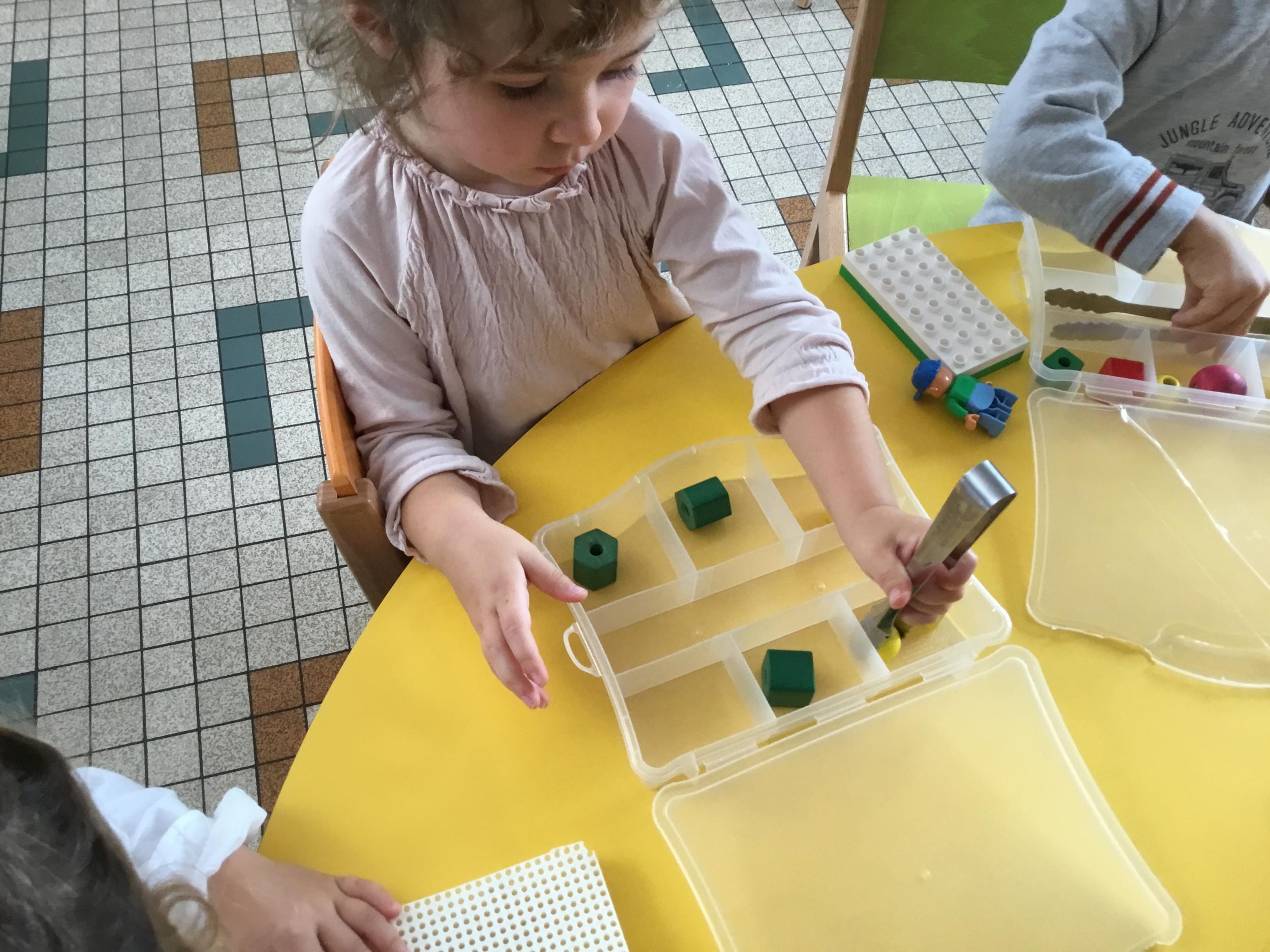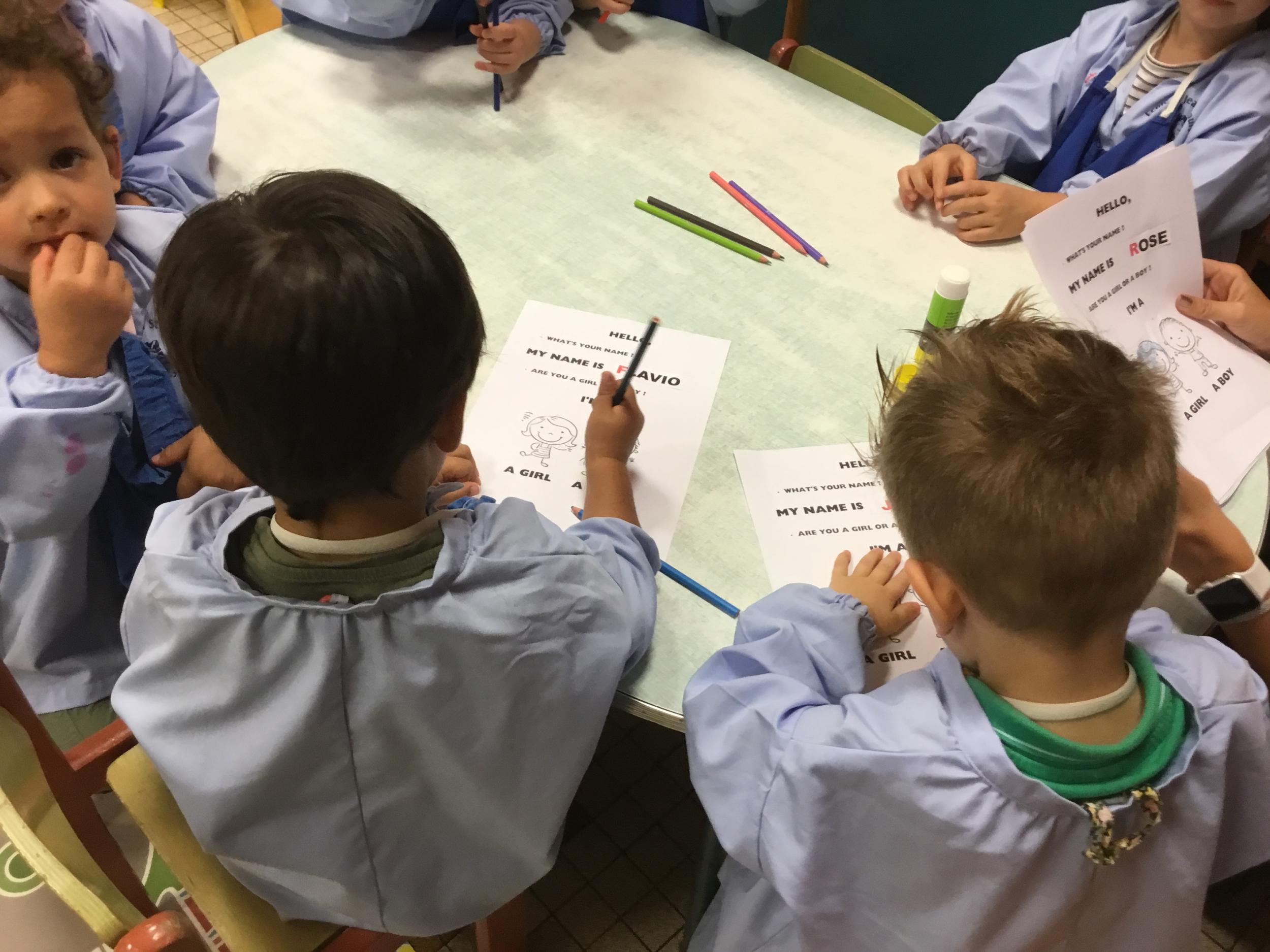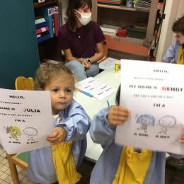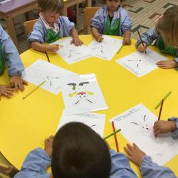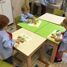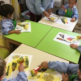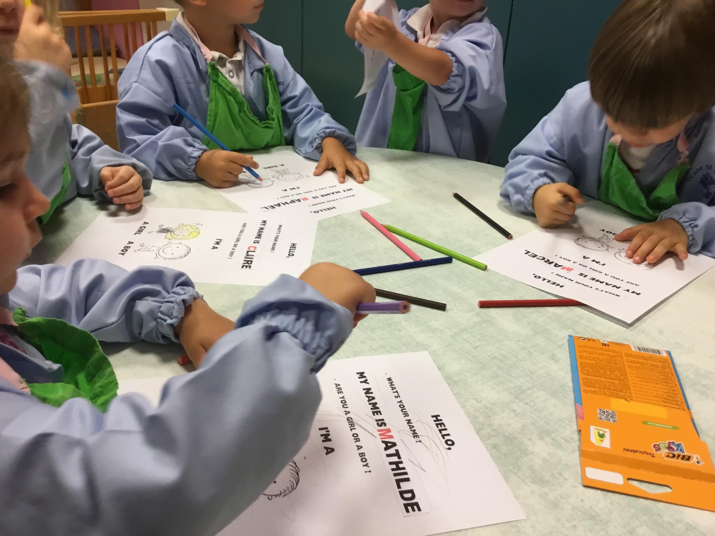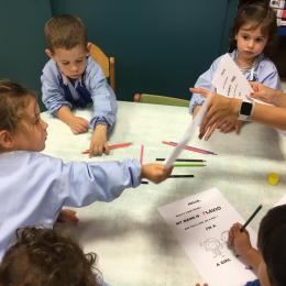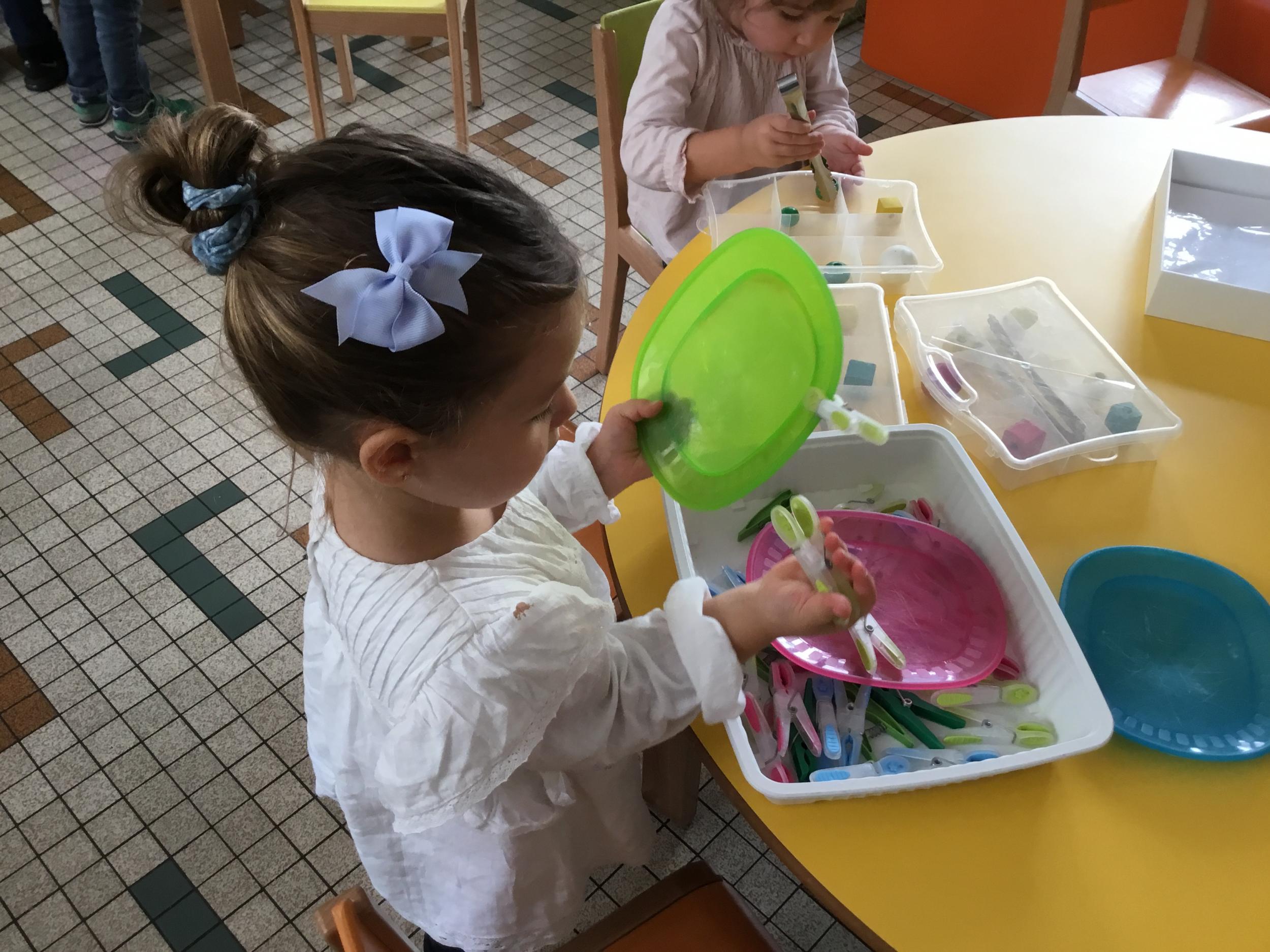 Cet album permet de travailler sur le thème des couleurs et le schéma corporel. Le mardi, les élèves ont raconté l’histoire à partir d’images de l’histoire. Un jeu autour de ces images leur a permis de faire deviner une image qui leur plaisait parmi toutes celles proposées à leur camarade. Pas toujours facile de faire deviner une image sans devoir la monter à ses camarades en utilisant seulement des mots ou une courte phrase pour les plus bavards.