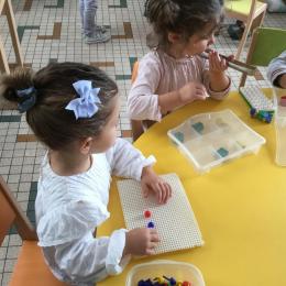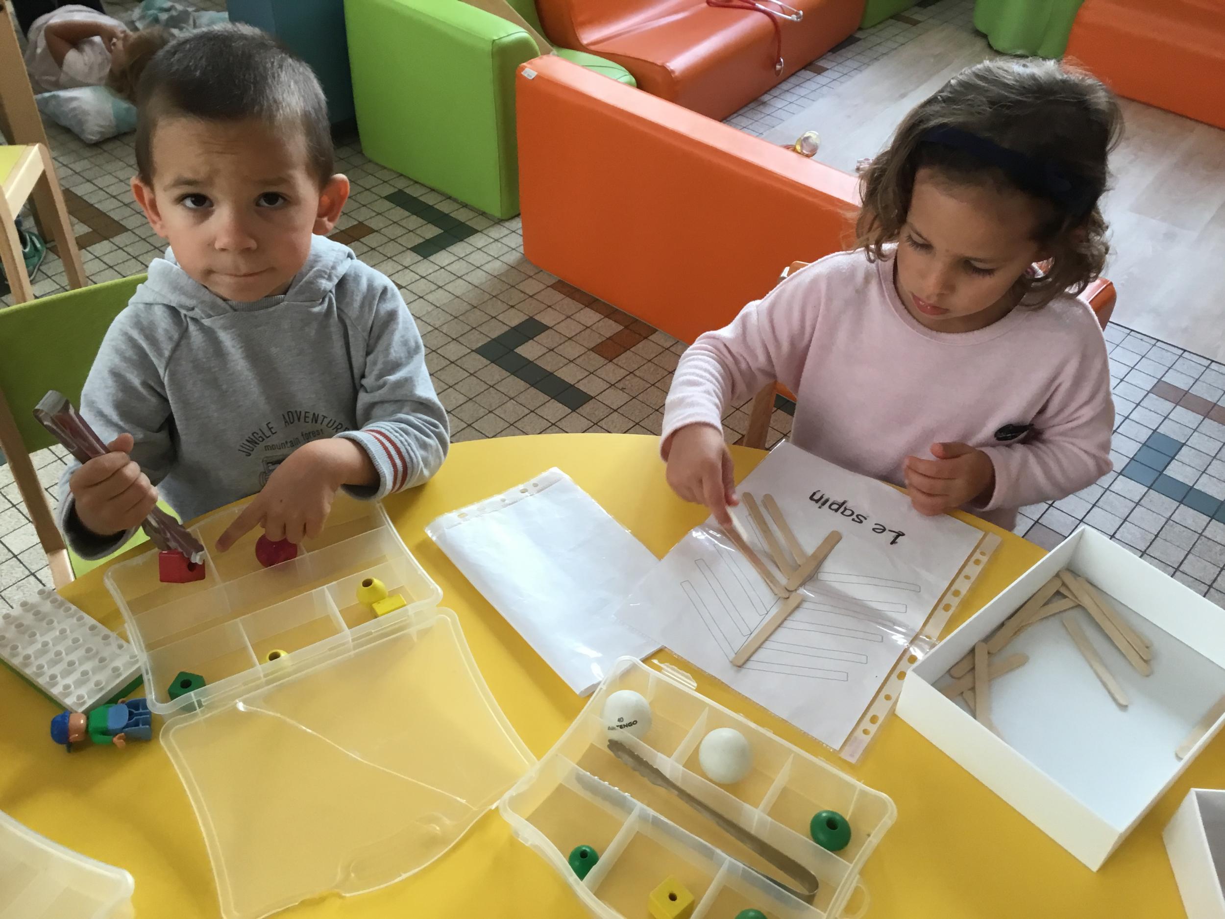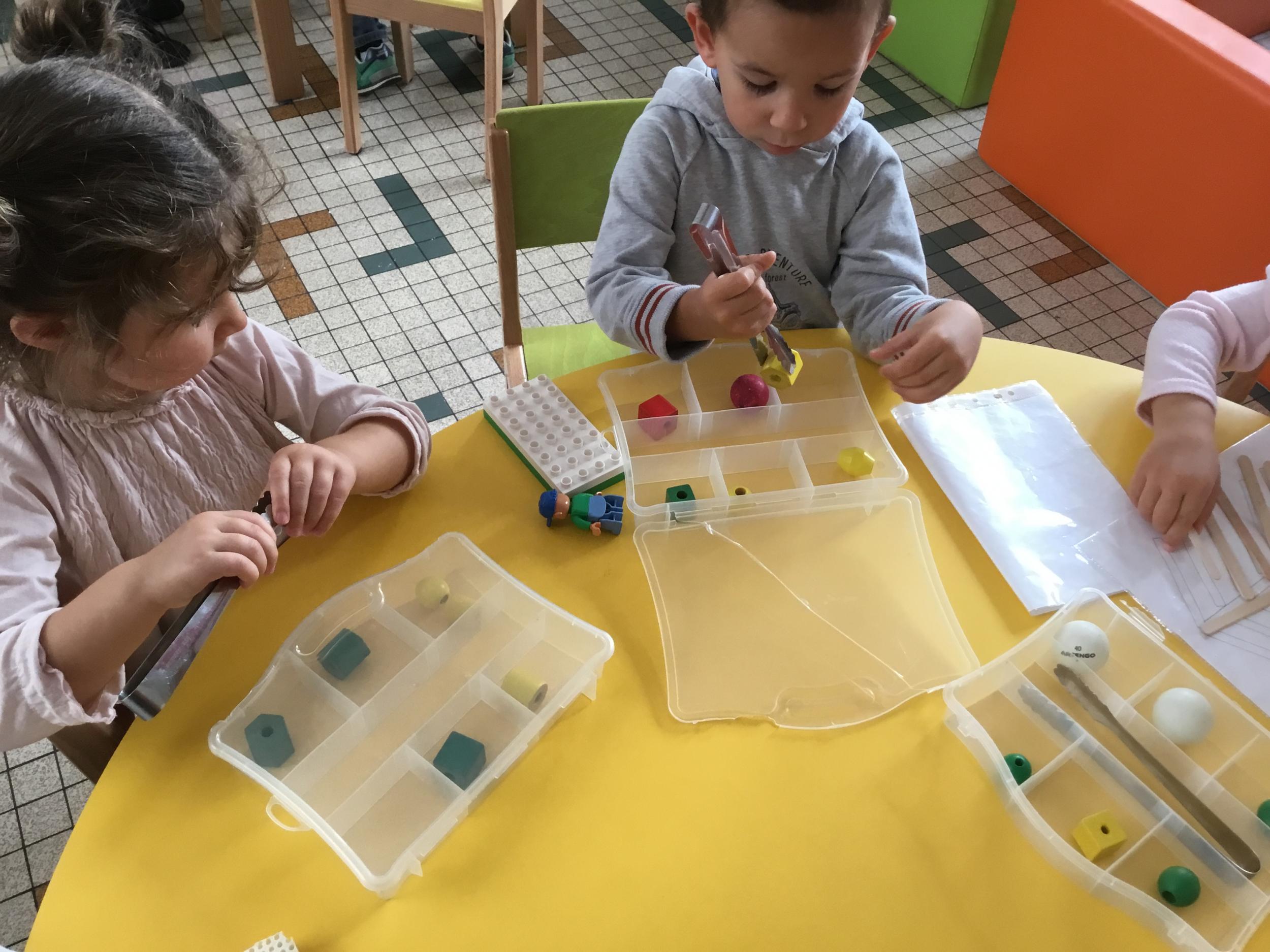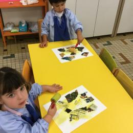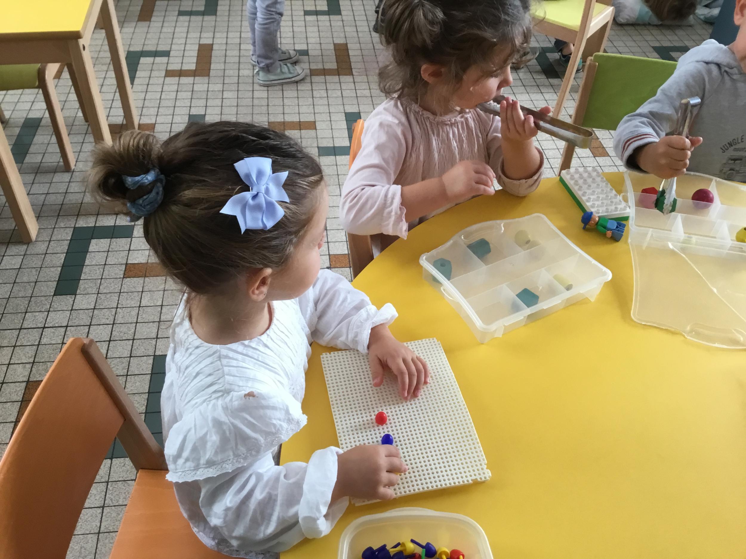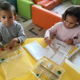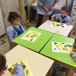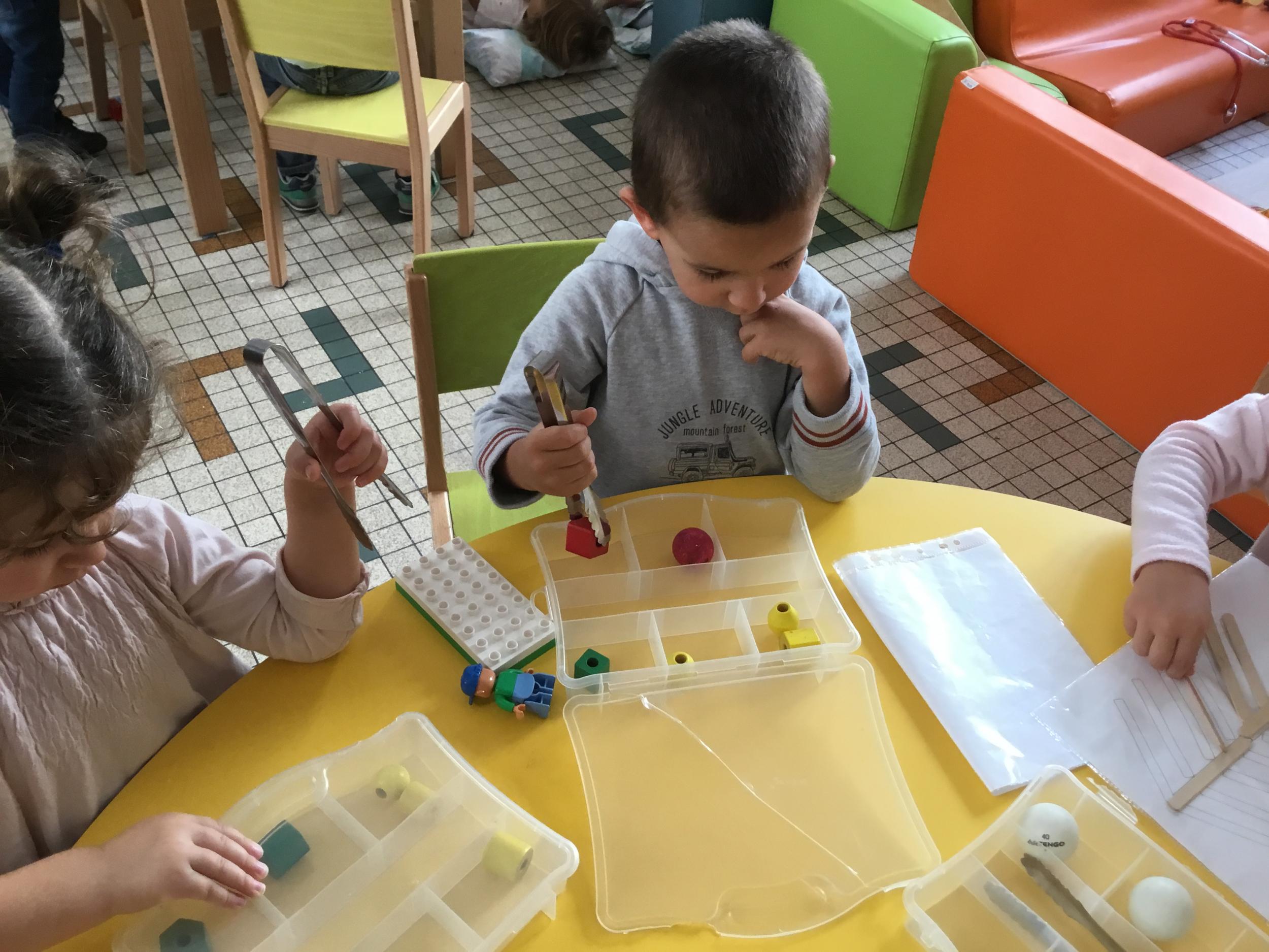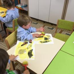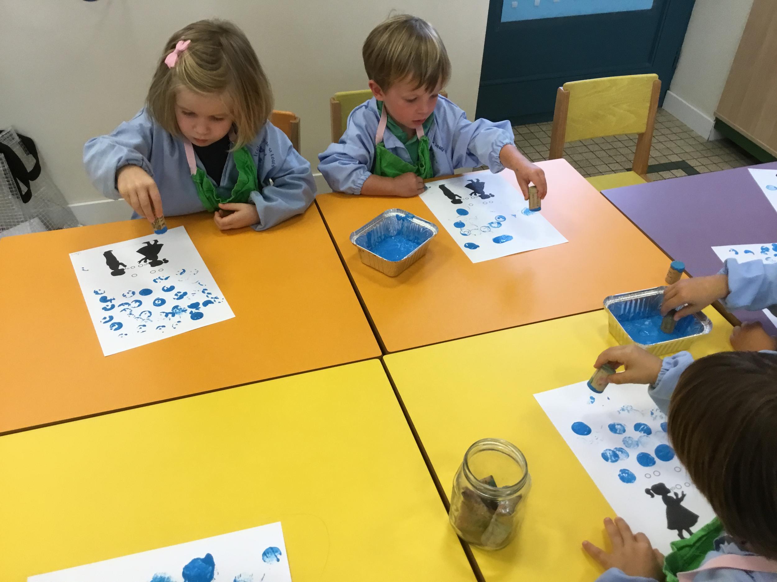 Lors des ateliers les élèves ont travaillé sur l’activité plastique « Laisser une trace ». Cette semaine ils ont travaillé avec la trace laissée par un bouchon et la couleur bleue.