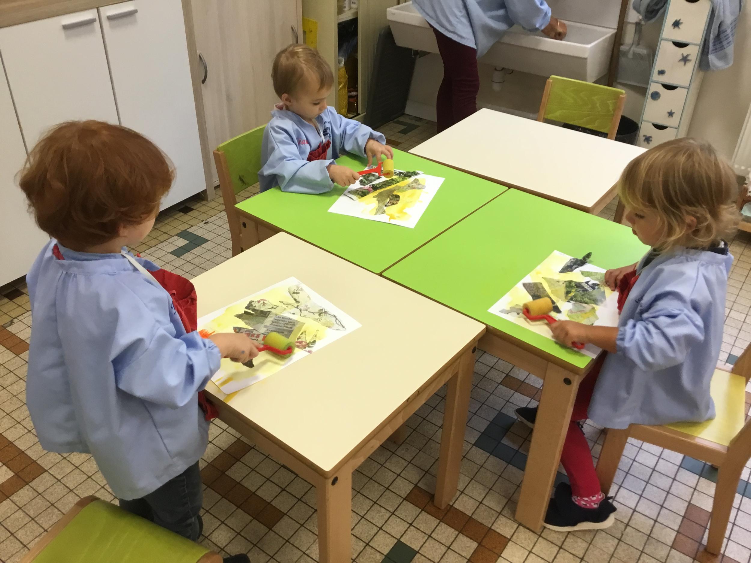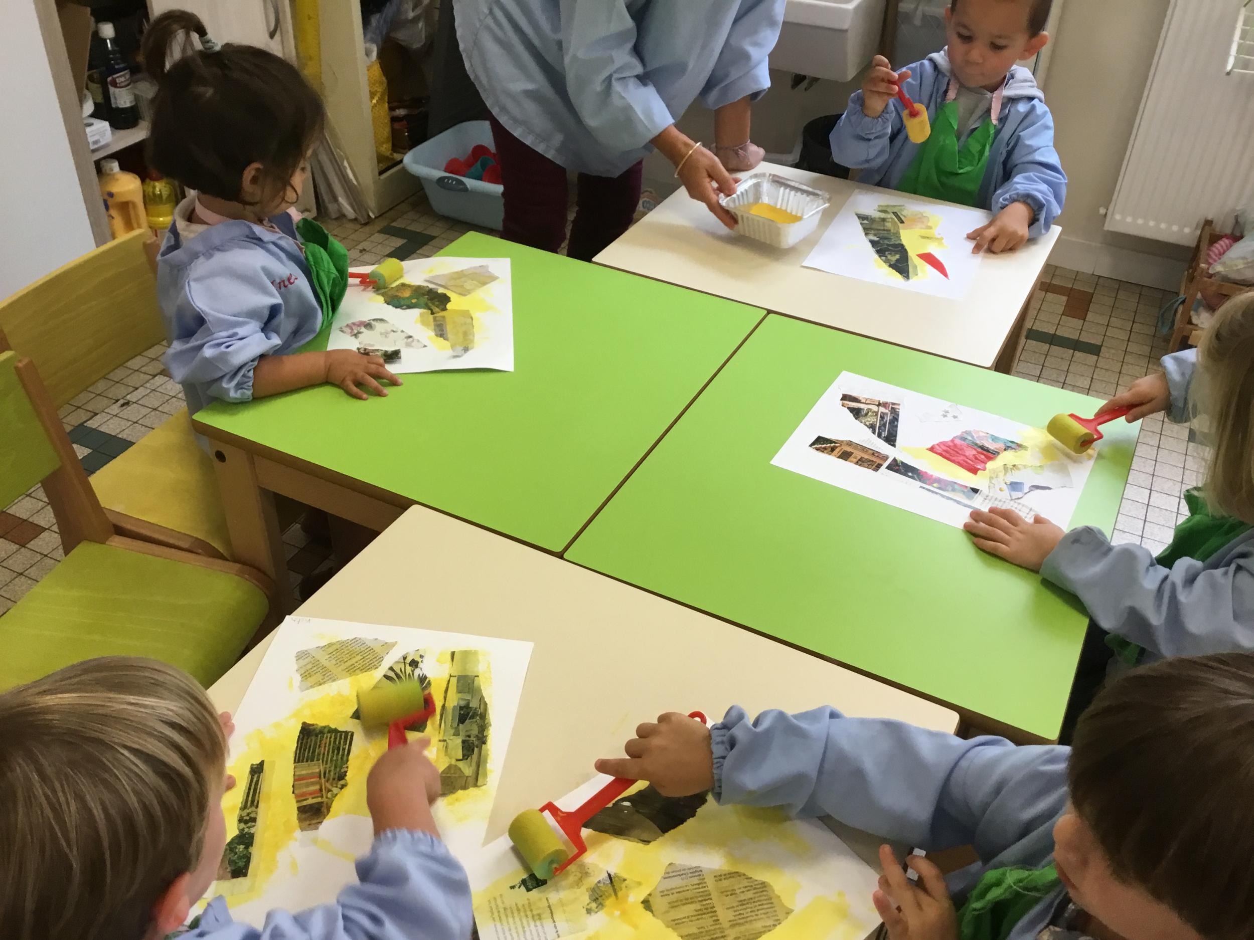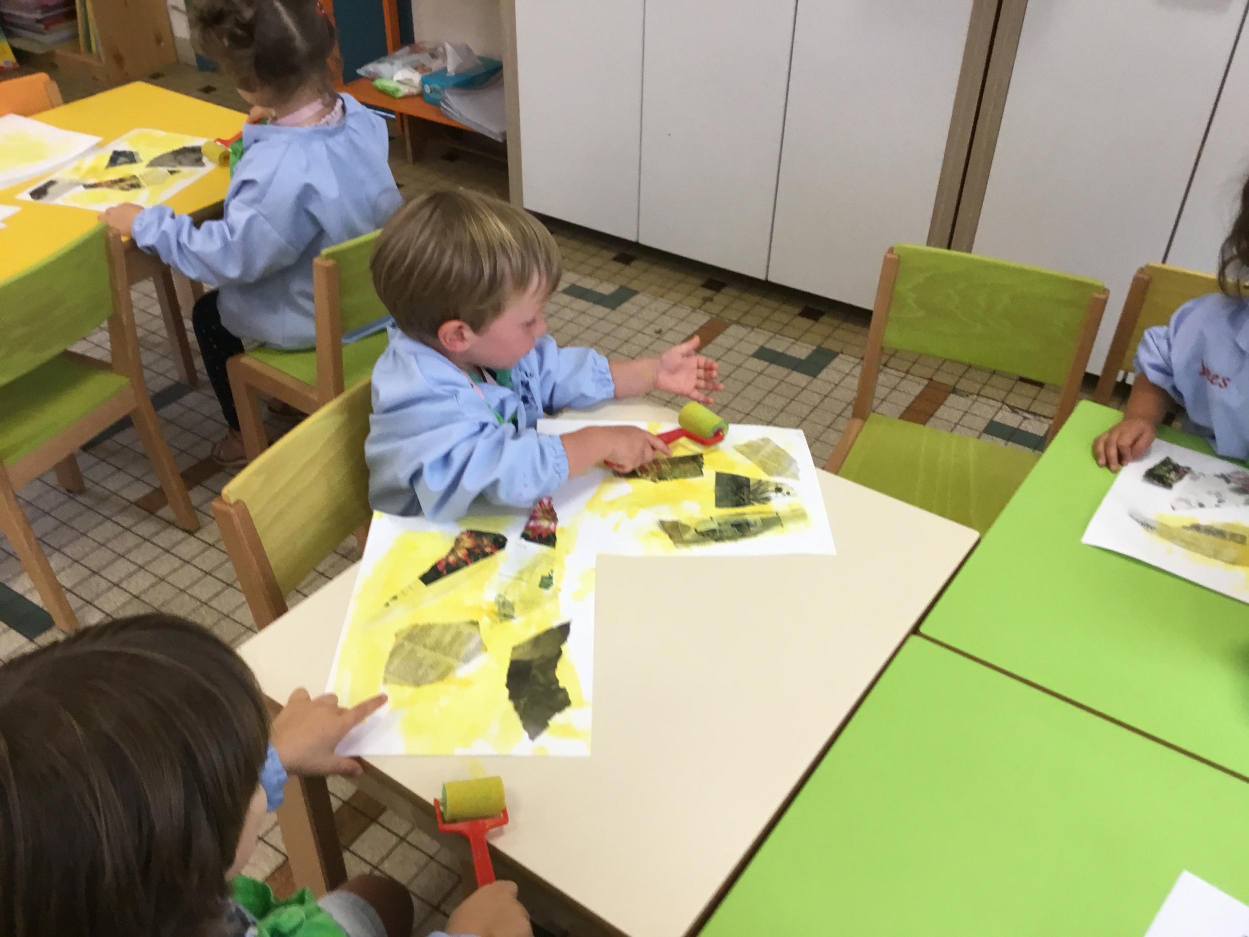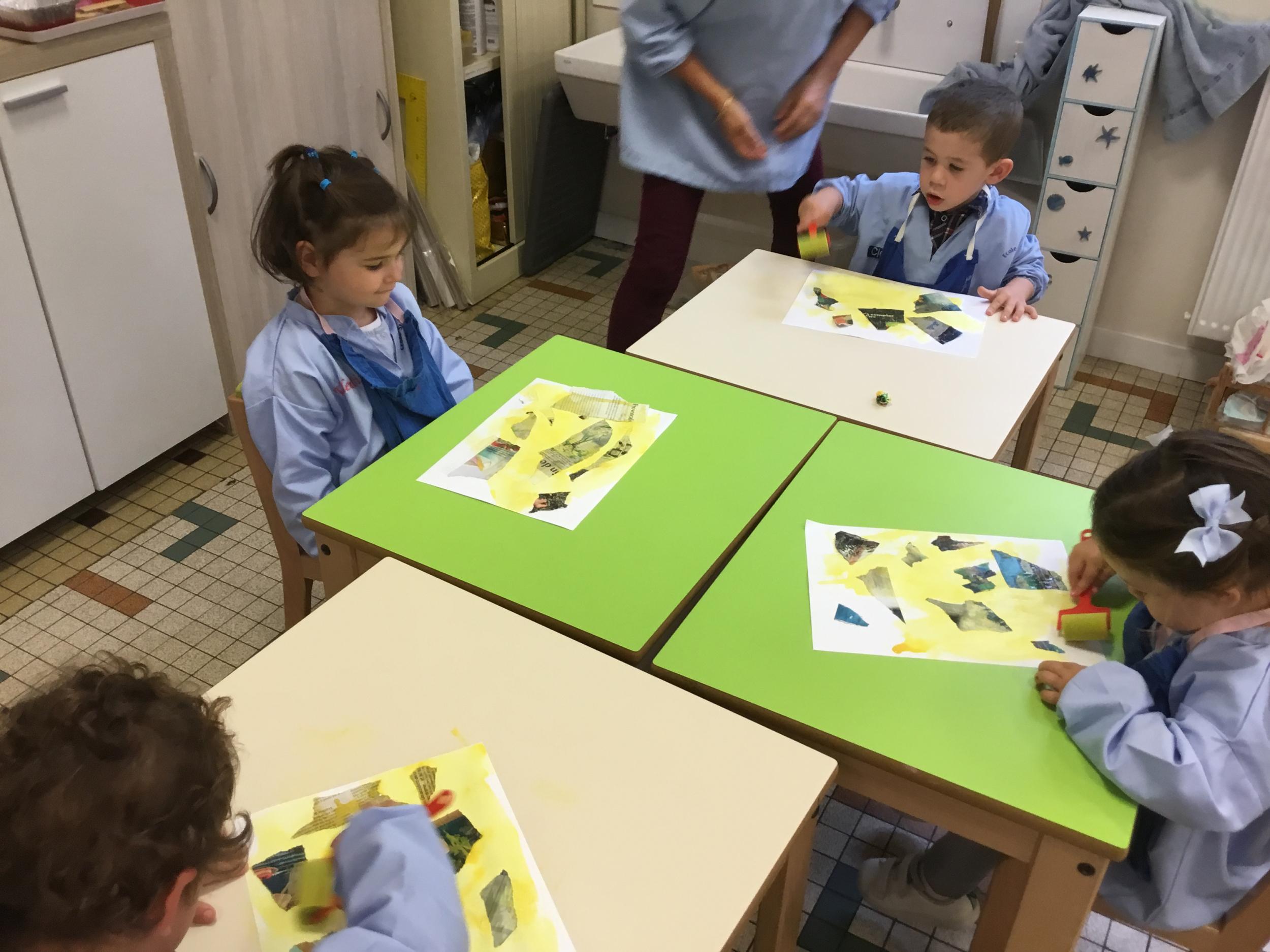 Ils ont également continué à travailler autour de l’oeuvre de Gaston Chaissac en réalisant un aplat de couleur à l’aide d’un rouleau.