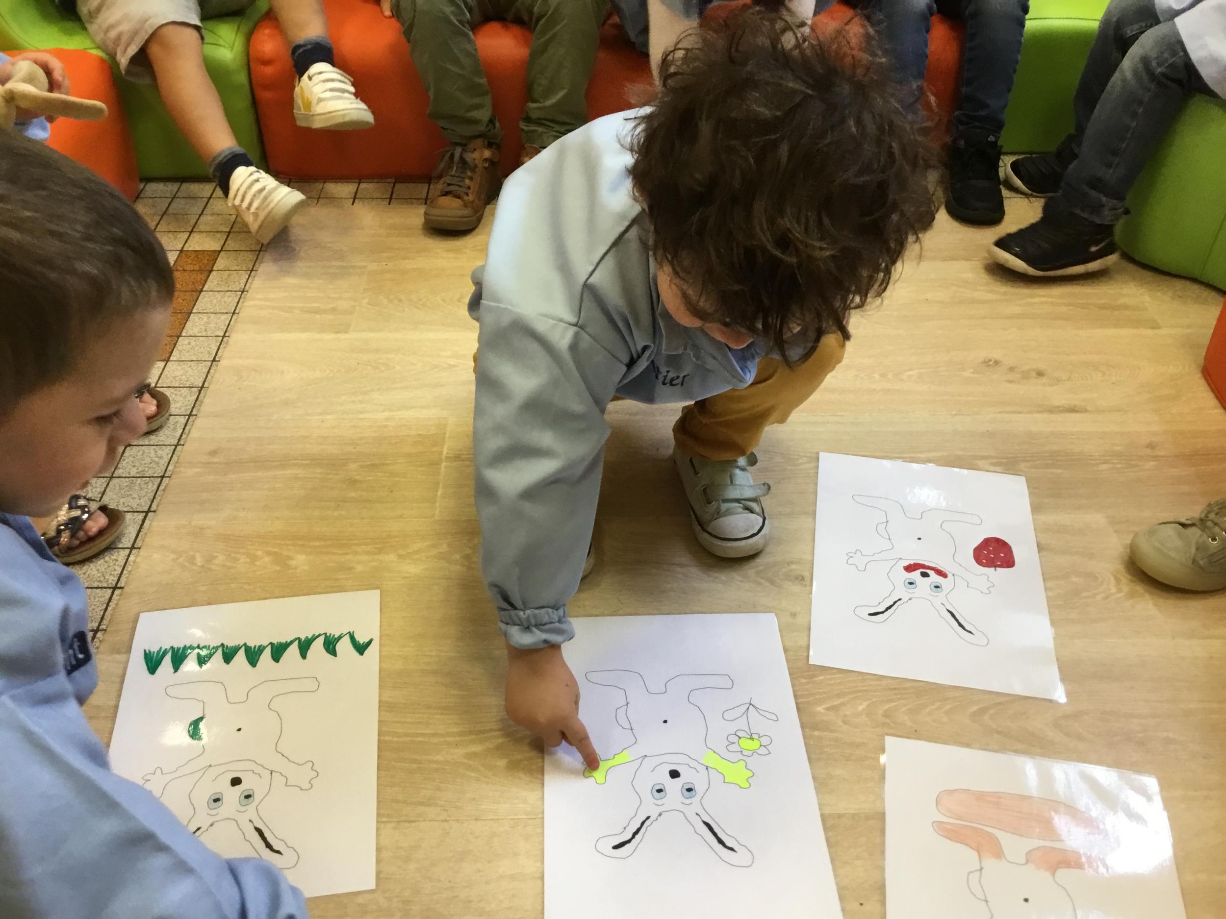 Les élèves ont découvert un nouveau personnage, Lulu le lapin de l’album « Toutes les couleurs ».