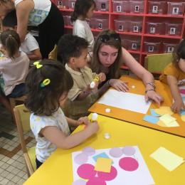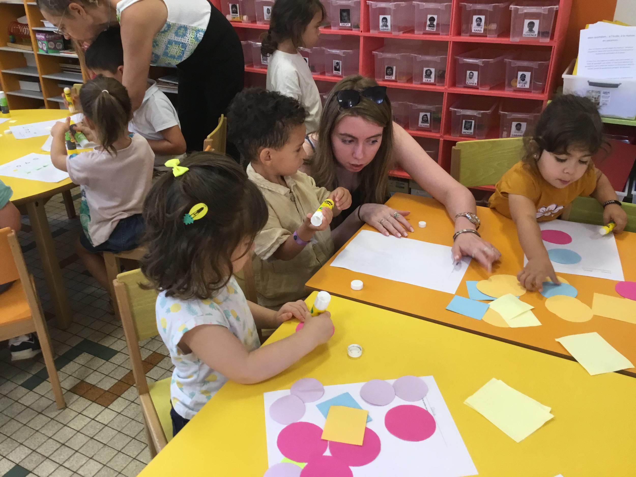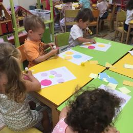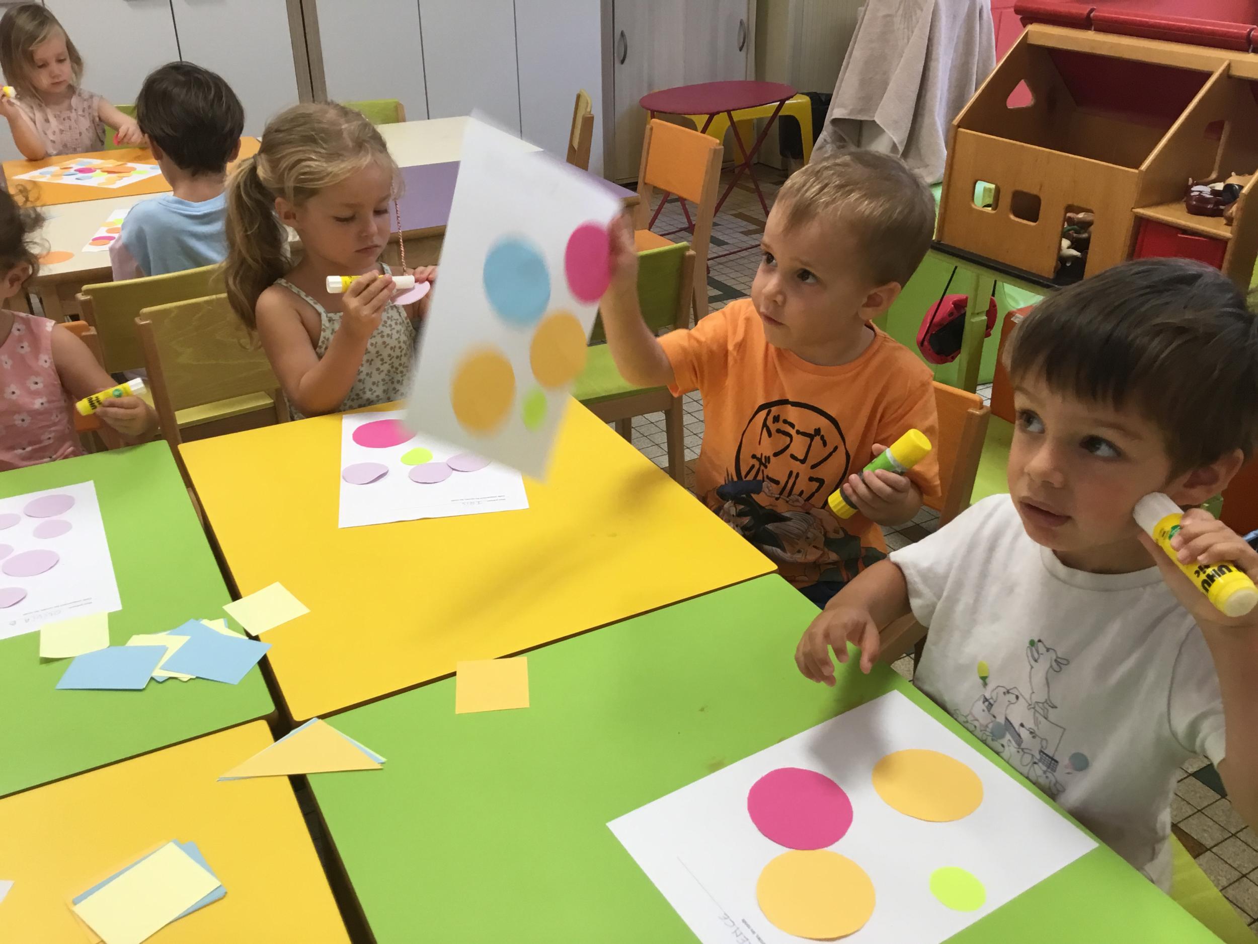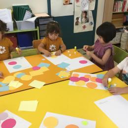 Aujourd’hui j’ai demandé aux élèves de décorer la feuille uniquement avec les cercles , que l’on appelle aussi des ronds.