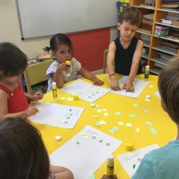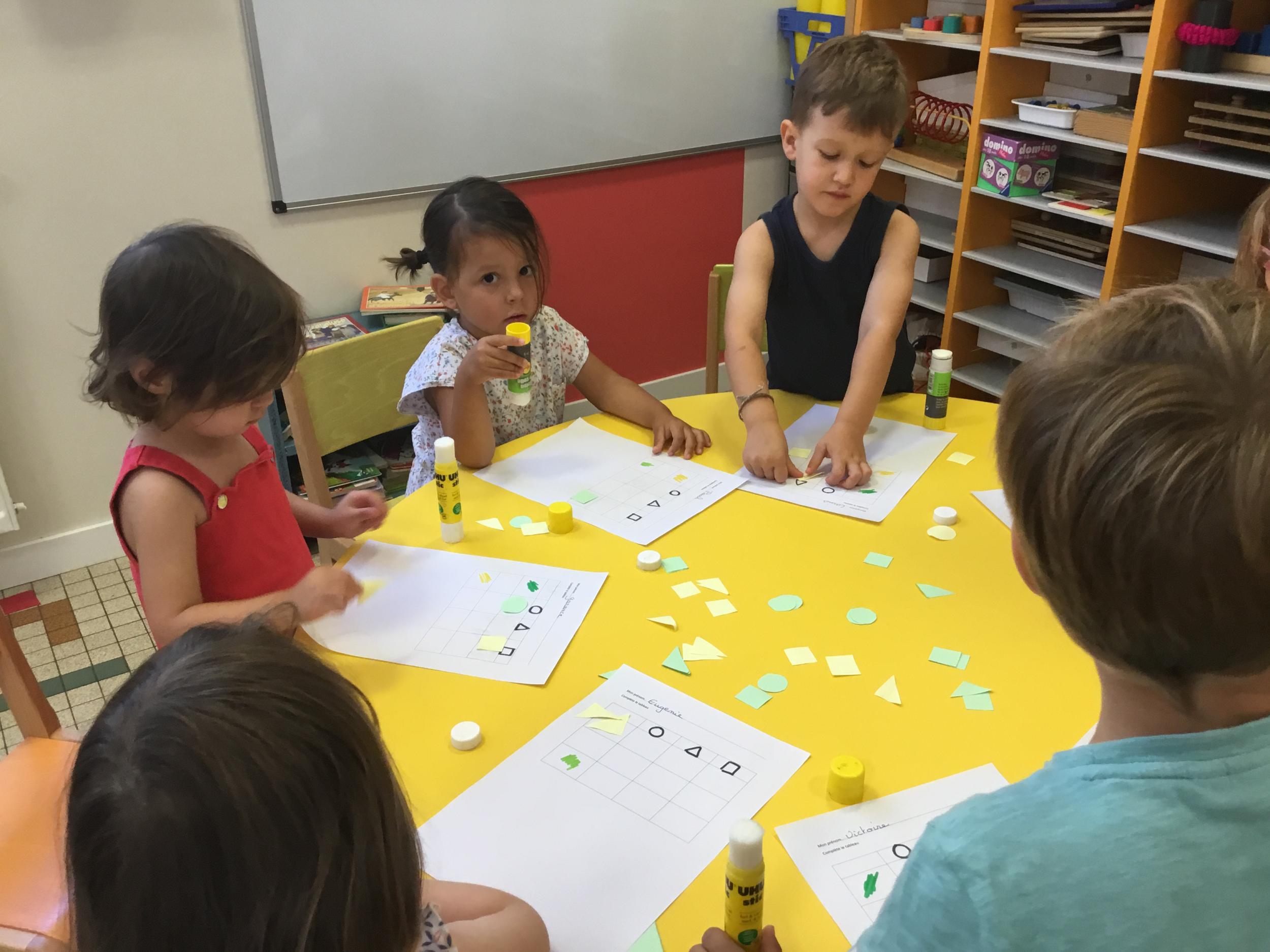 Puis pour ceux qui avaient nommé les différentes formes hier, j’ai proposé un exercice de logique … le tableau à double entrée. Tous n’ont pas réussi … mais il y avait de l’idée😃….Nous le travaillerons plusieurs fois dans l’année.