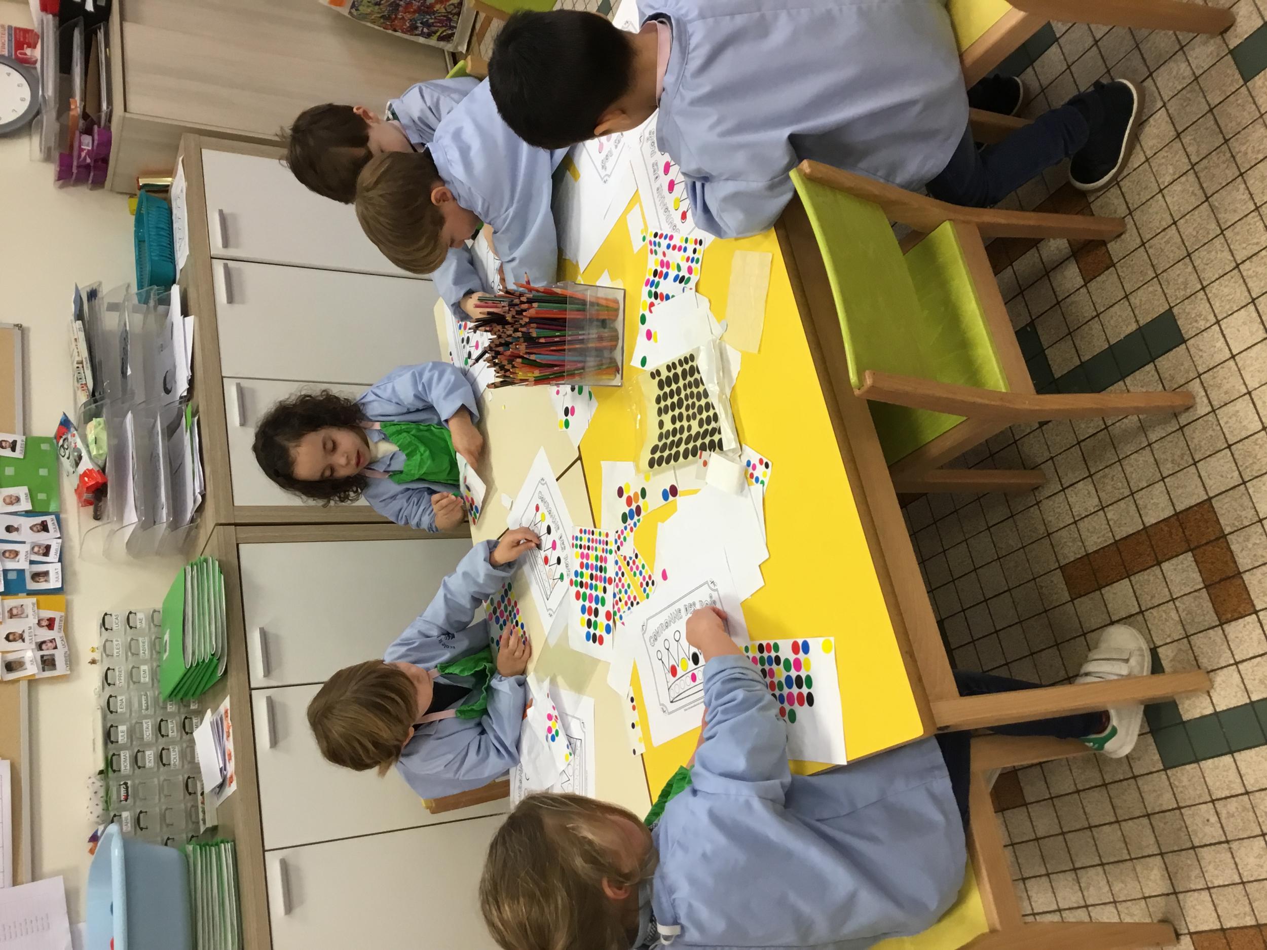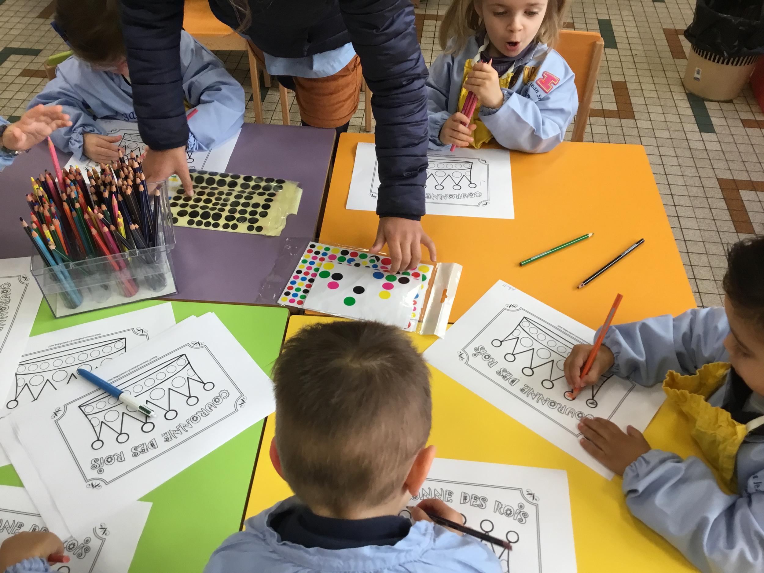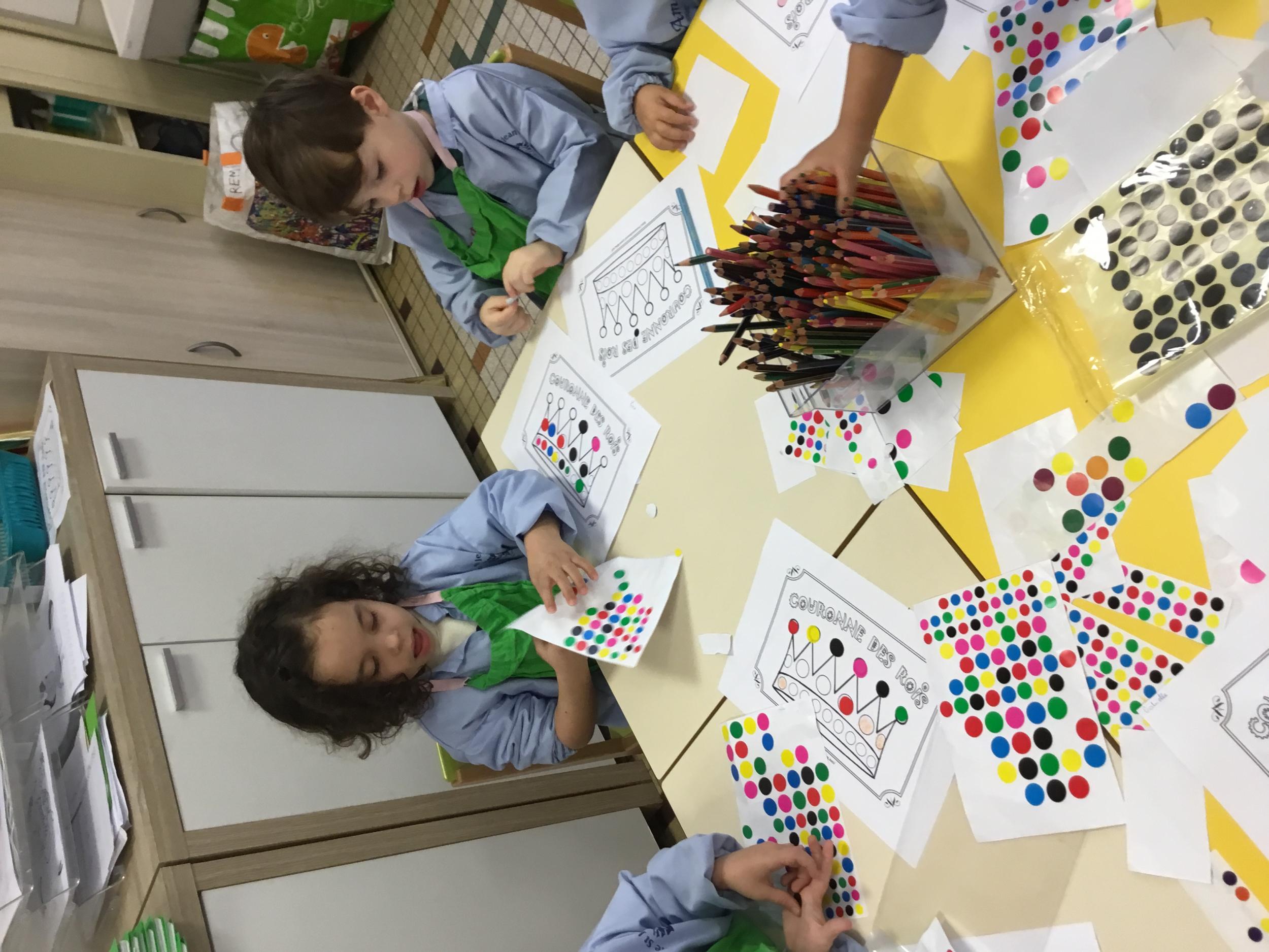 En autonomie, ils ont décoré à l’aide de gommettes et de crayons de couleur des couronnes.