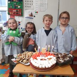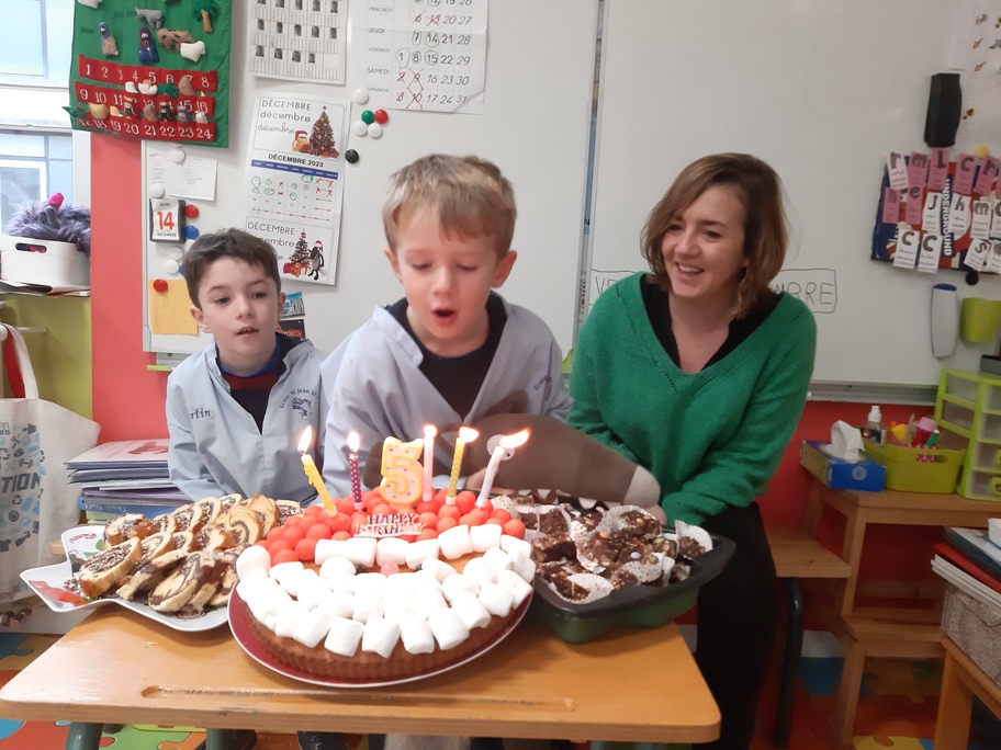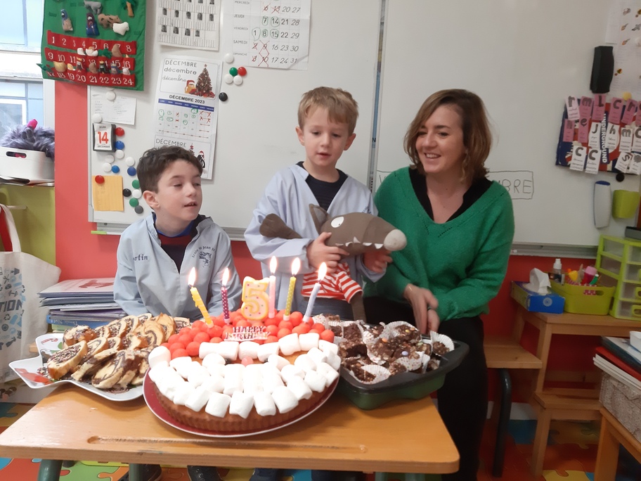 Nous avons fêté les anniversaires de novembre et décembre, les derniers 5 ans de la classe!